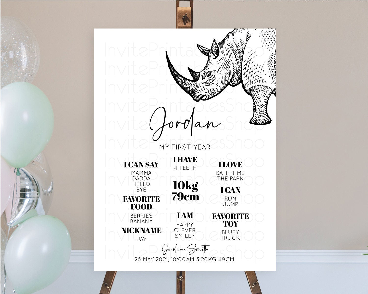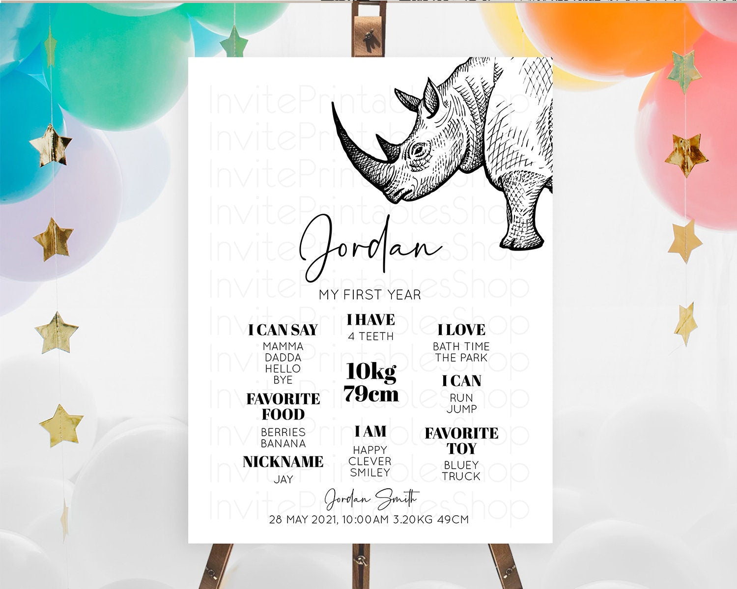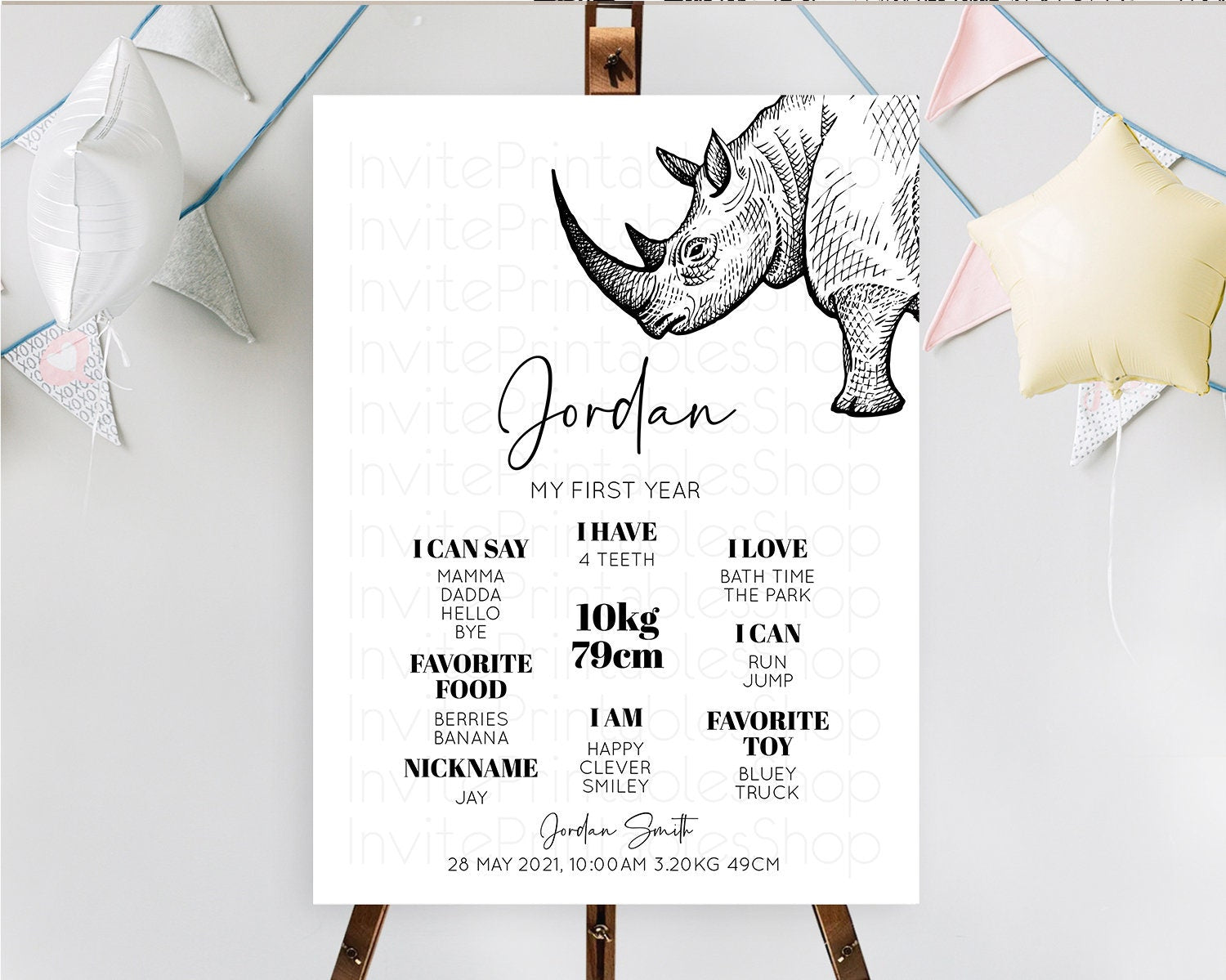 Rhino First Birthday Milestone Board Rhino Milestone Poster Rhino Decor Safari Adventure Rhino First Birthday Welcome Sign D10253
