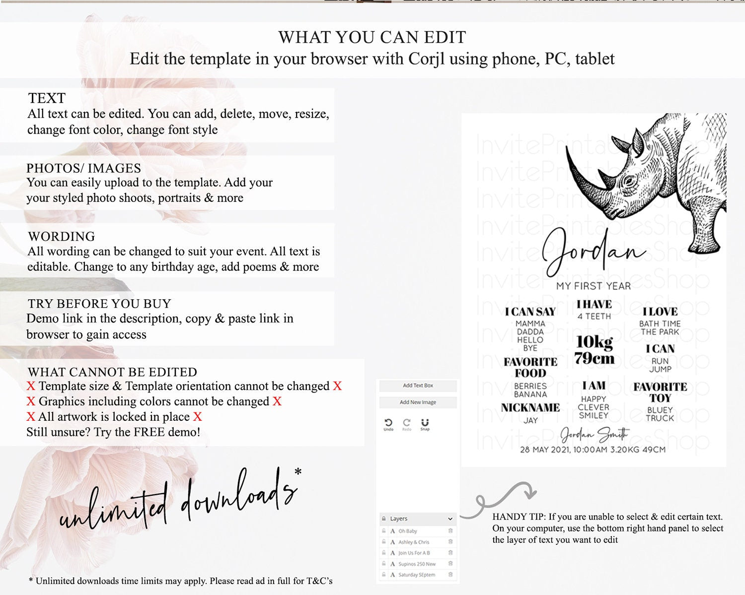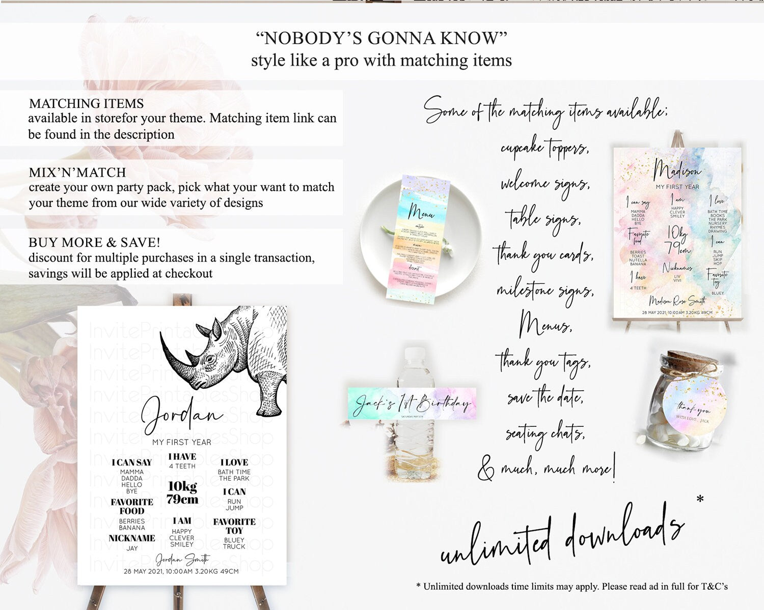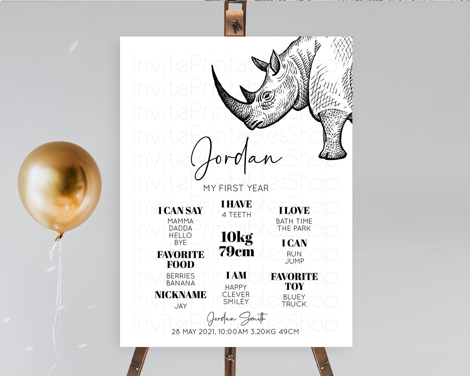 Rhino First Birthday Milestone Board Rhino Milestone Poster Rhino Decor Safari Adventure Rhino First Birthday Welcome Sign D10253