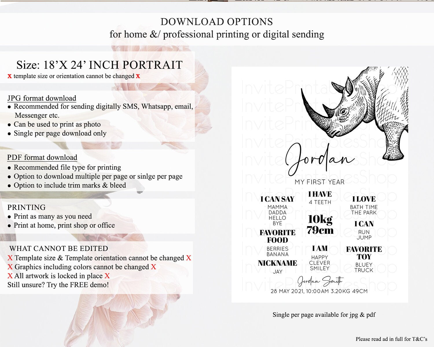 • Template size & orientation cannot be changed. Please use the demo link to confirm this product suits your needs.