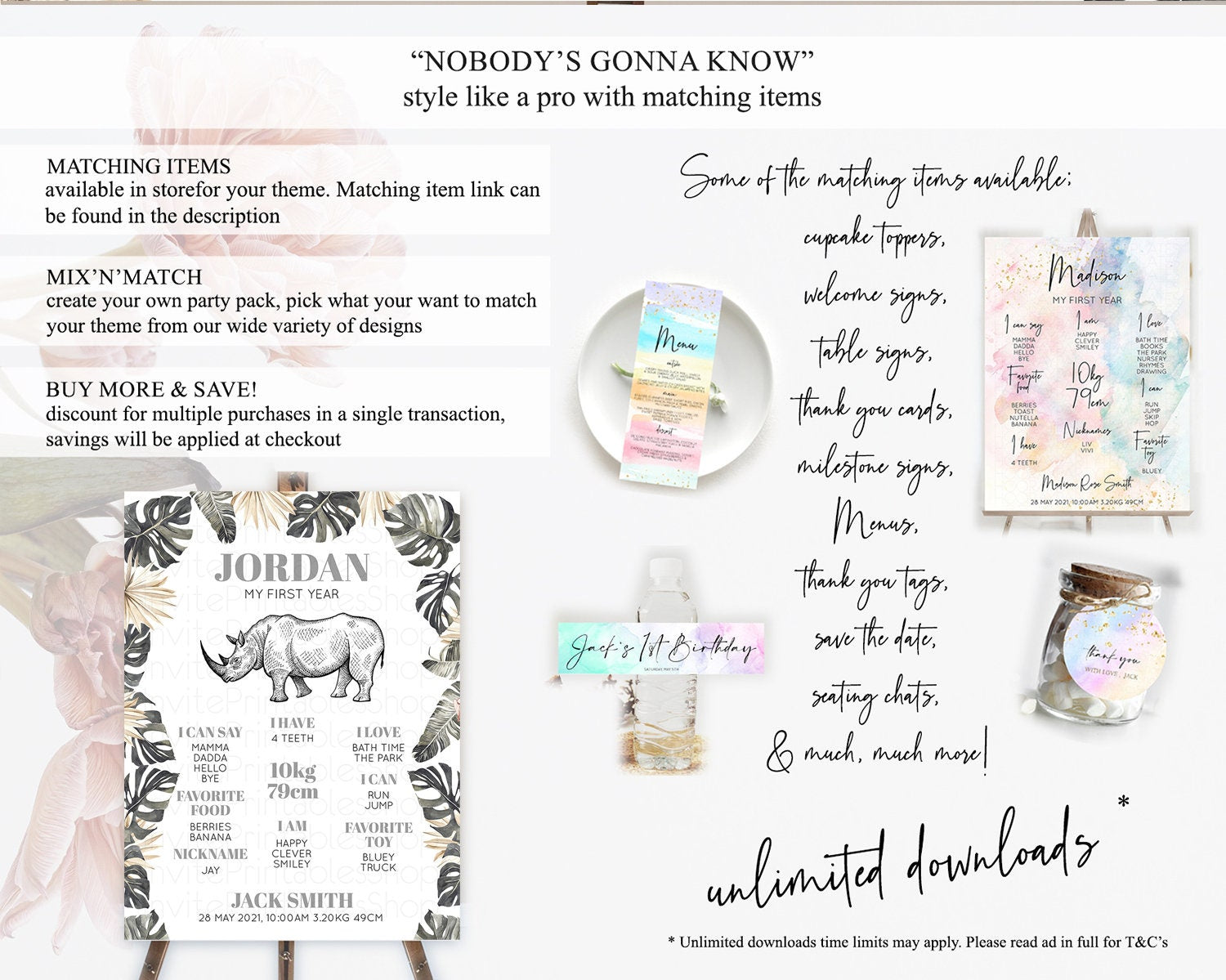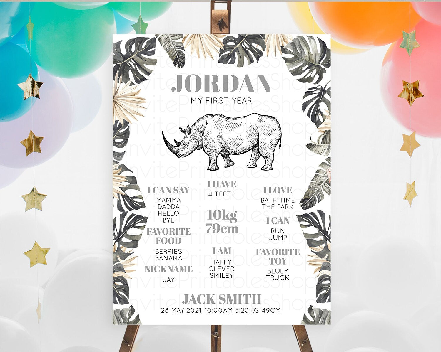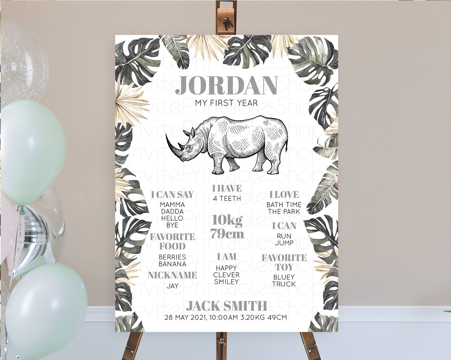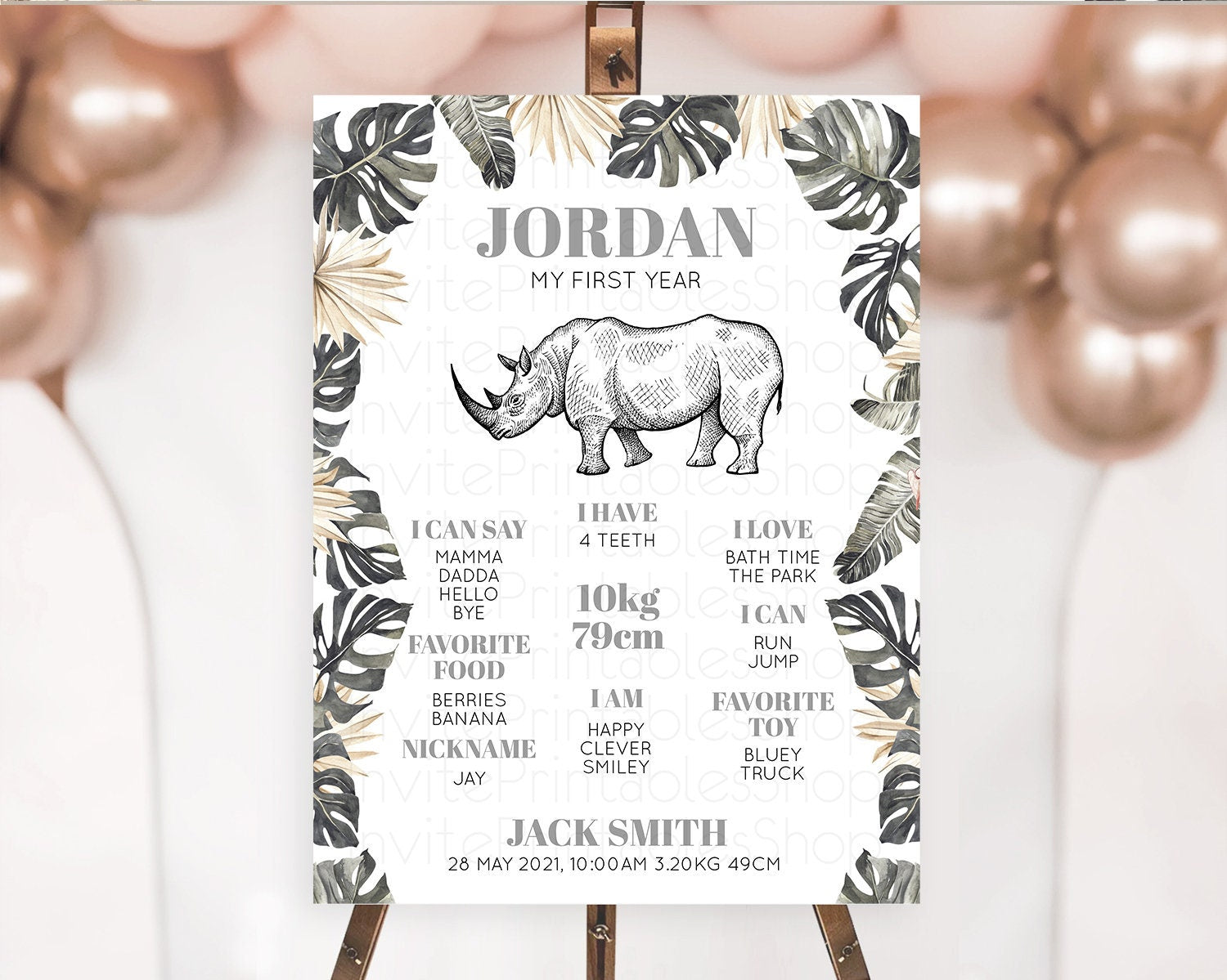 Rhino First Birthday Milestone Board Rhino Milestone Poster Rhino Decor Safari Adventure Rhino First Birthday Welcome Sign D10826