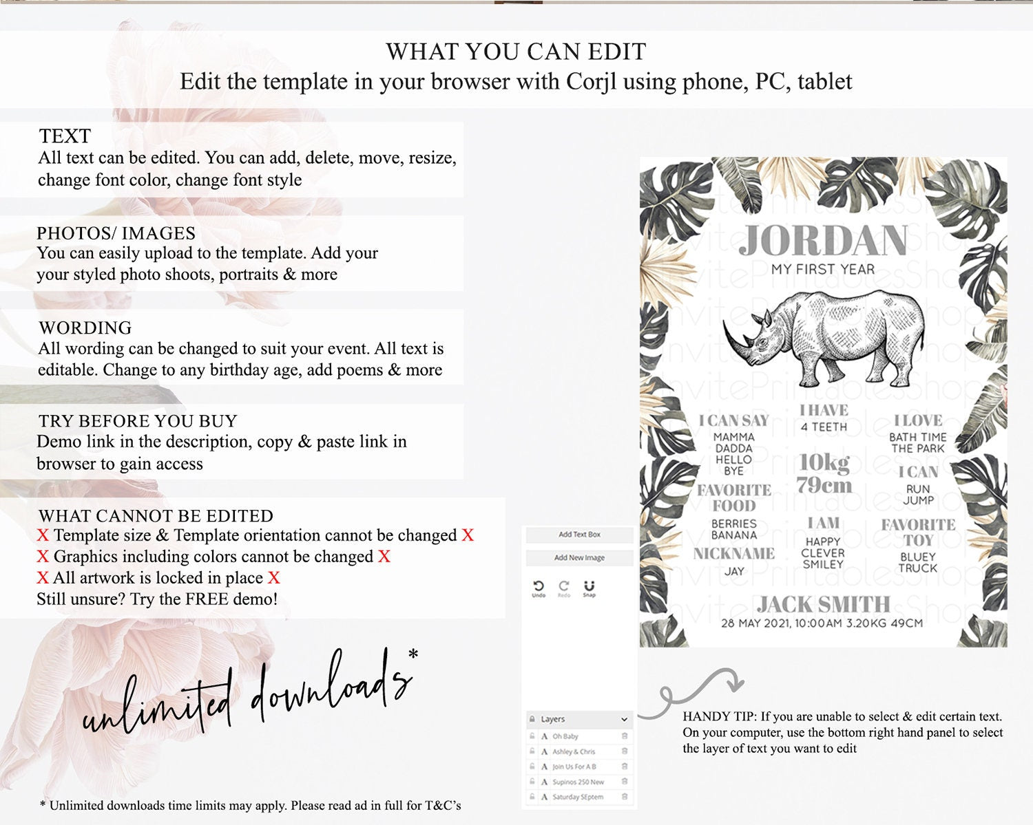 • After purchase, Corjl emails your editing link. Allow up to 15 minutes for delivery.