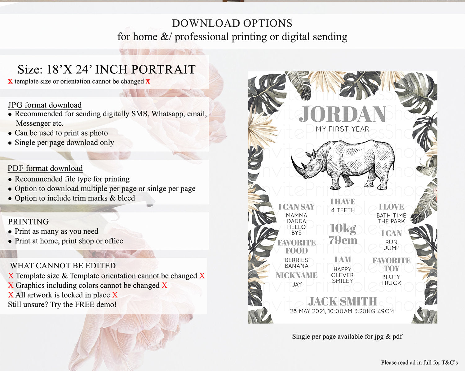 • Template size & orientation cannot be changed. Please use the demo link to confirm this product suits your needs.