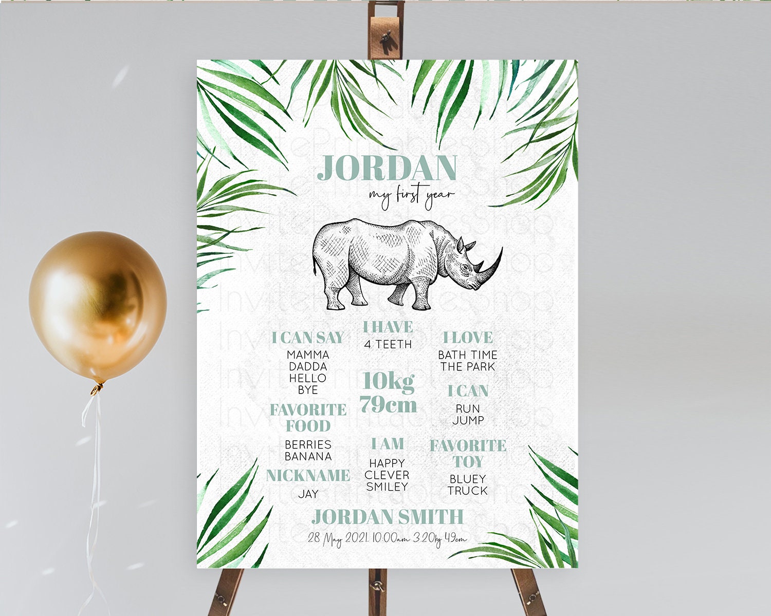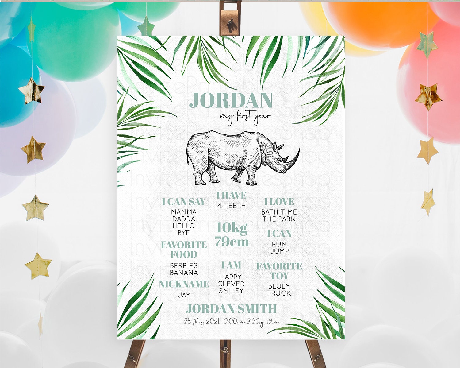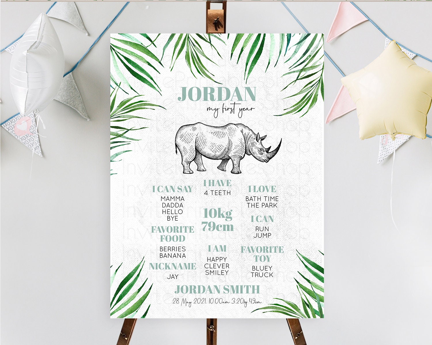 Rhino First Birthday Milestone Board Rhino Milestone Poster Rhino Decor Safari Adventure Rhino First Birthday Welcome Sign D10848