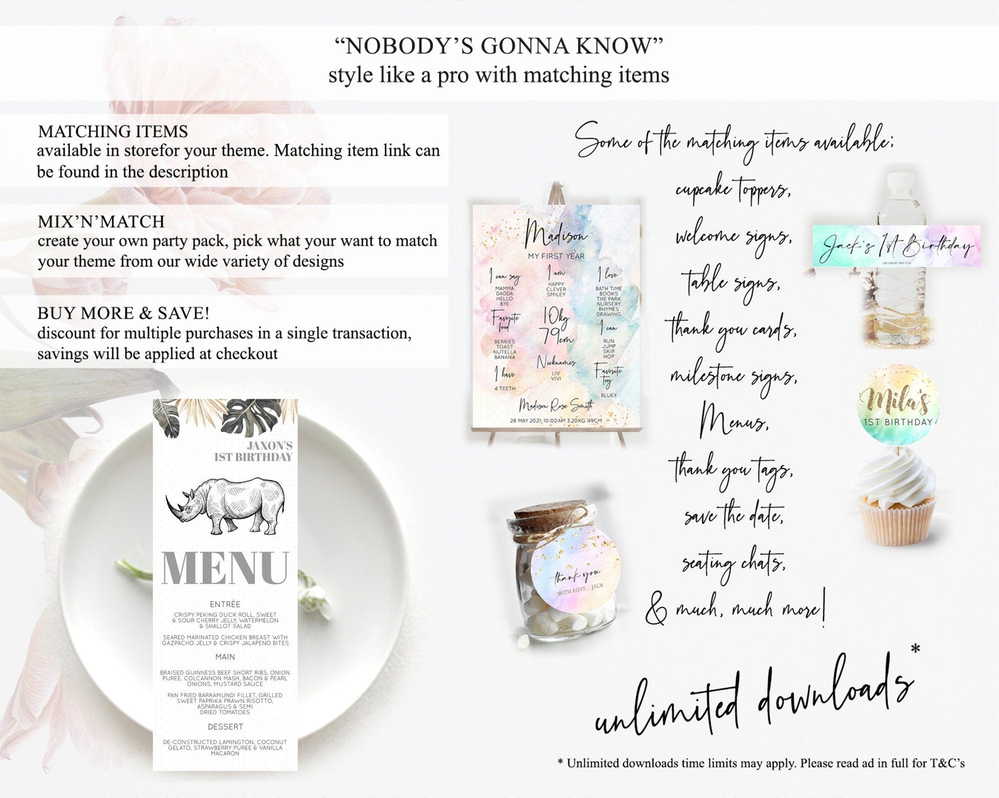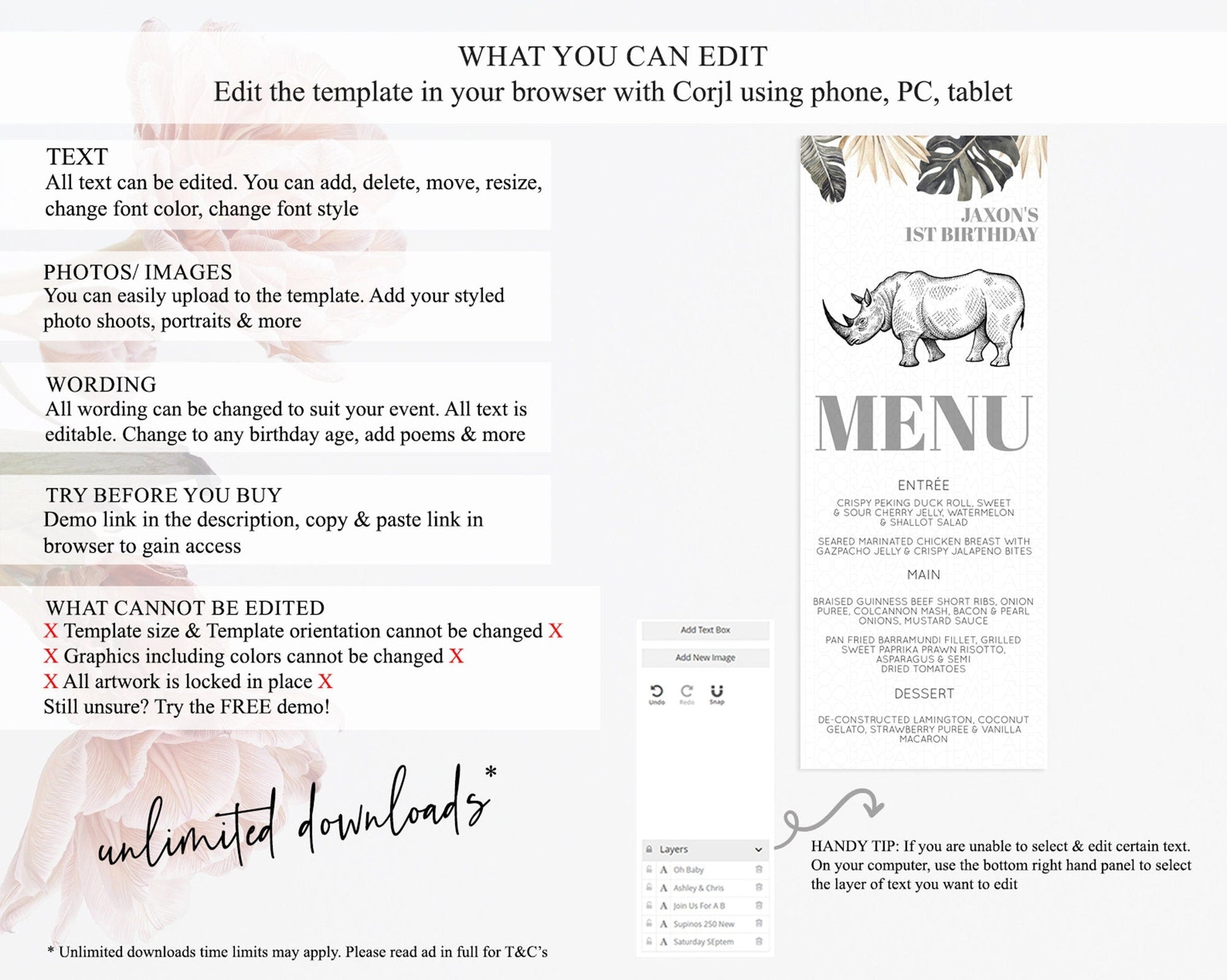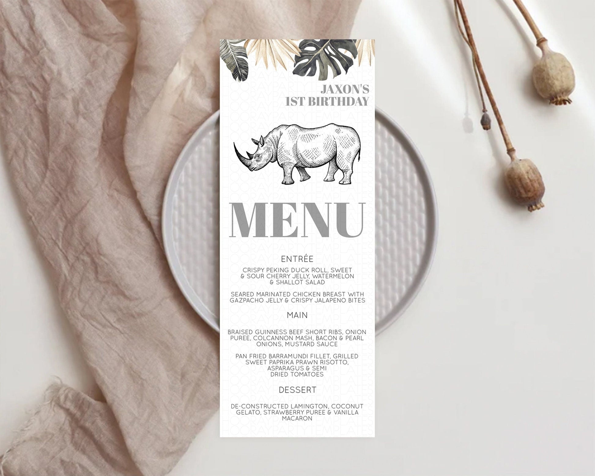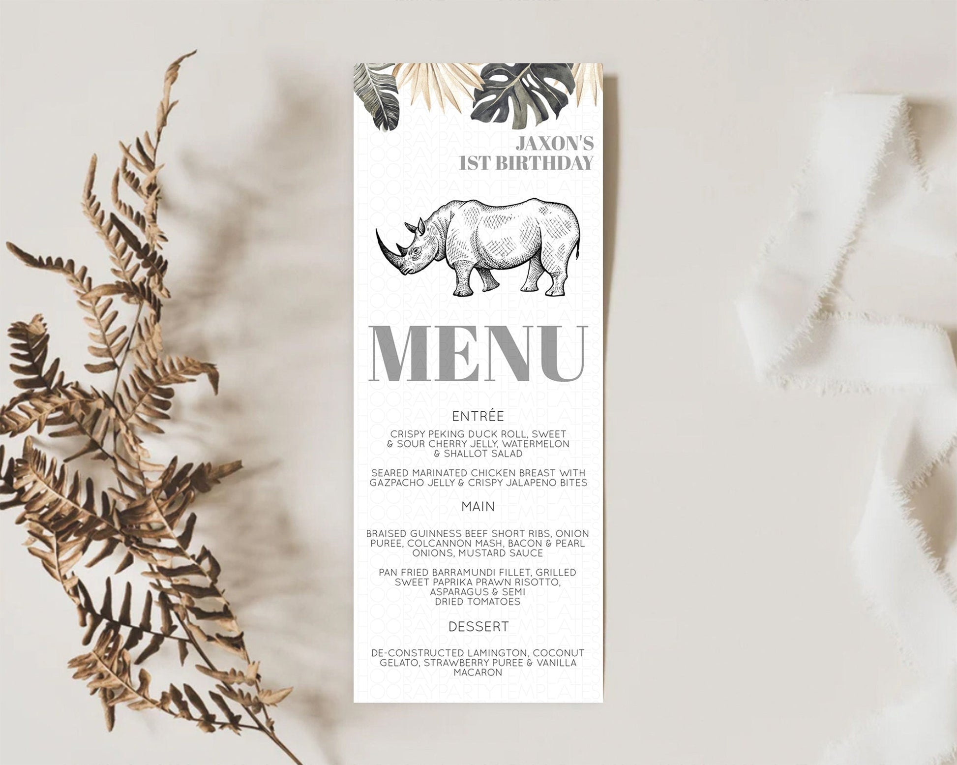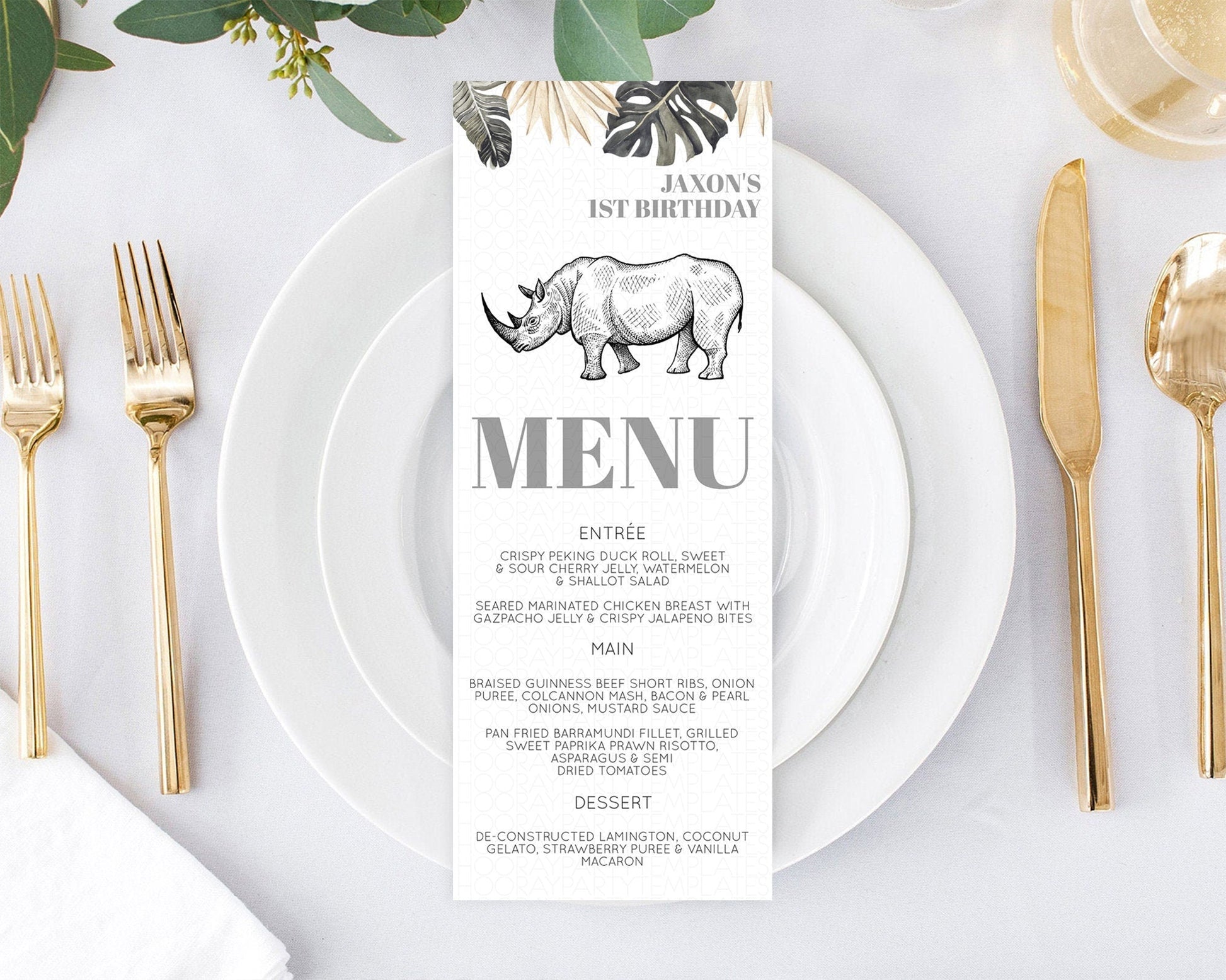 Rhino Menu Rhino Menu Template Rhino Party Table Decor Safari Adventure Decor Rhino Dinner Dessert Menu Rhino Party Food Menu D10826
