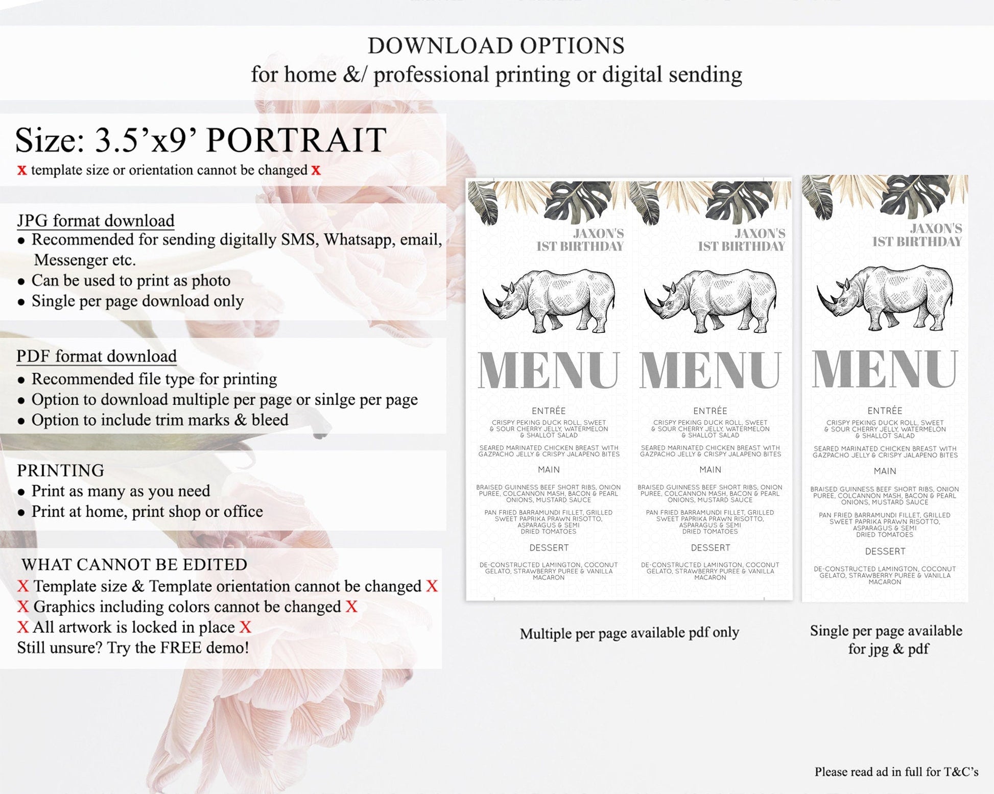 • Template size & orientation cannot be changed. Please use the demo link to confirm this product suits your needs.