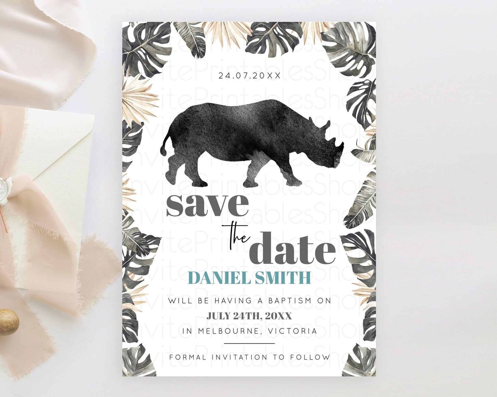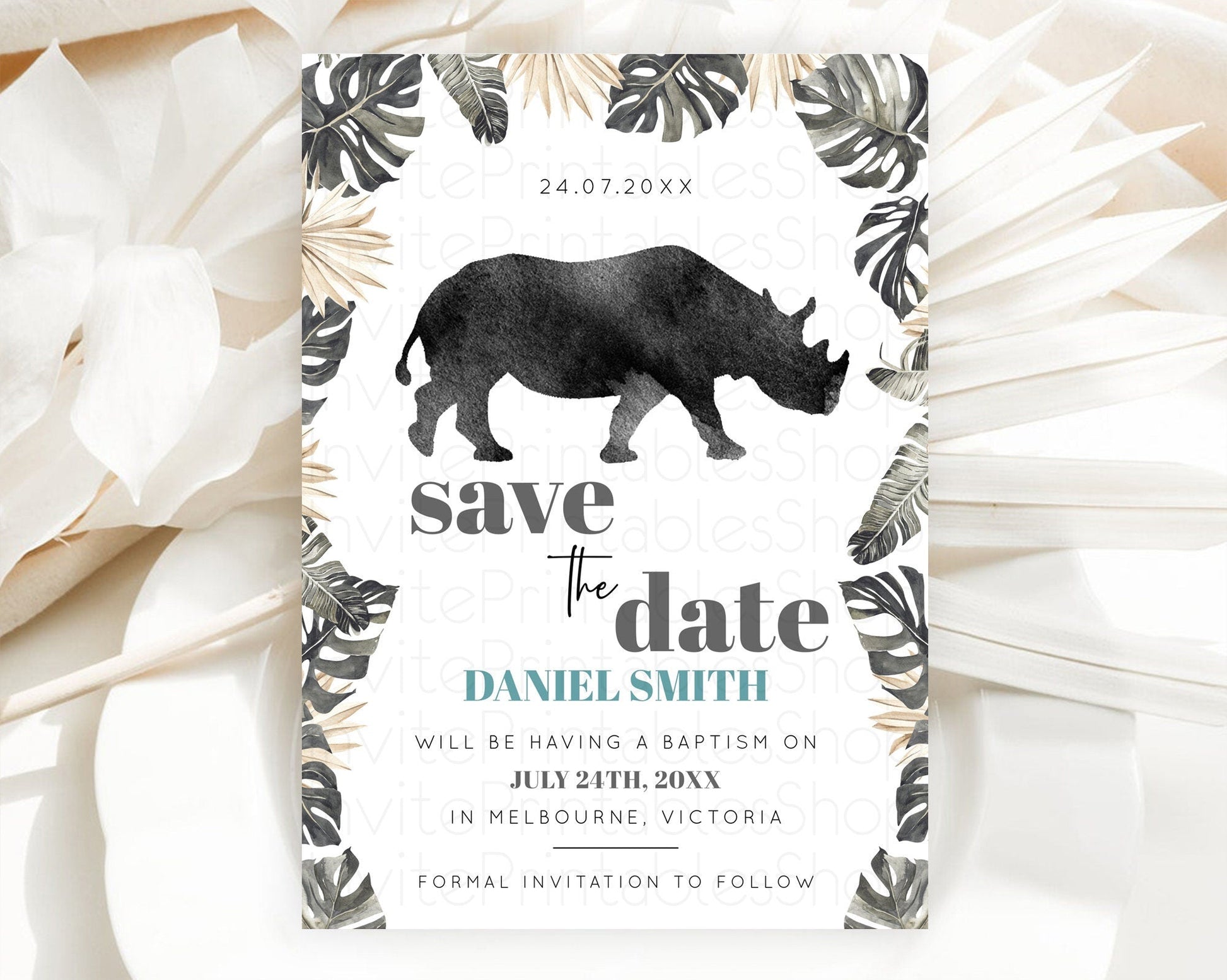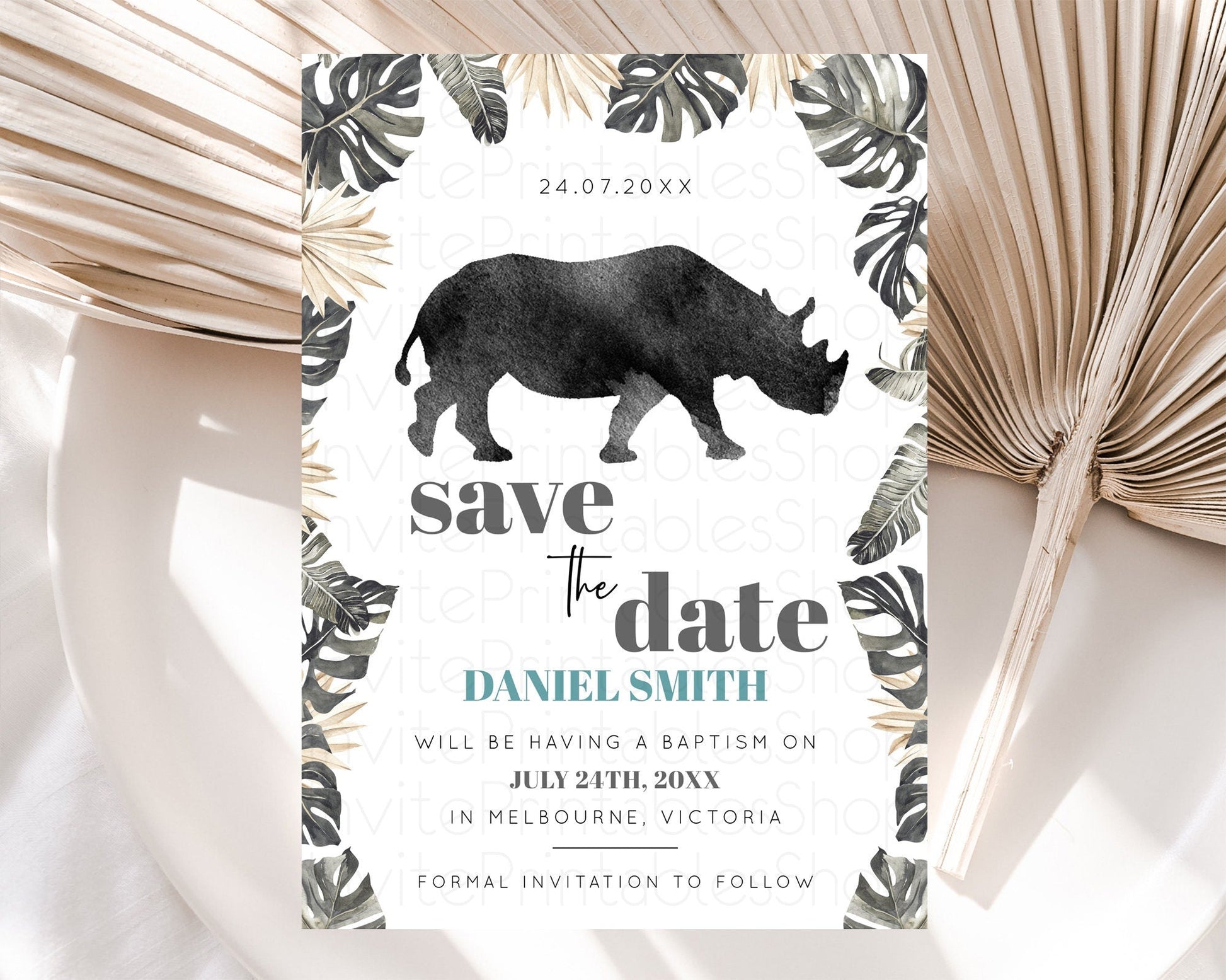 Rhino Save The Date Template Rhino Party Save The Date Safari Adventure Rhino Minimal Theme For 1st Birthday Baptism Baby Shower D10805