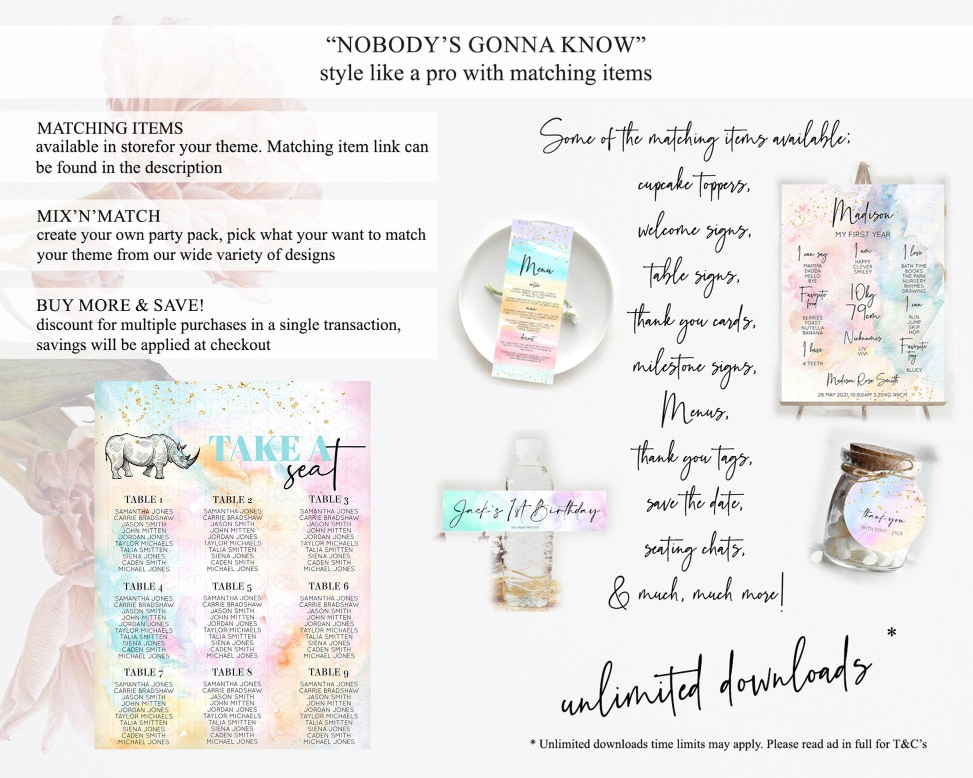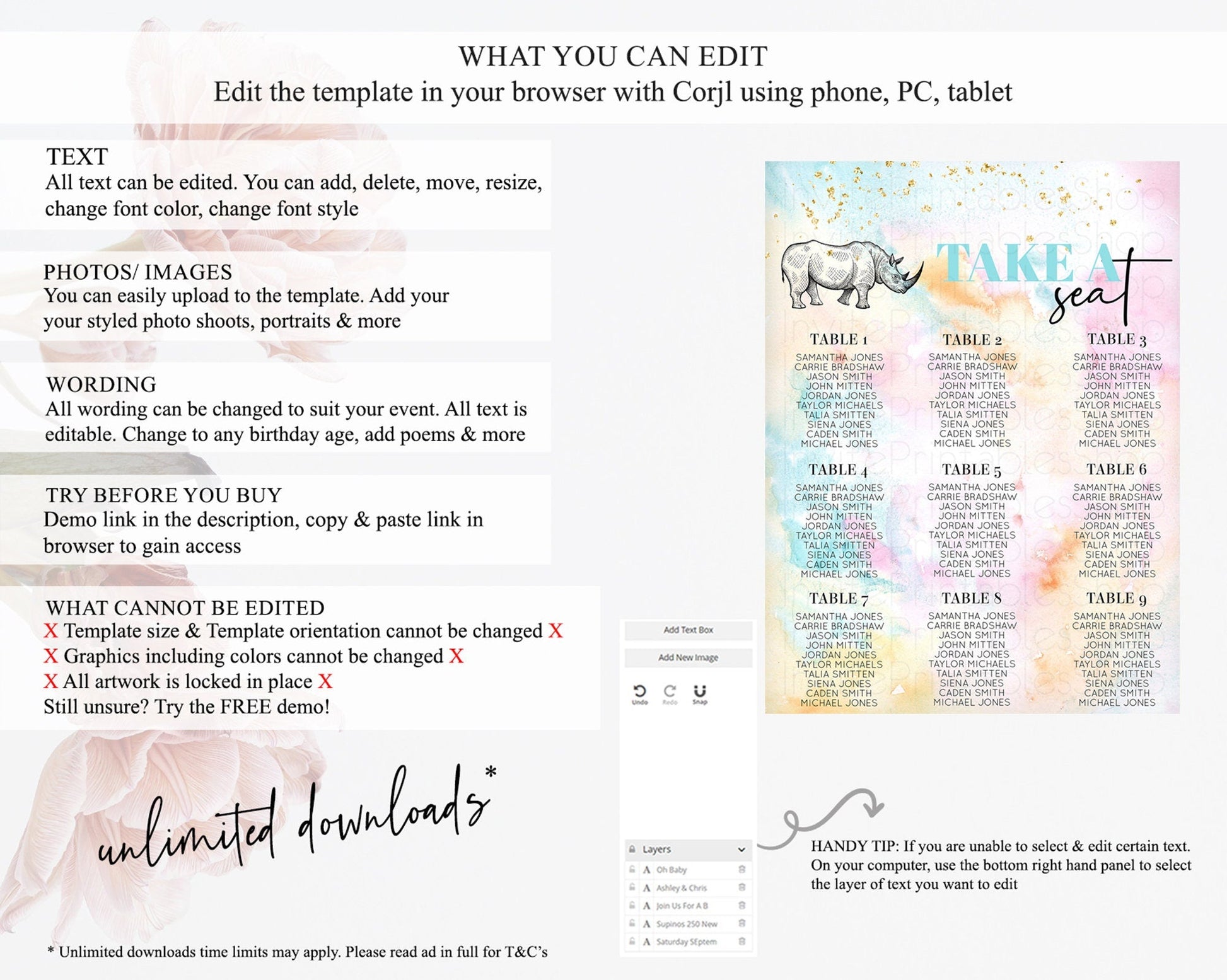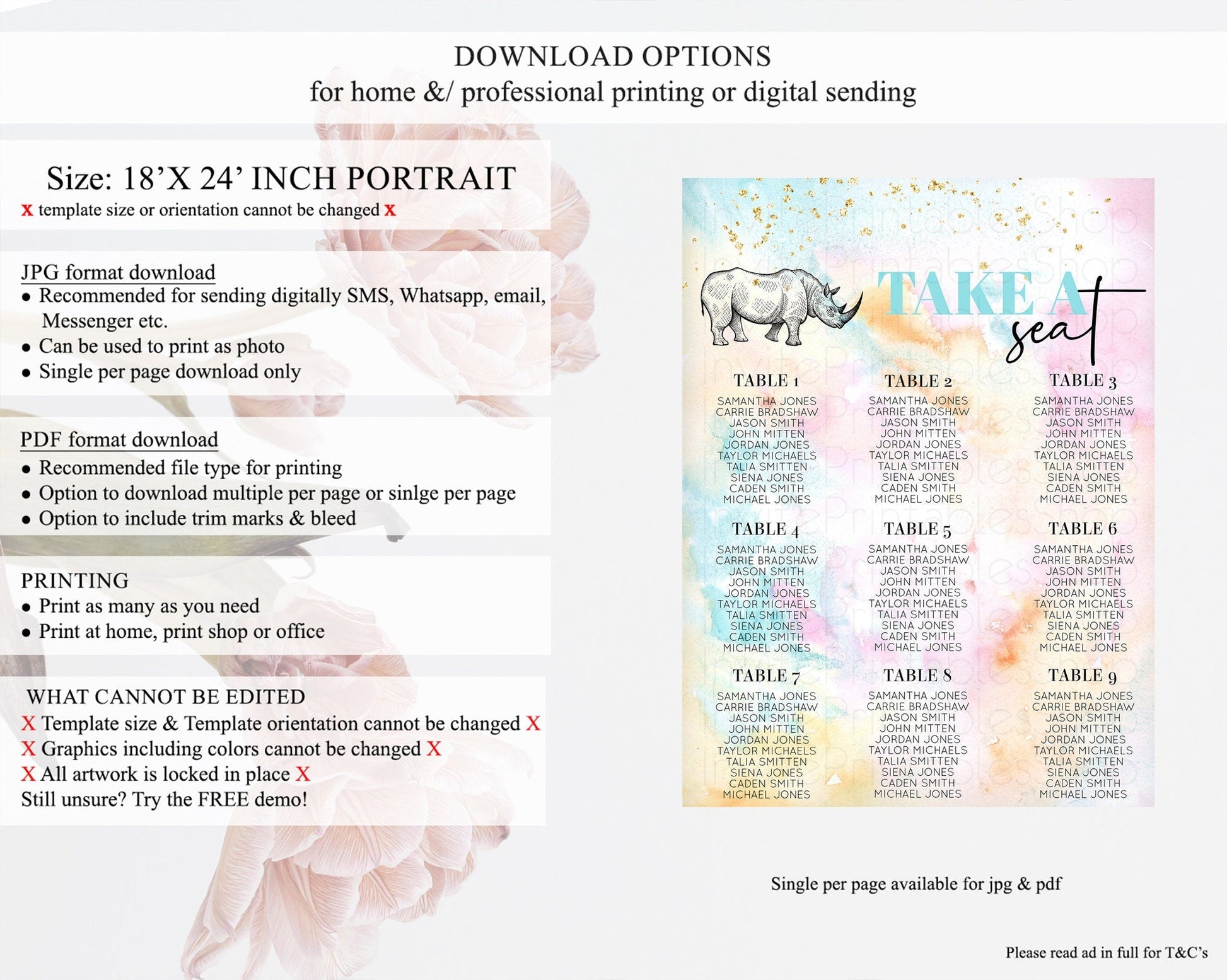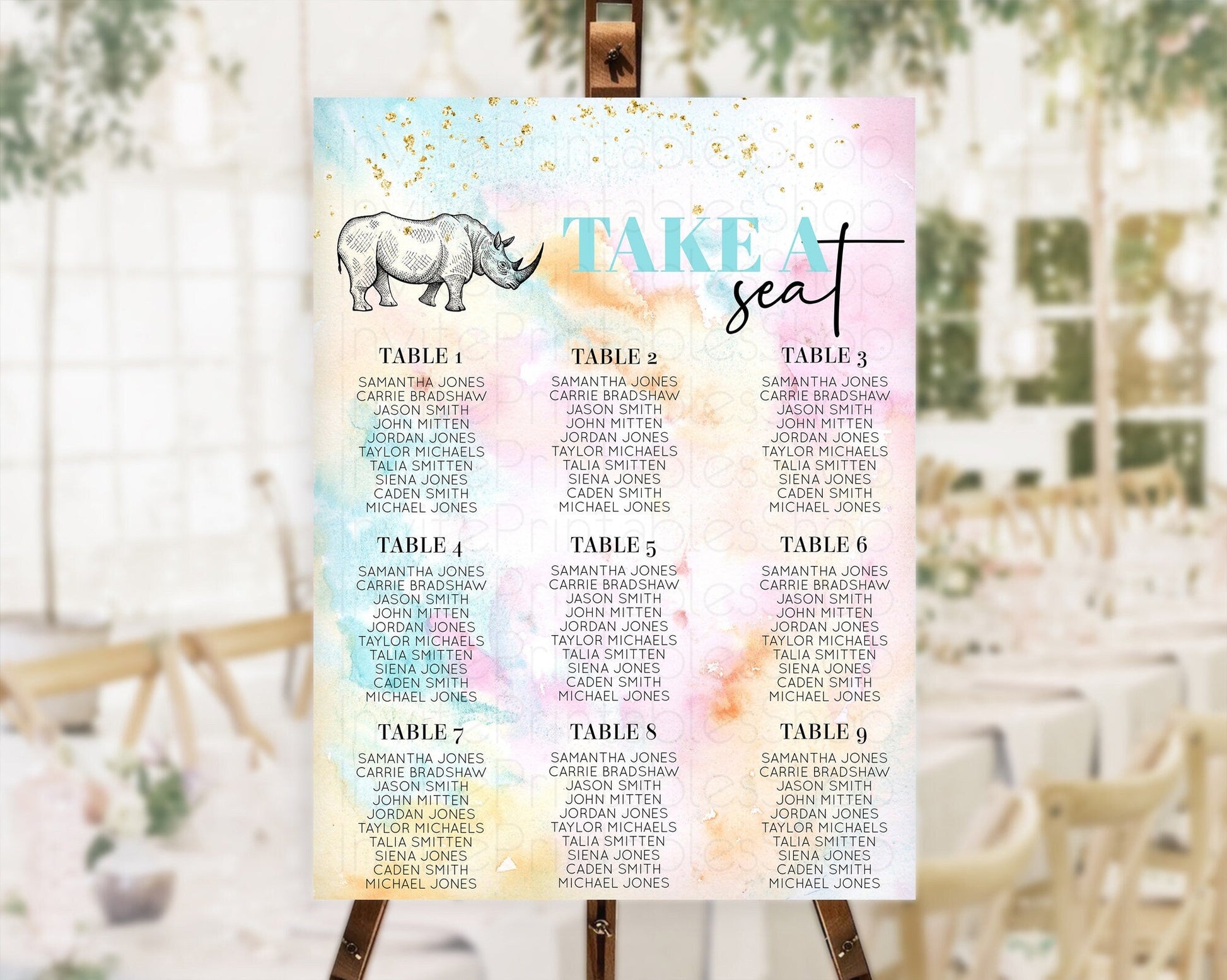 Rhino Seating Chart Rhino Seating Sign Rhino Take A Seating Chart Rhino Safari Adventure Decor Zoo Party Rhino Palm Leaf Decor D10287
