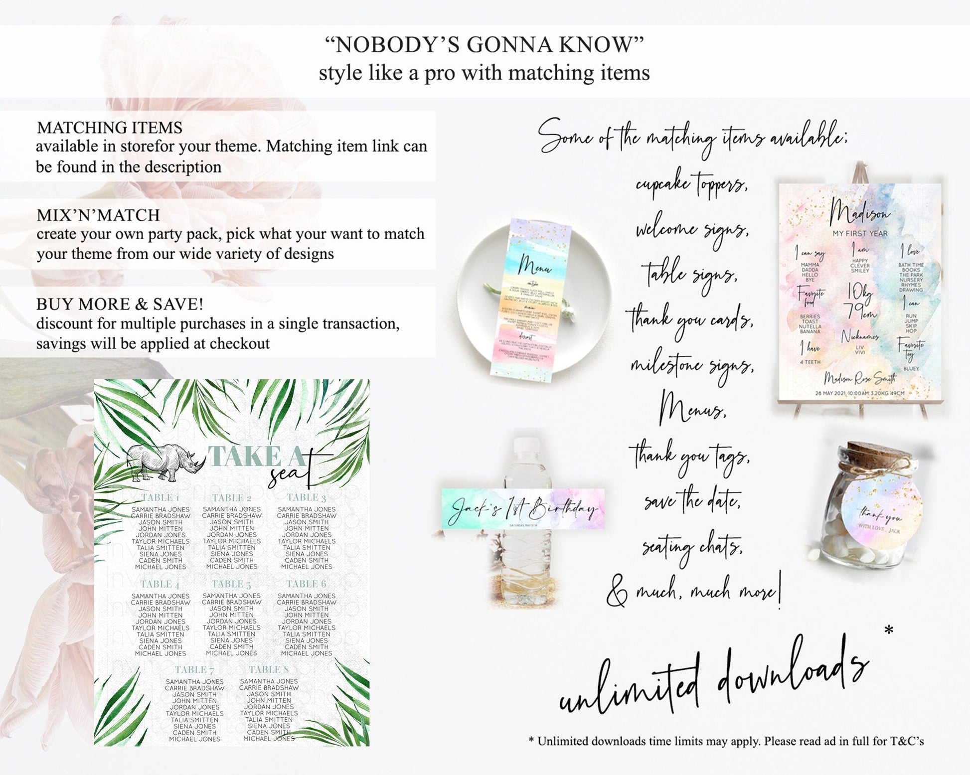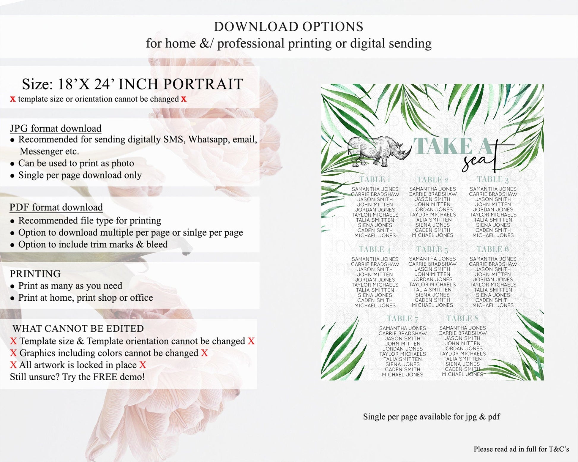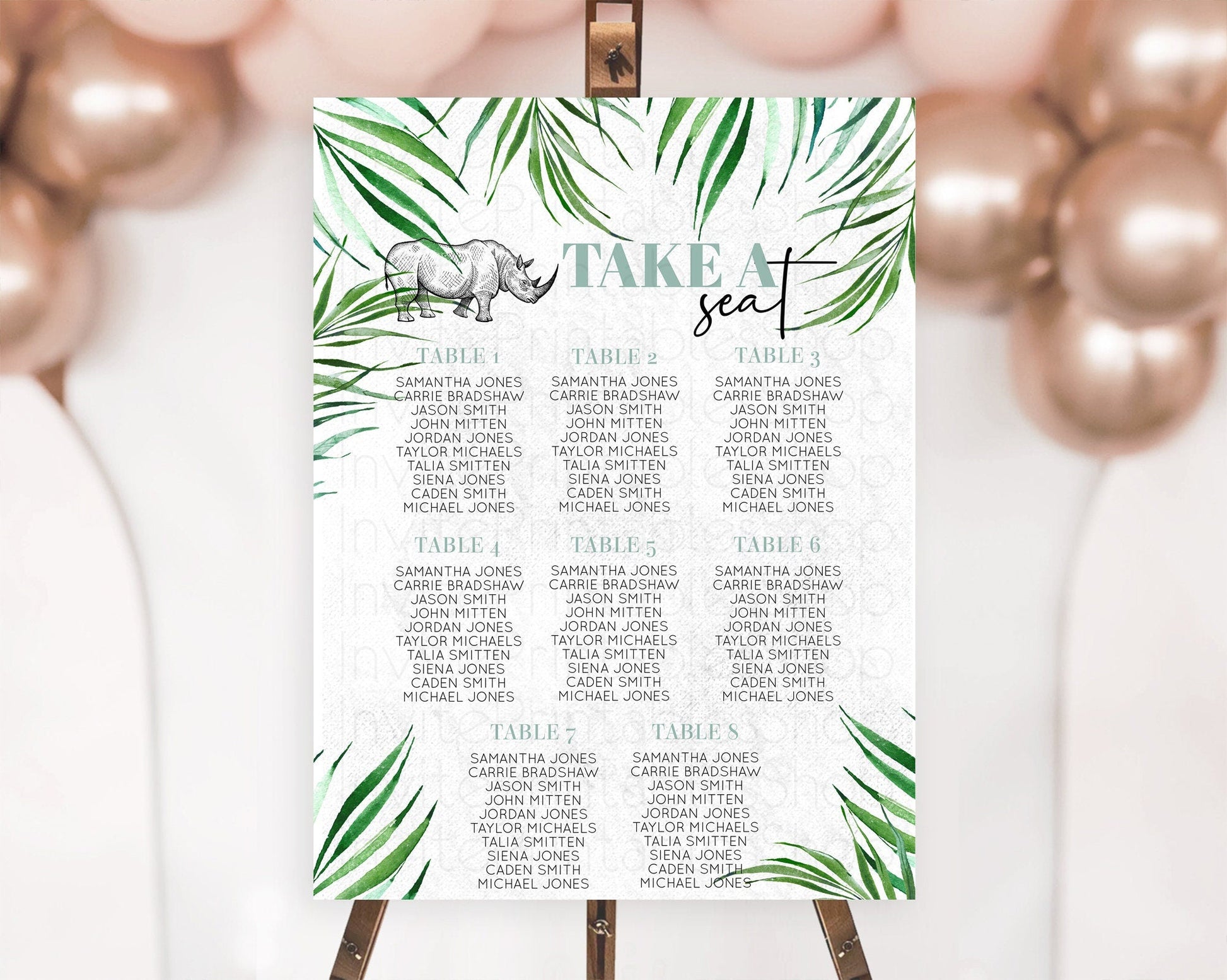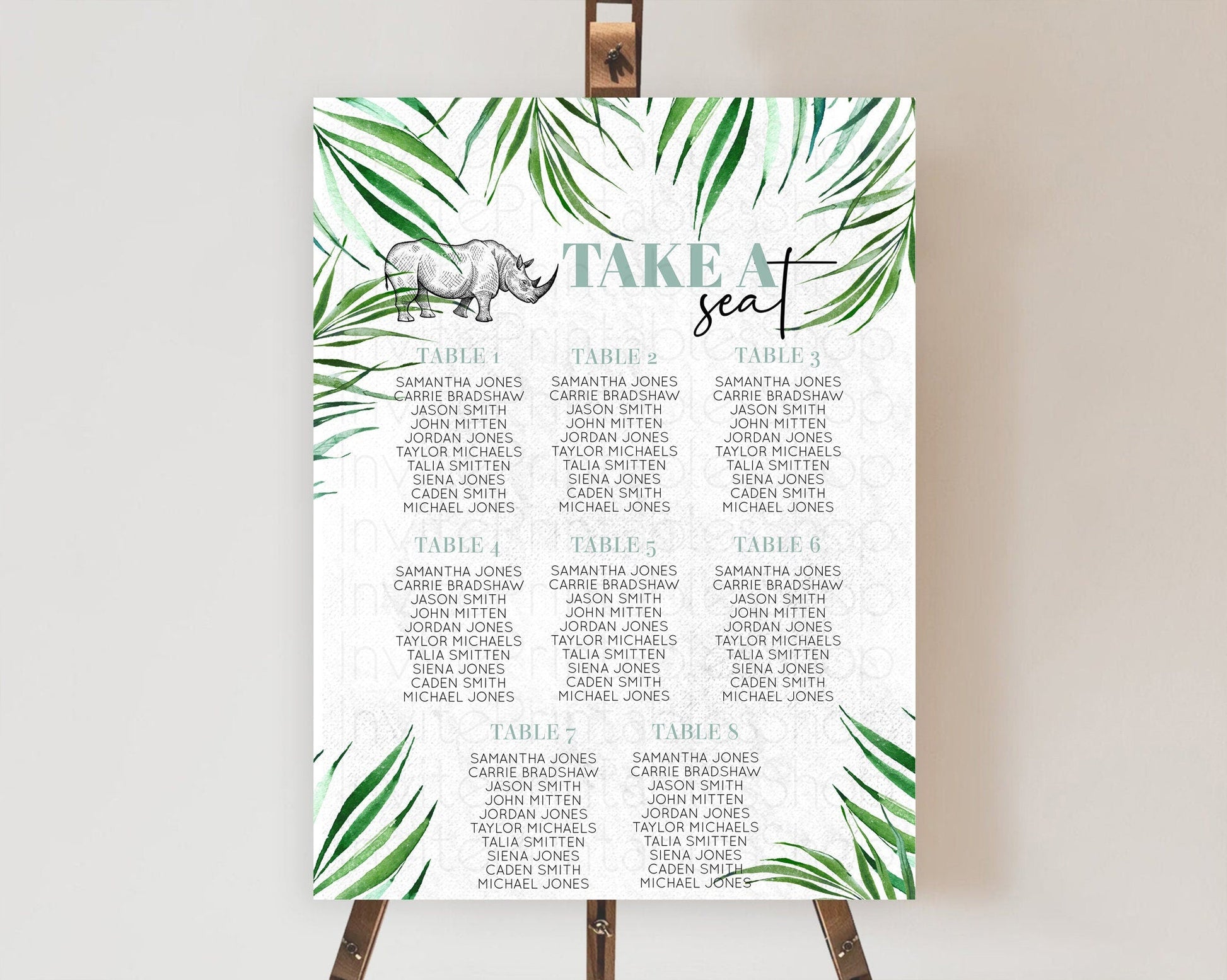 Rhino Seating Chart Rhino Seating Sign Rhino Take A Seating Chart Rhino Safari Adventure Decor Zoo Party Rhino Palm Leaf Decor D10848