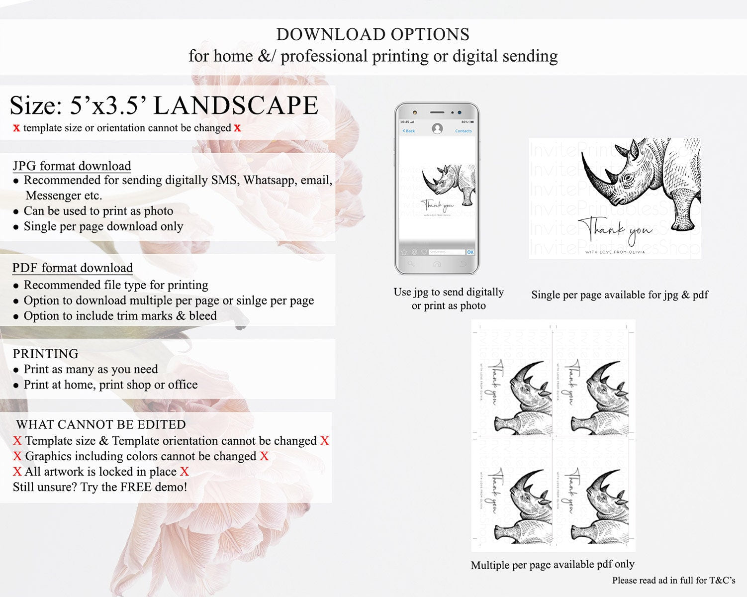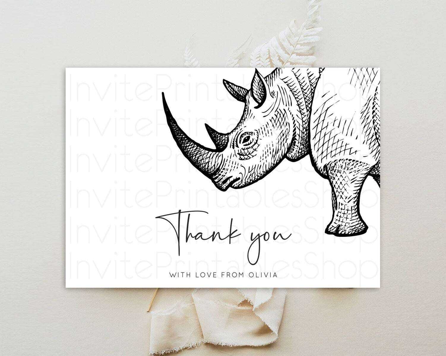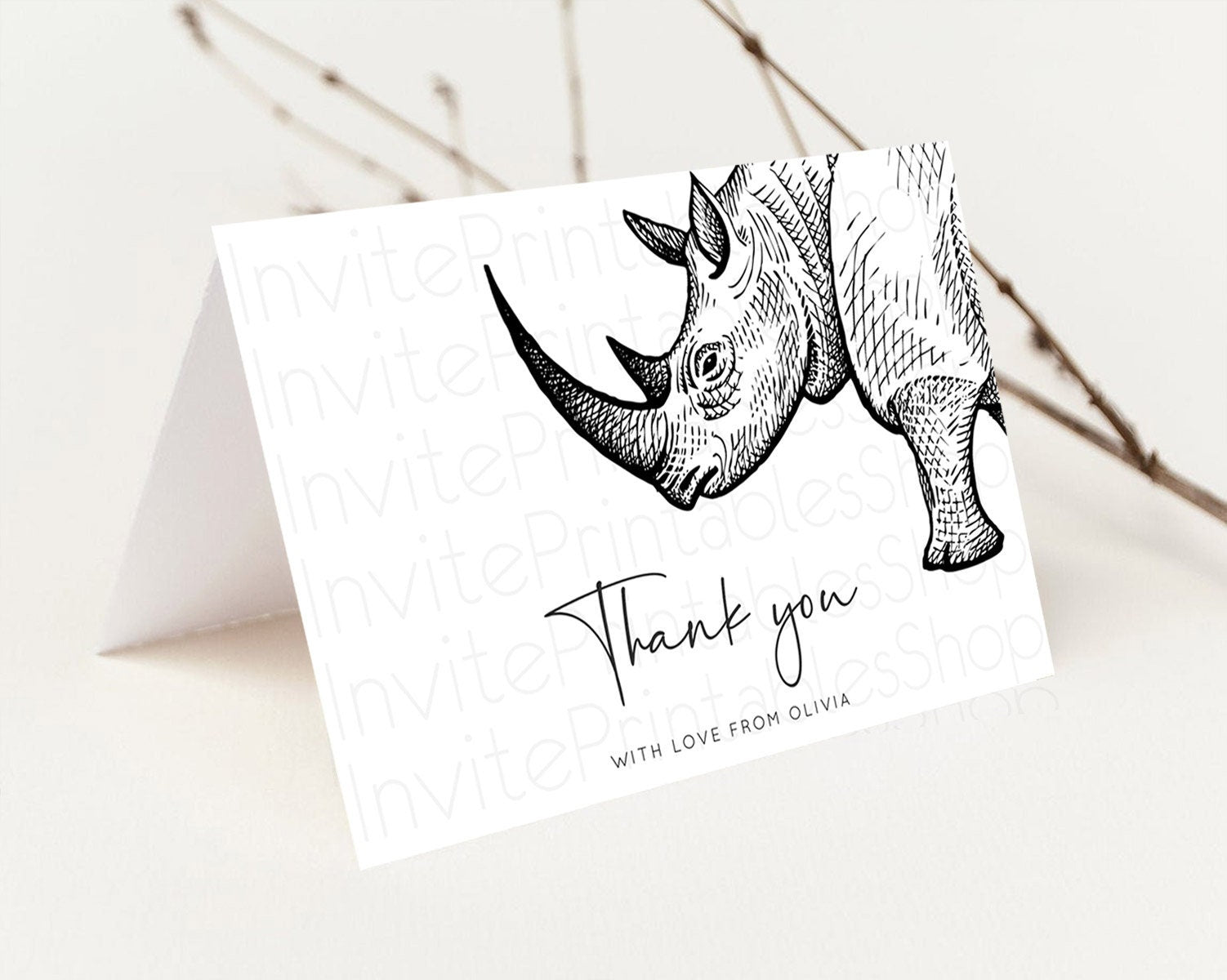 Rhino Thank You Rhino Thank You Card Rhino Birthday Thank You Card Rhino Card Template First Birthday Rhino Teacher Thank You Cards D10253