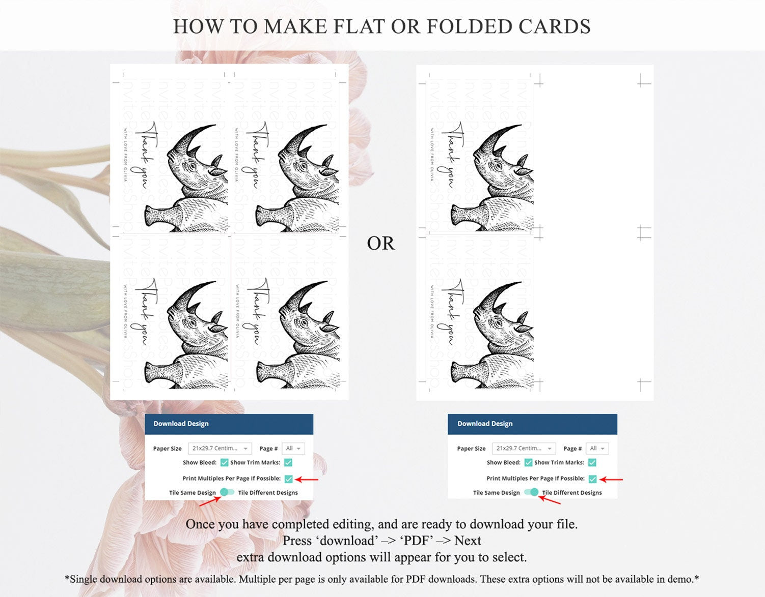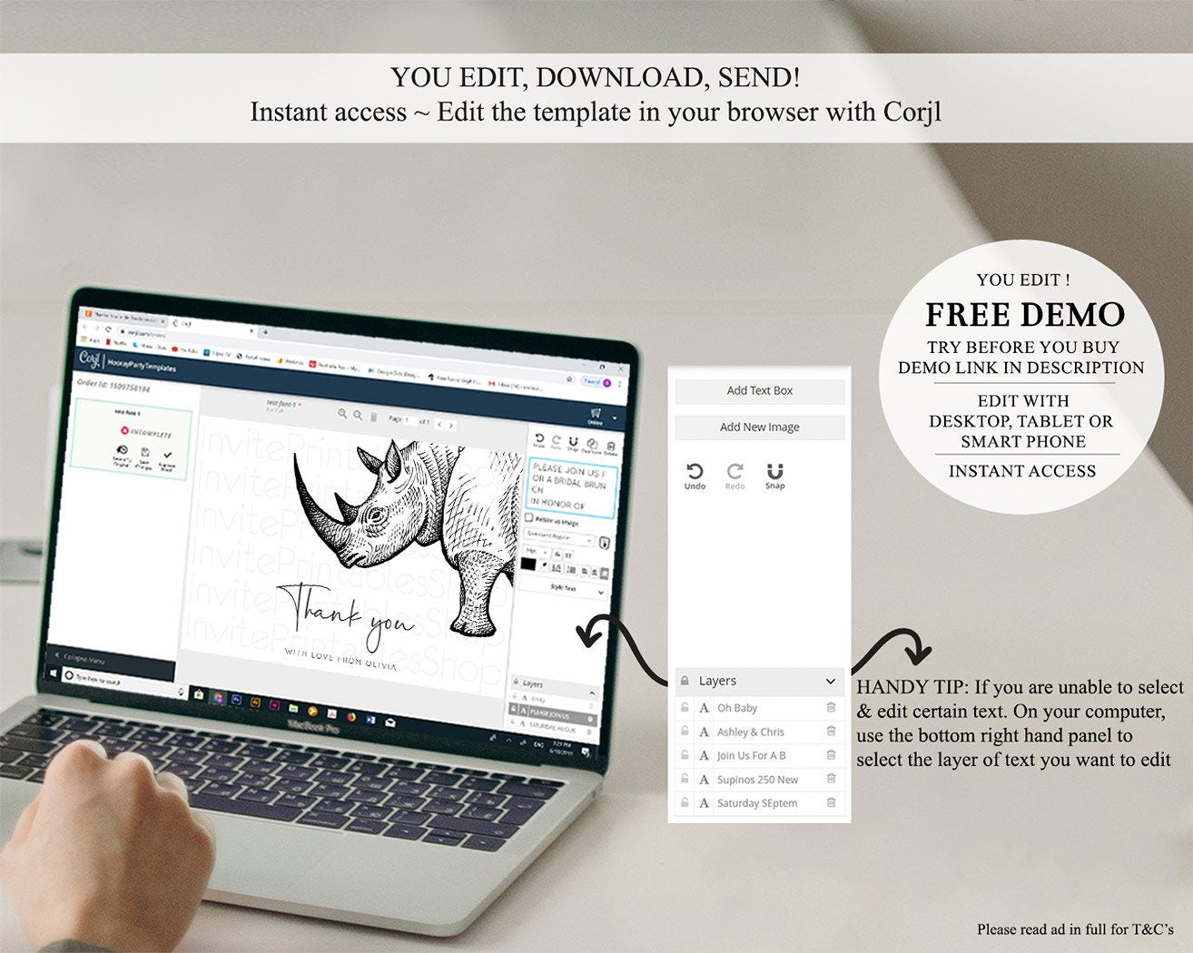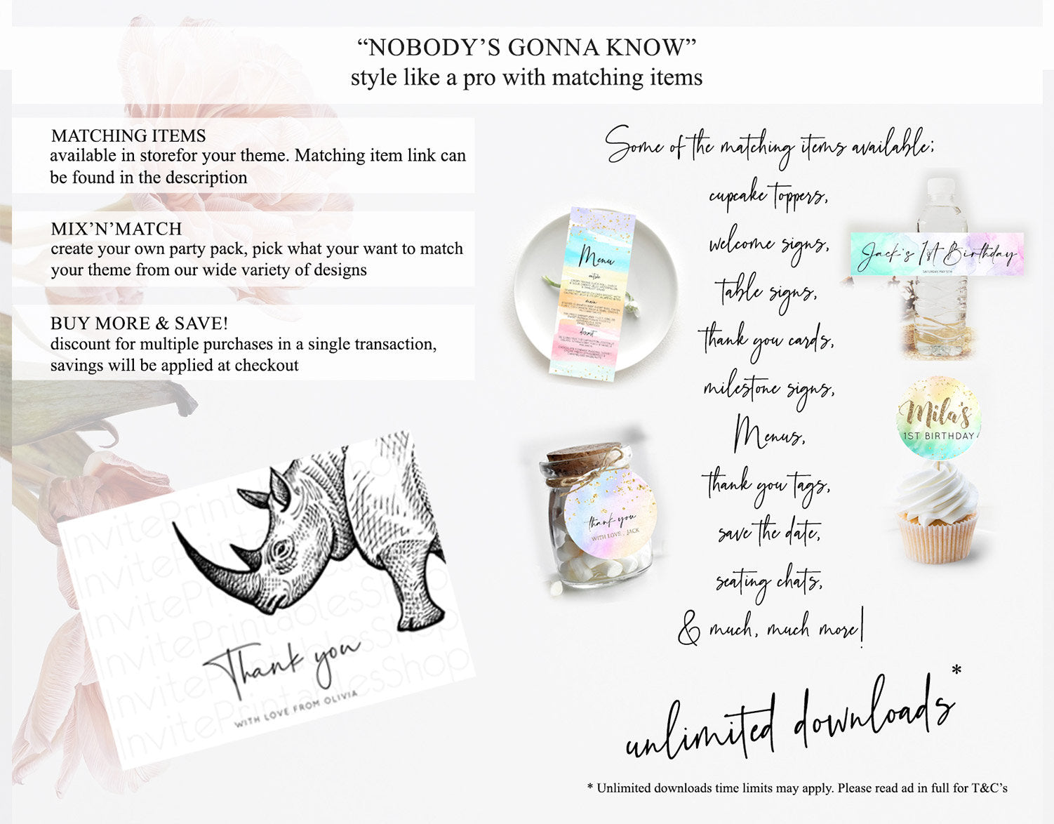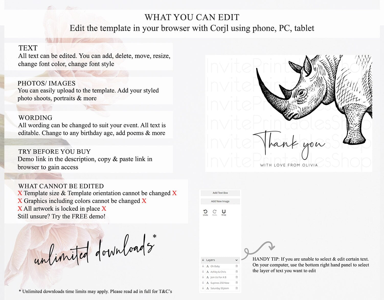 Rhino Thank You Rhino Thank You Card Rhino Birthday Thank You Card Rhino Card Template First Birthday Rhino Teacher Thank You Cards D10253