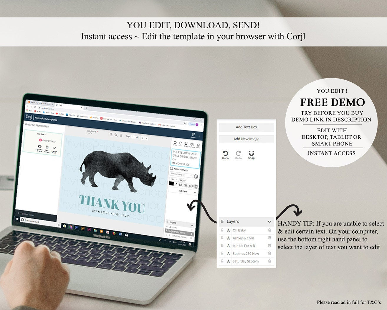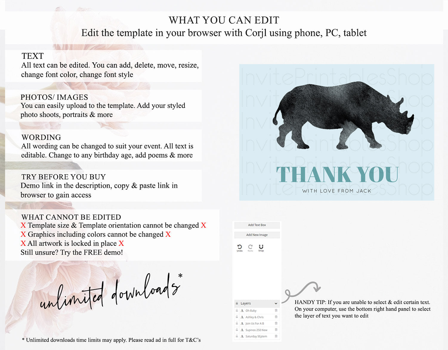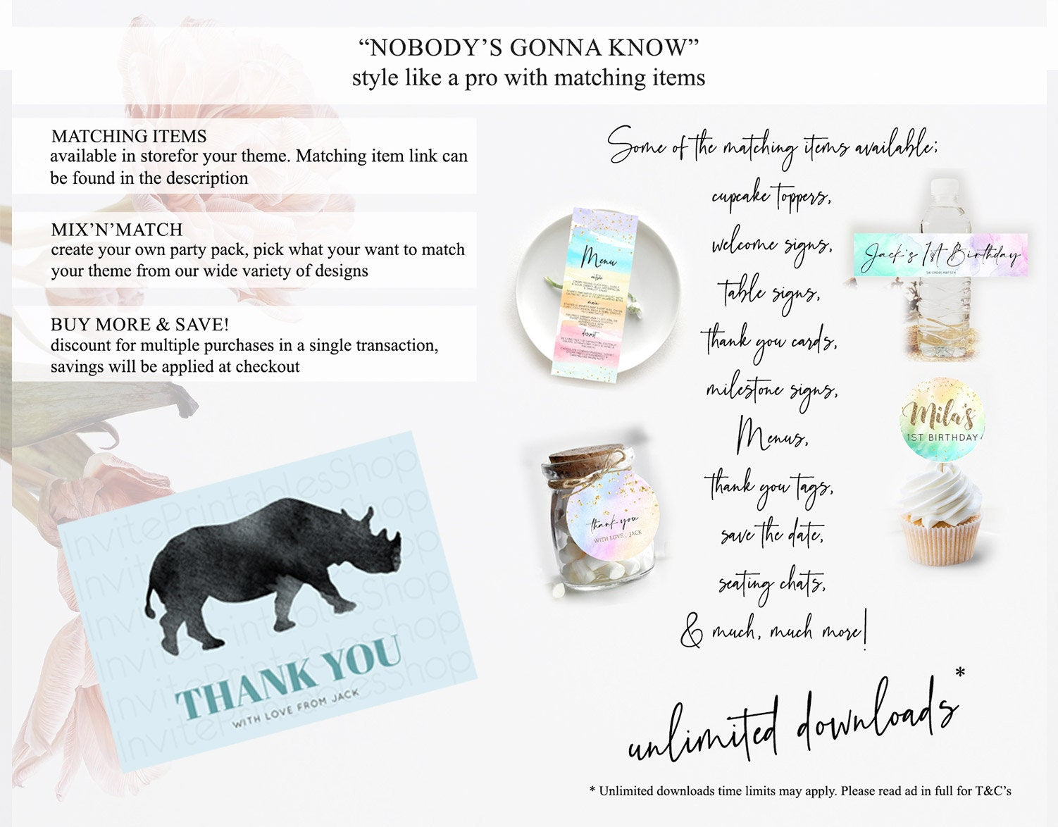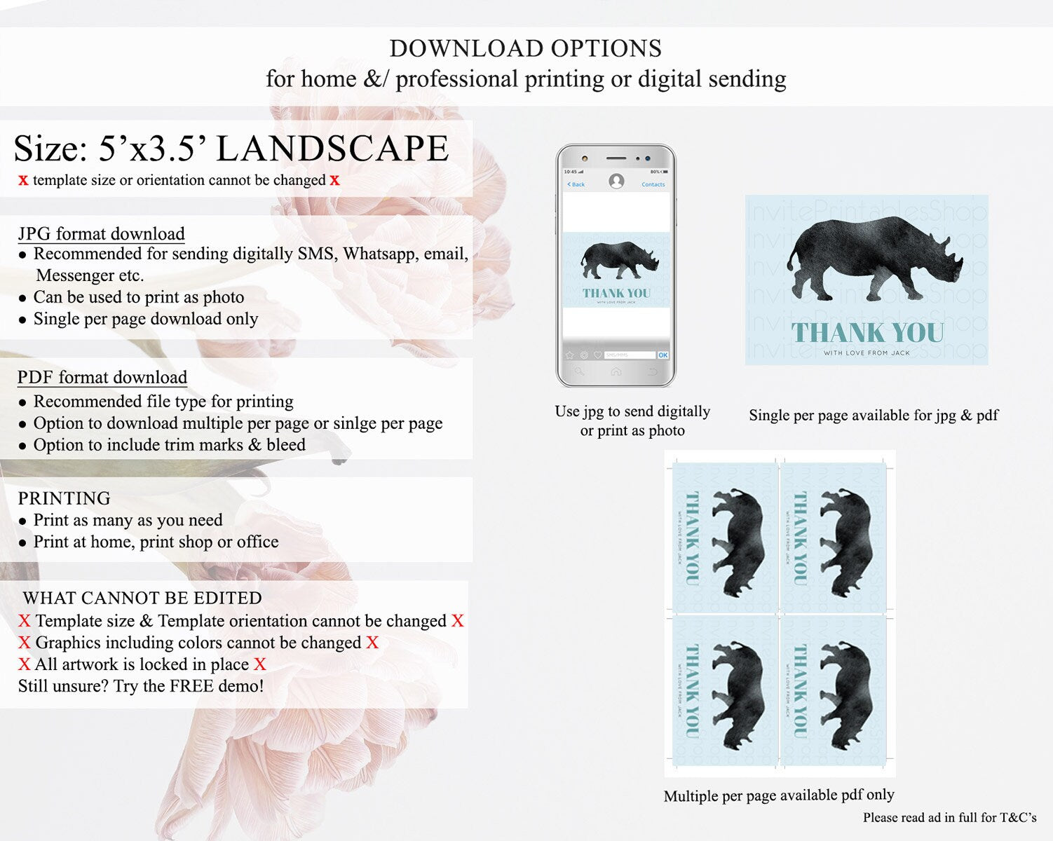 Rhino Thank You Rhino Thank You Card Rhino Birthday Thank You Card Rhino Card Template First Birthday Rhino Teacher Thank You Cards D10801