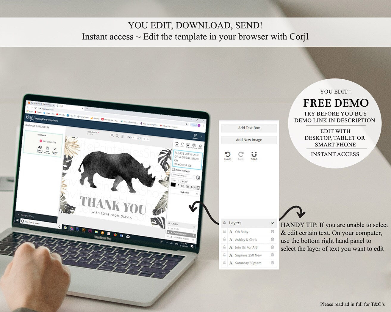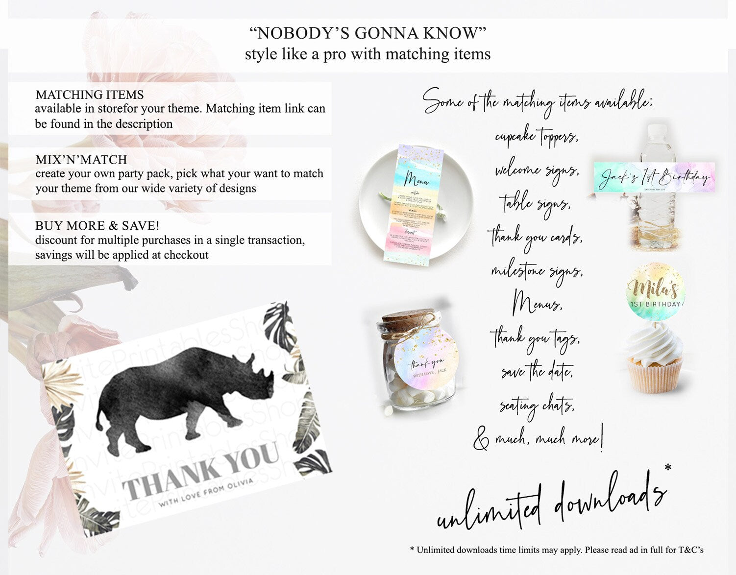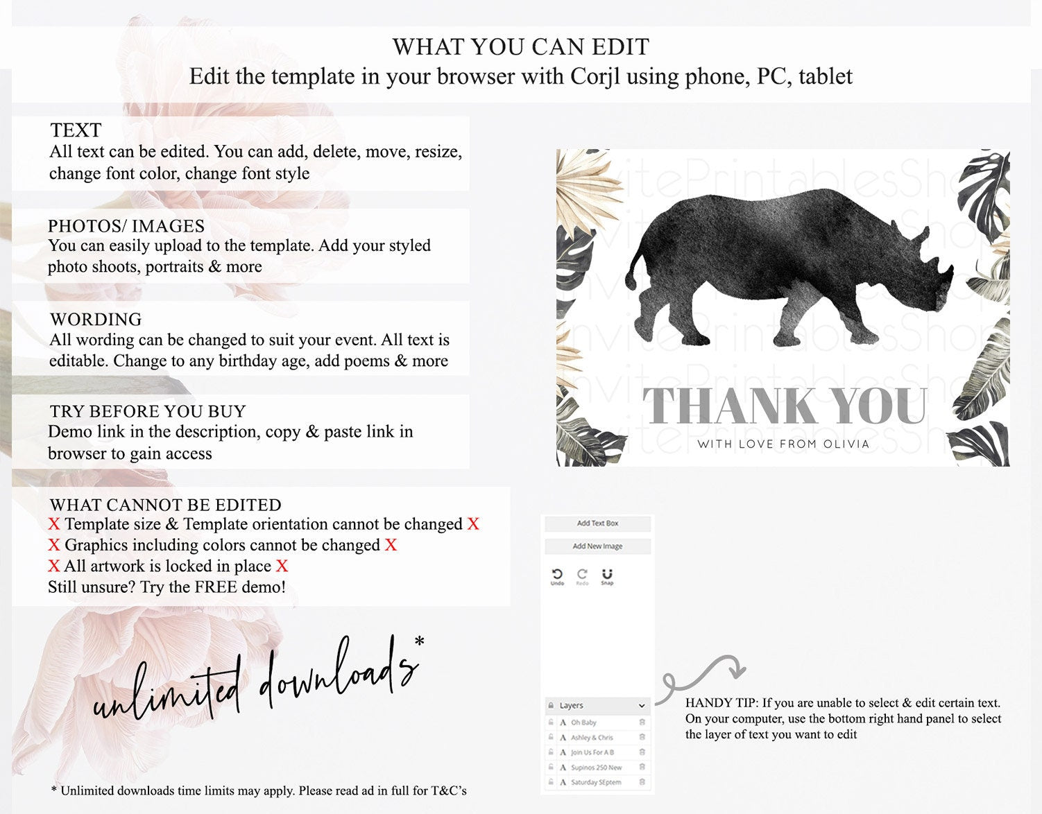 Rhino Thank You Rhino Thank You Card Rhino Birthday Thank You Card Rhino Card Template First Birthday Rhino Teacher Thank You Cards D10805
