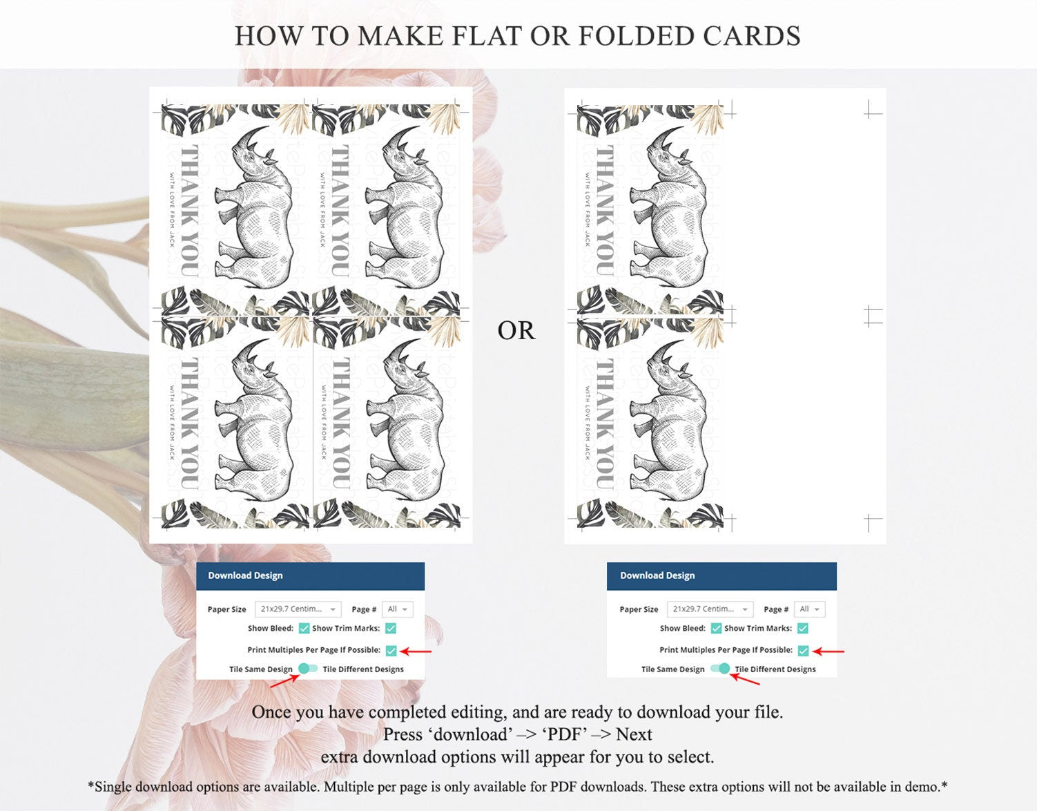 Rhino Thank You Rhino Thank You Card Rhino Birthday Thank You Card Rhino Card Template First Birthday Rhino Teacher Thank You Cards D10826
