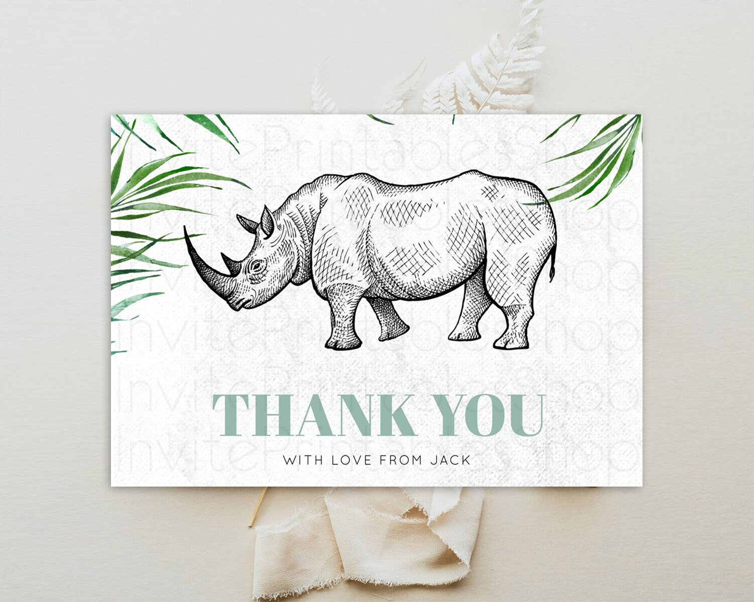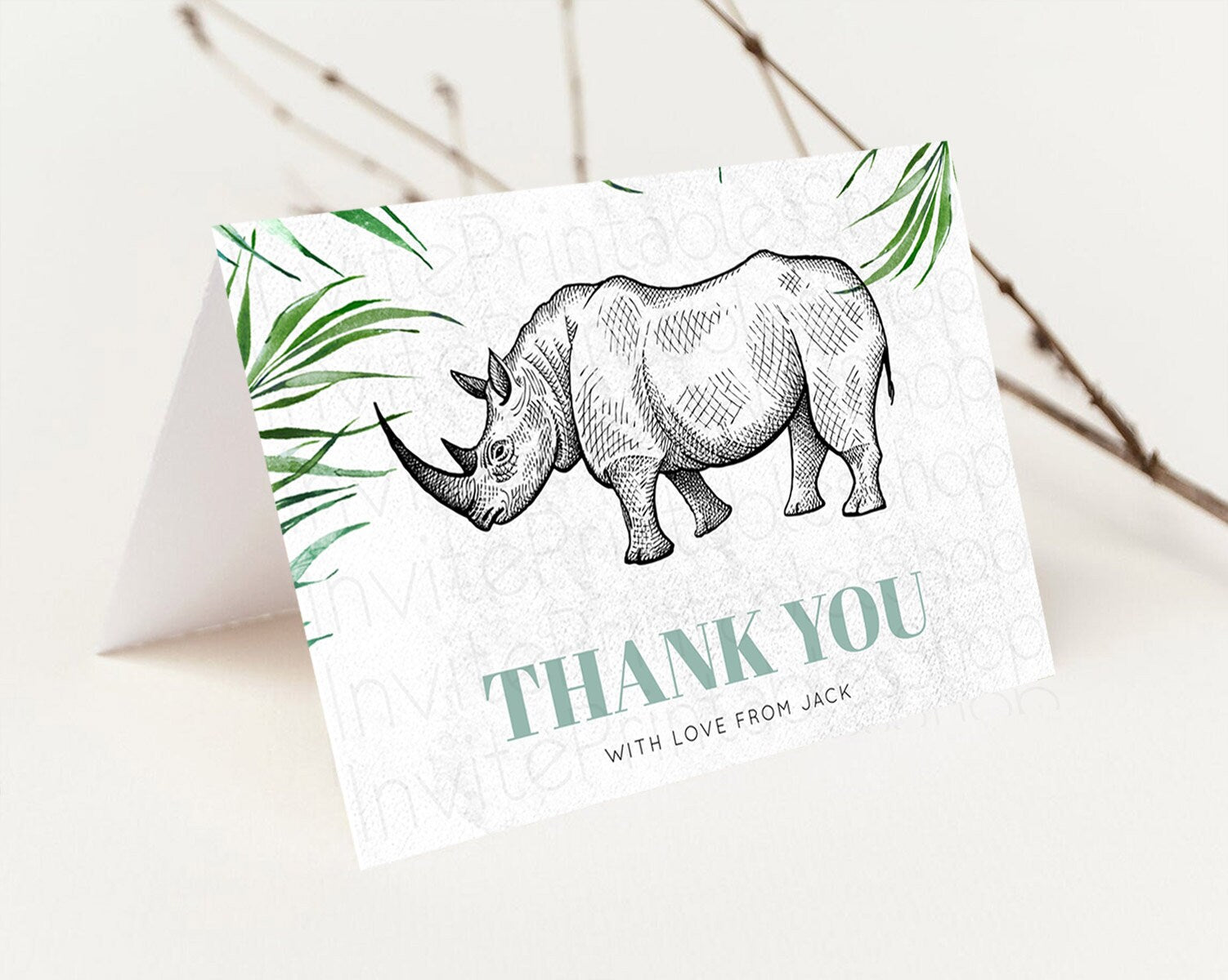 Rhino Thank You Rhino Thank You Card Rhino Birthday Thank You Card Rhino Card Template First Birthday Rhino Teacher Thank You Cards D10848