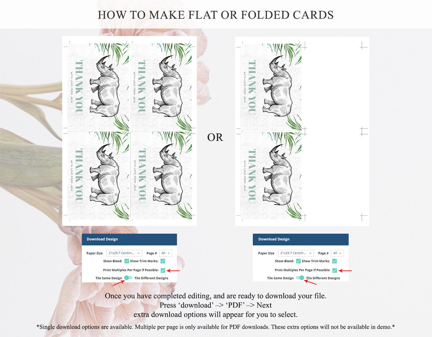 • Custom changes to artwork are not provided on existing templates.