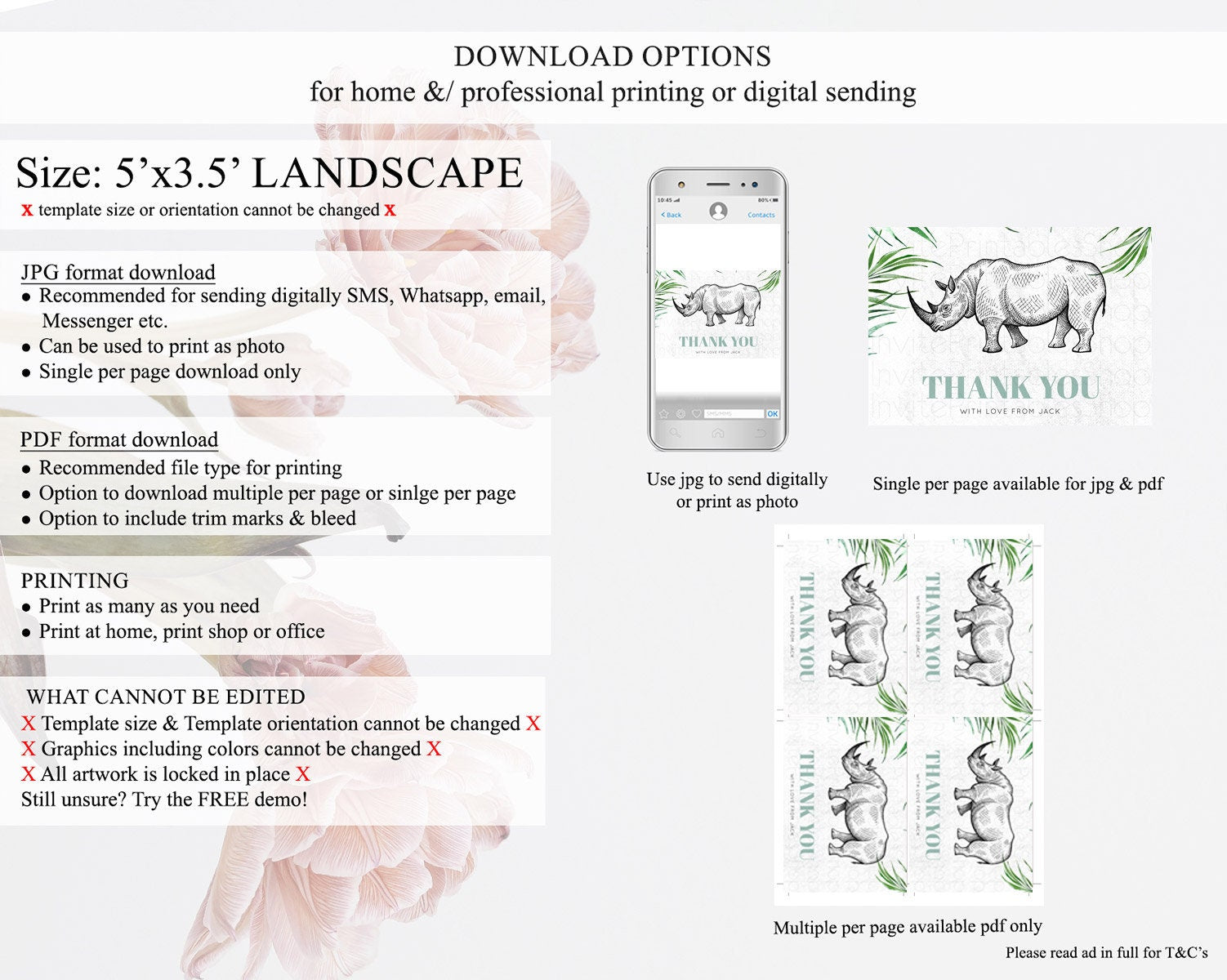 • Template size & orientation cannot be changed. Please use the demo link to confirm this product suits your needs.
