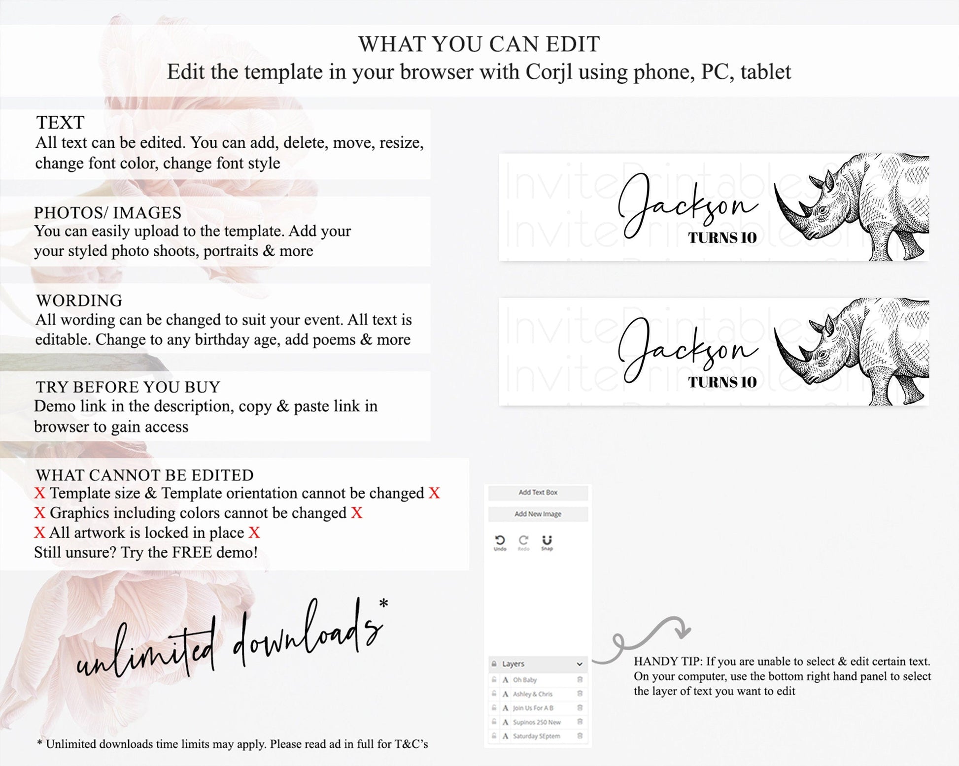 • After purchase, Corjl emails your editing link. Allow up to 15 minutes for delivery.