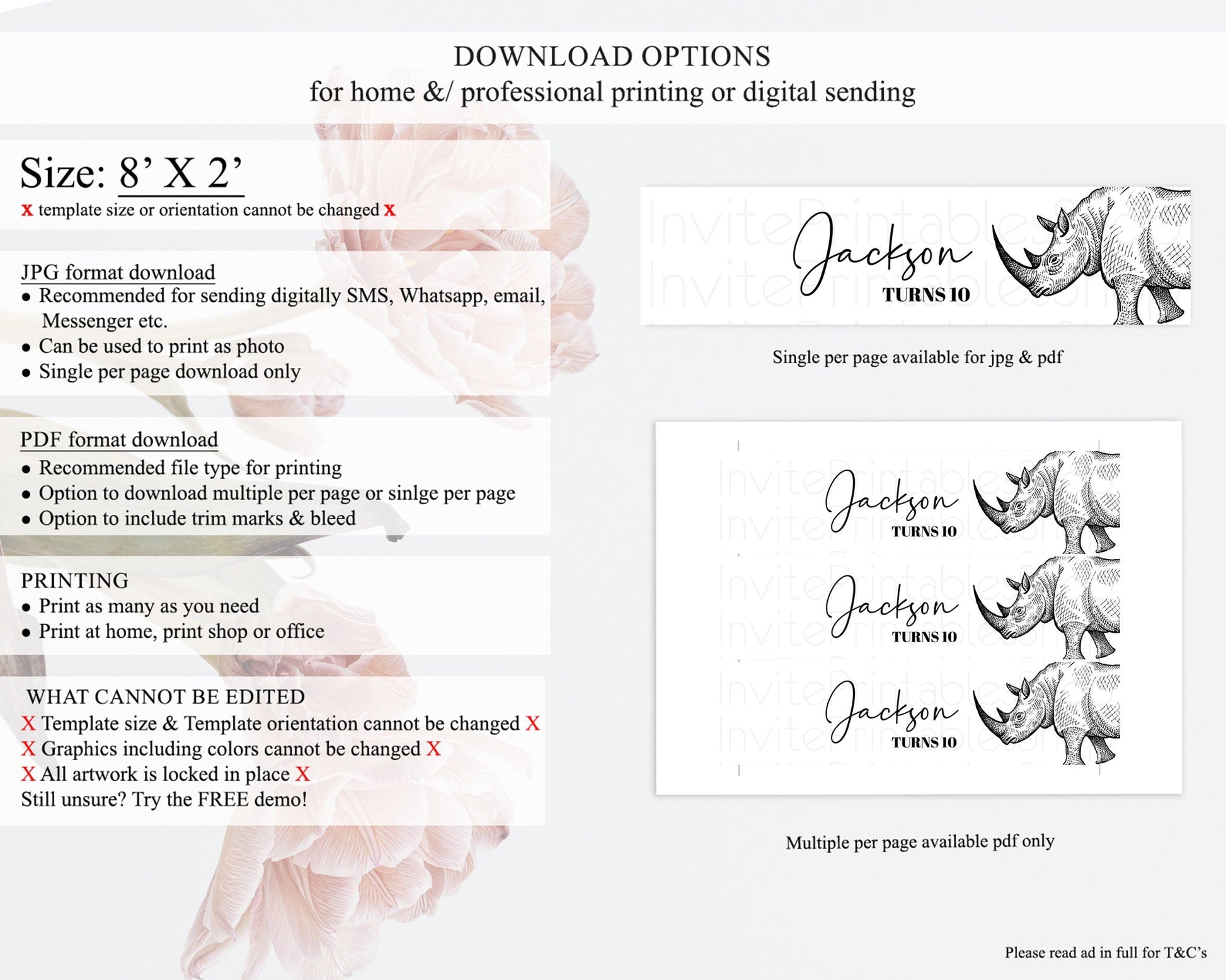 • Template size & orientation cannot be changed. Please use the demo link to confirm this product suits your needs.
