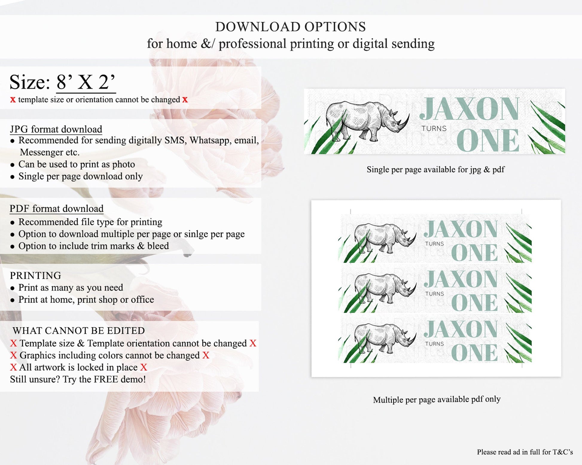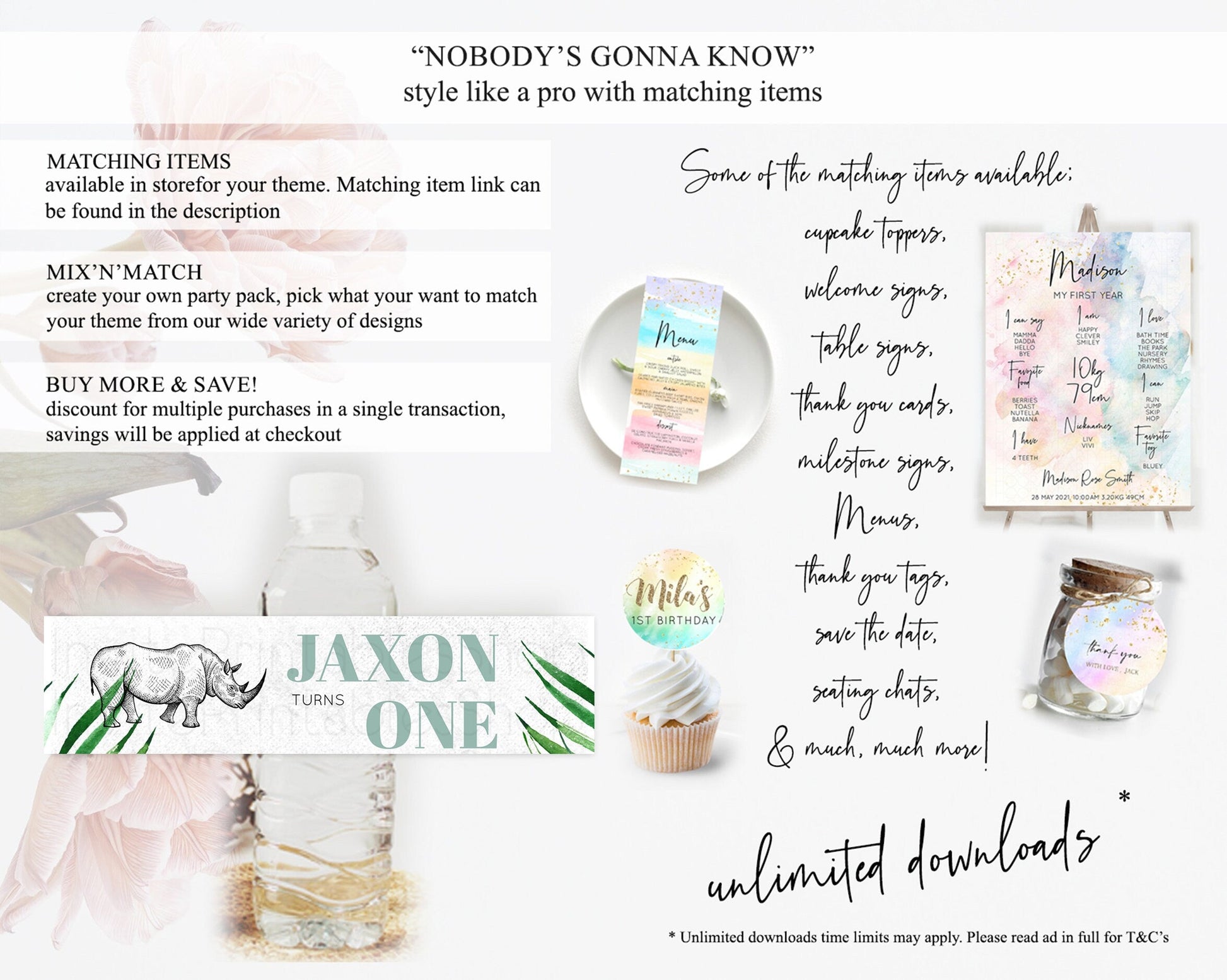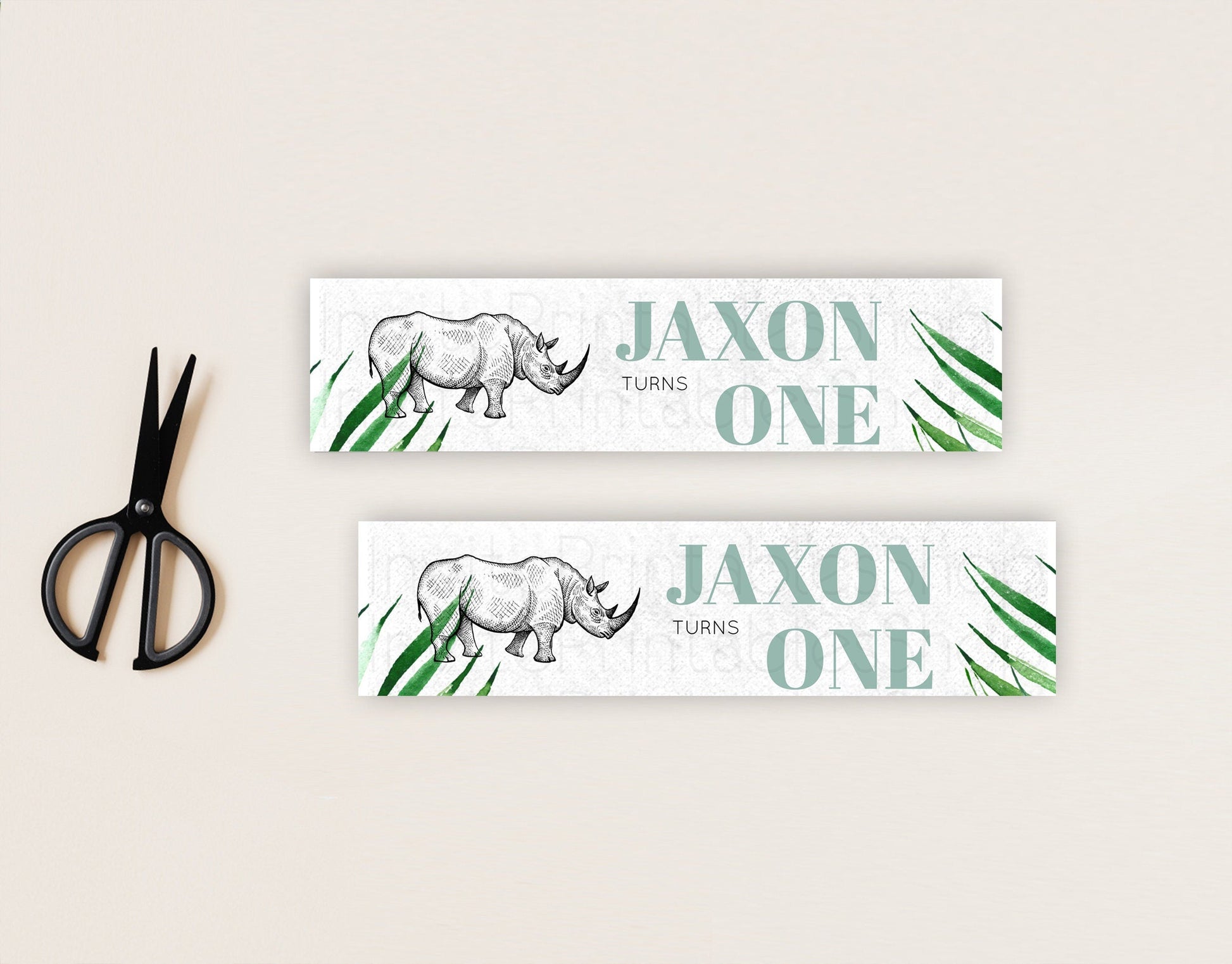 Rhino Water Label Template Rhino Party Decor Water Label Safari Adventure Rhino Minimal Theme For 1st Birthday Baptism Baby Shower D10848