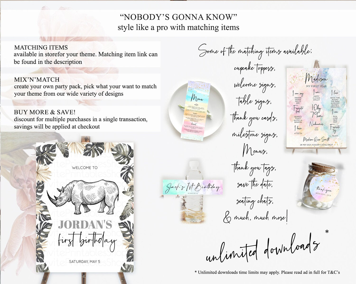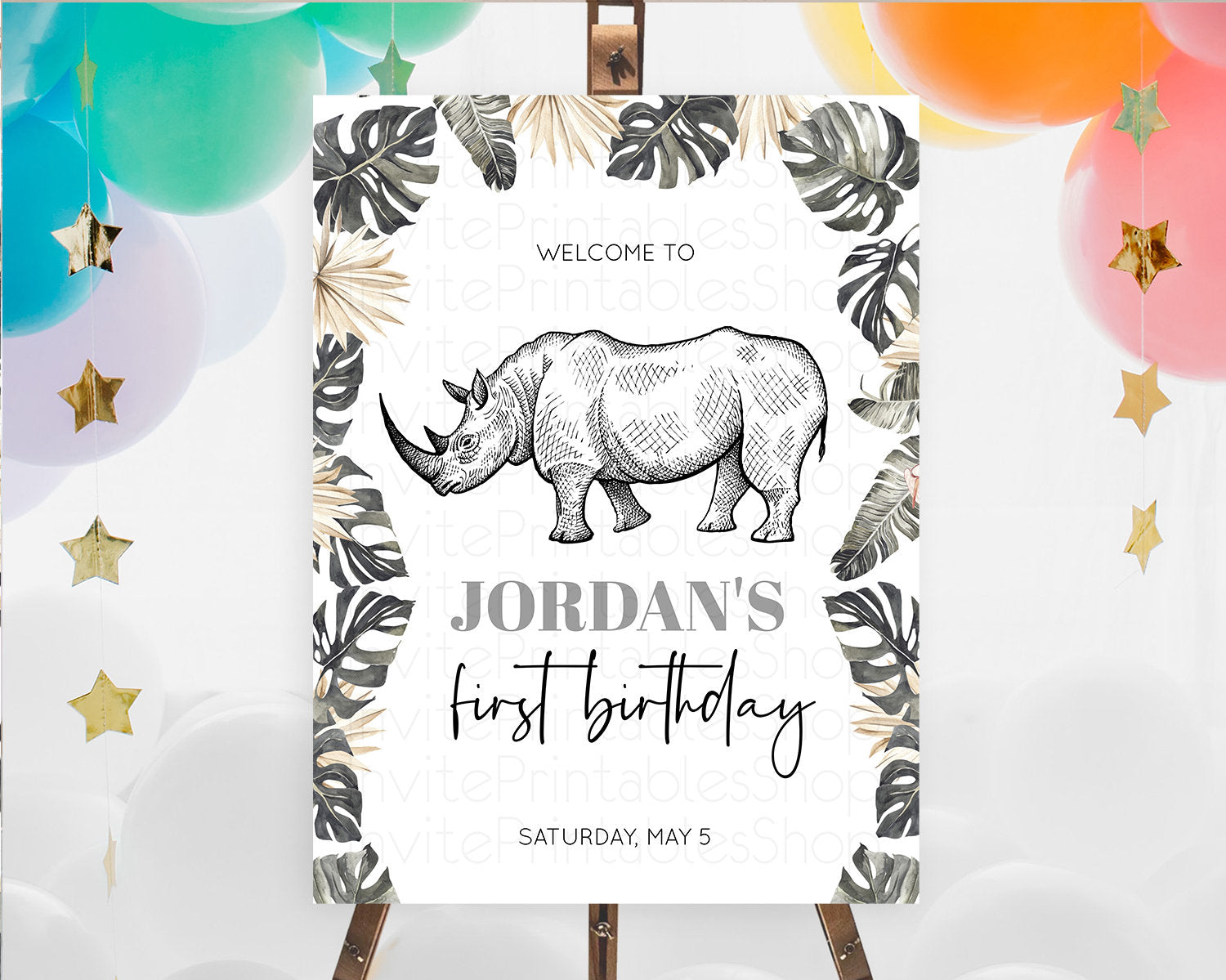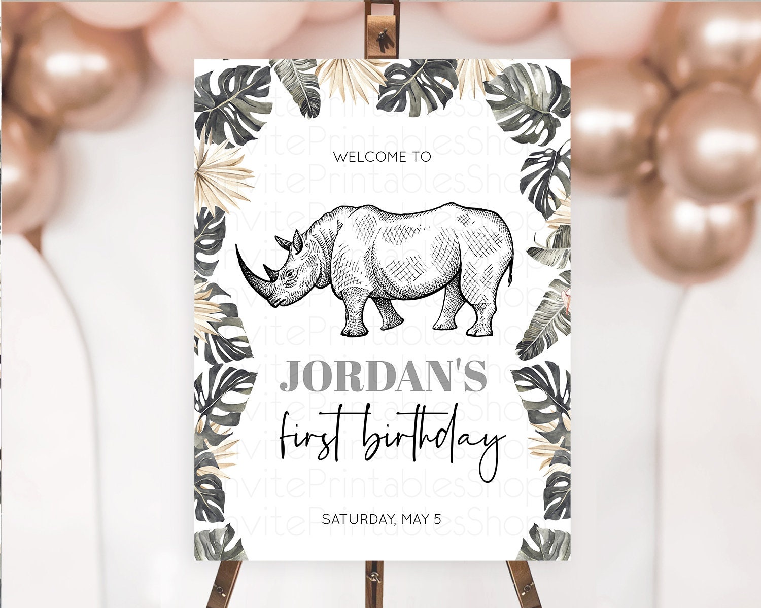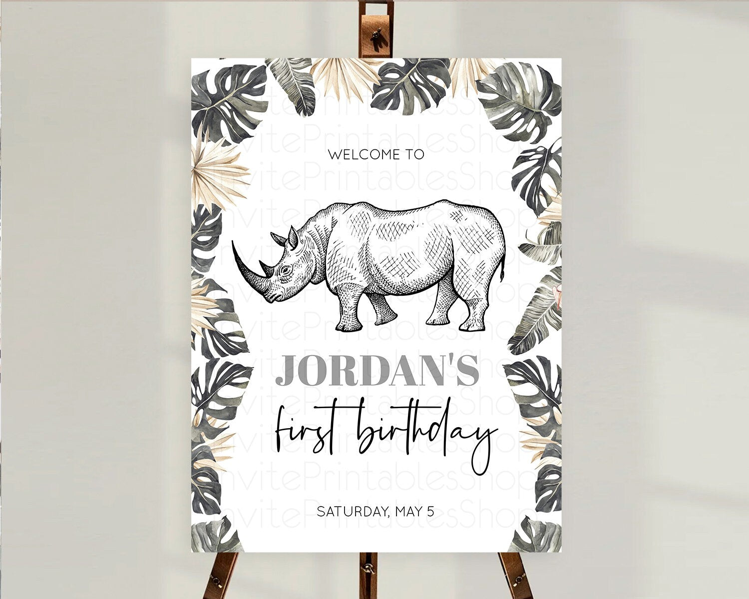Rhino Welcome Sign Rhino Welcome Board Rhino Welcome Poster Dried Palm Fern Safari Party Decor Rhino First Birthday Welcome Sign D10826
