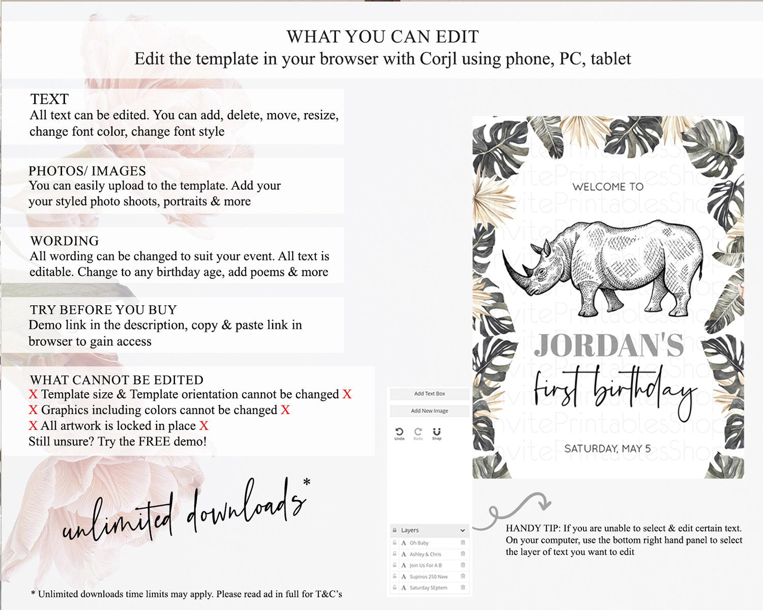 • After purchase, Corjl emails your editing link. Allow up to 15 minutes for delivery.
