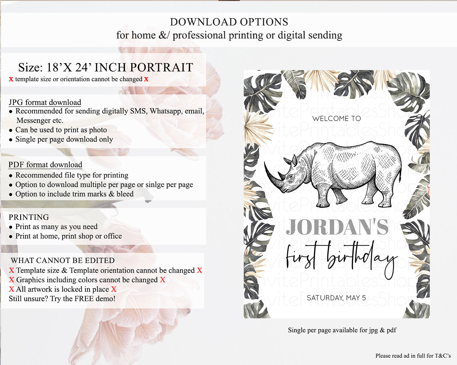 • Template size & orientation cannot be changed. Please use the demo link to confirm this product suits your needs.