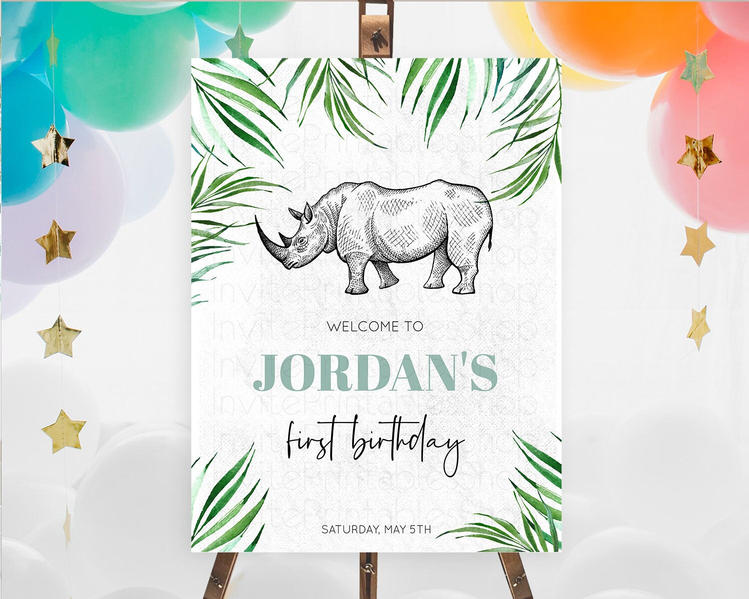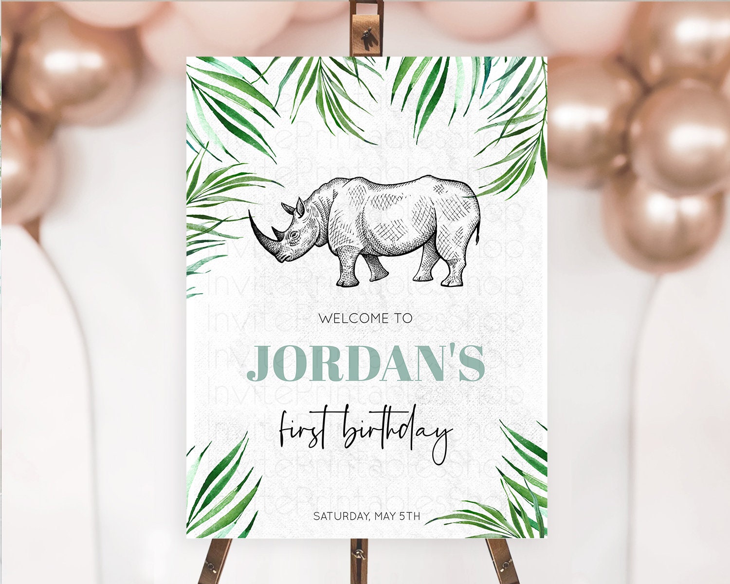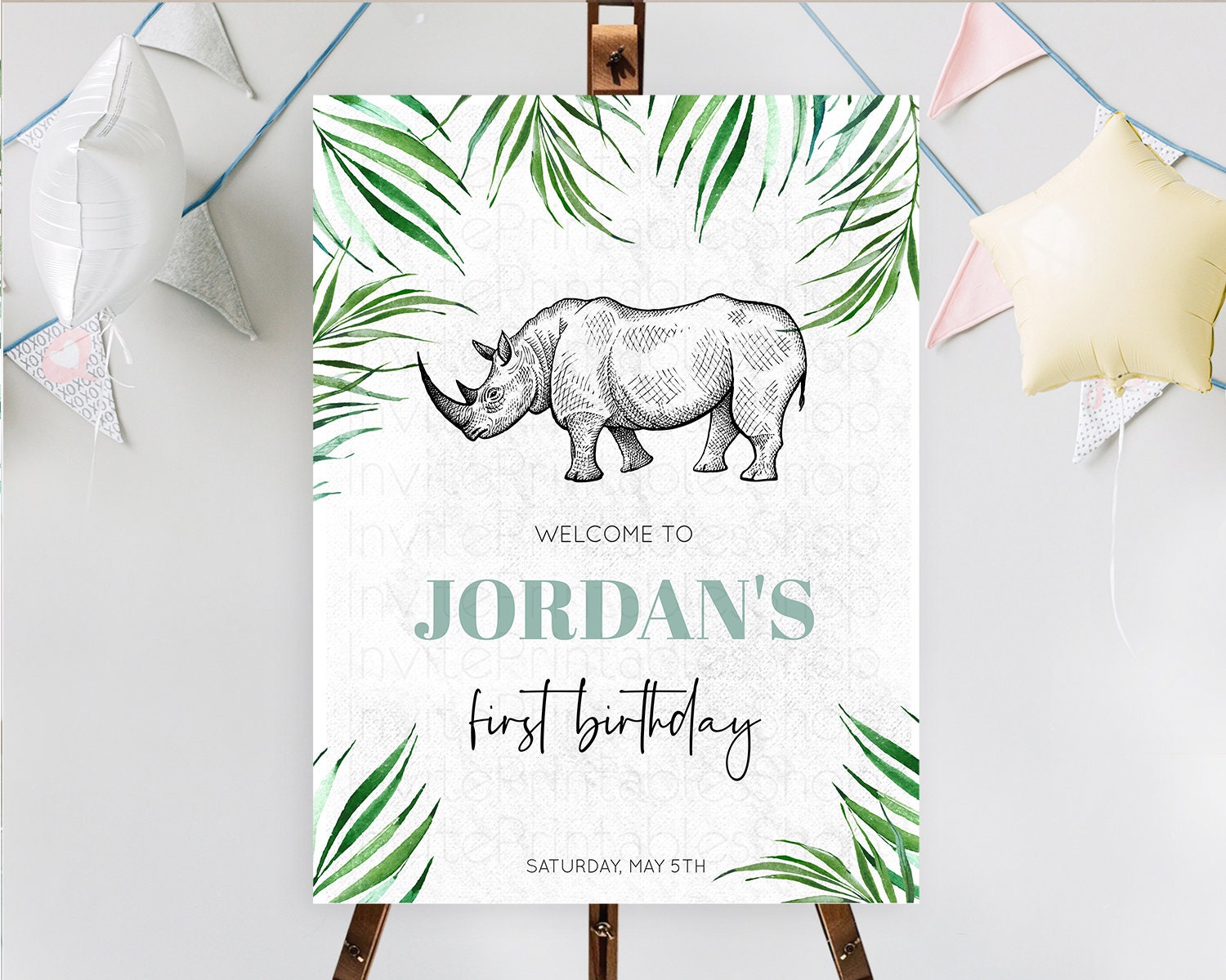 Rhino Welcome Sign Rhino Welcome Board Rhino Welcome Poster Dried Palm Fern Safari Party Decor Rhino First Birthday Welcome Sign D10848