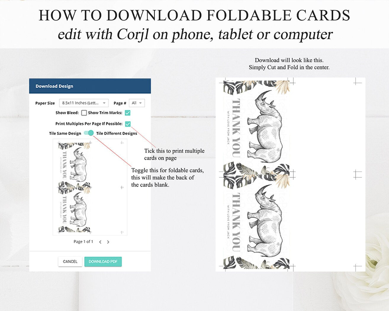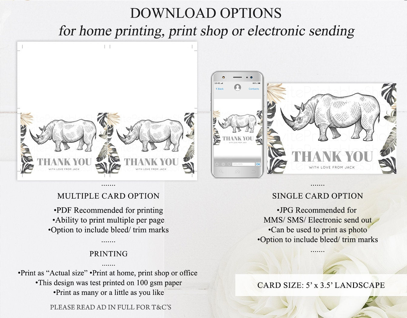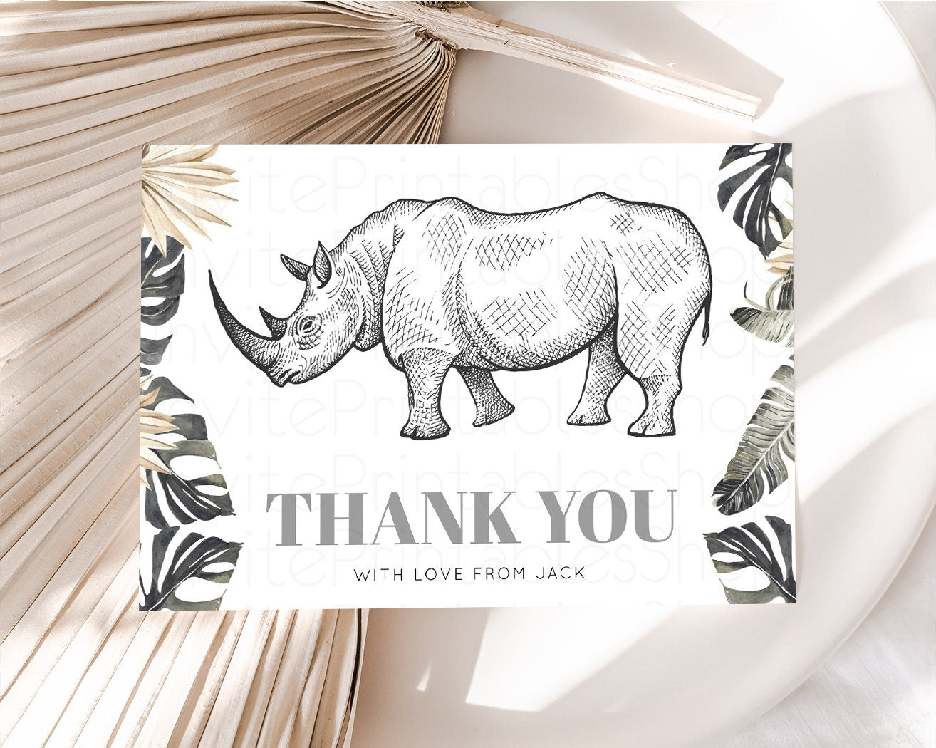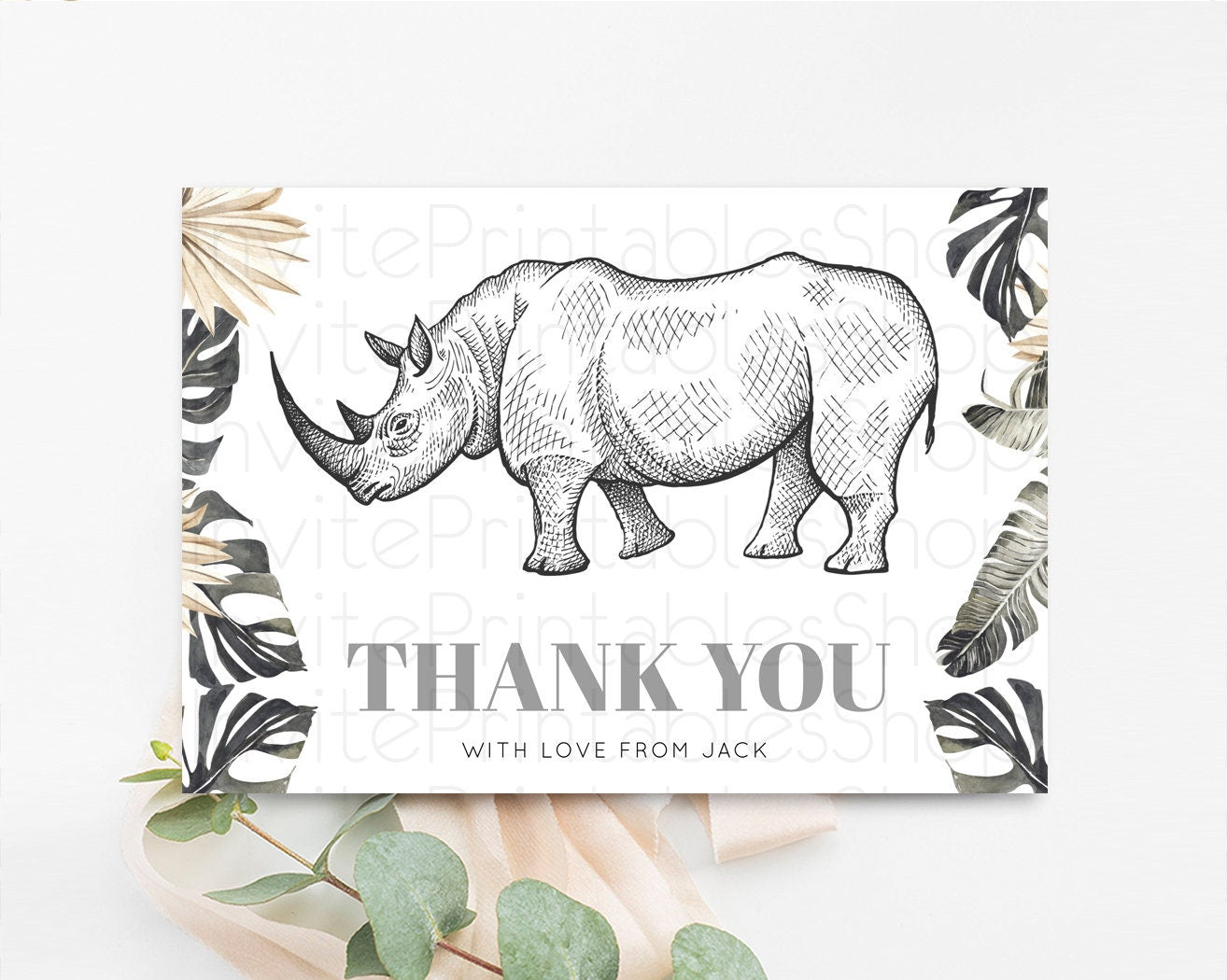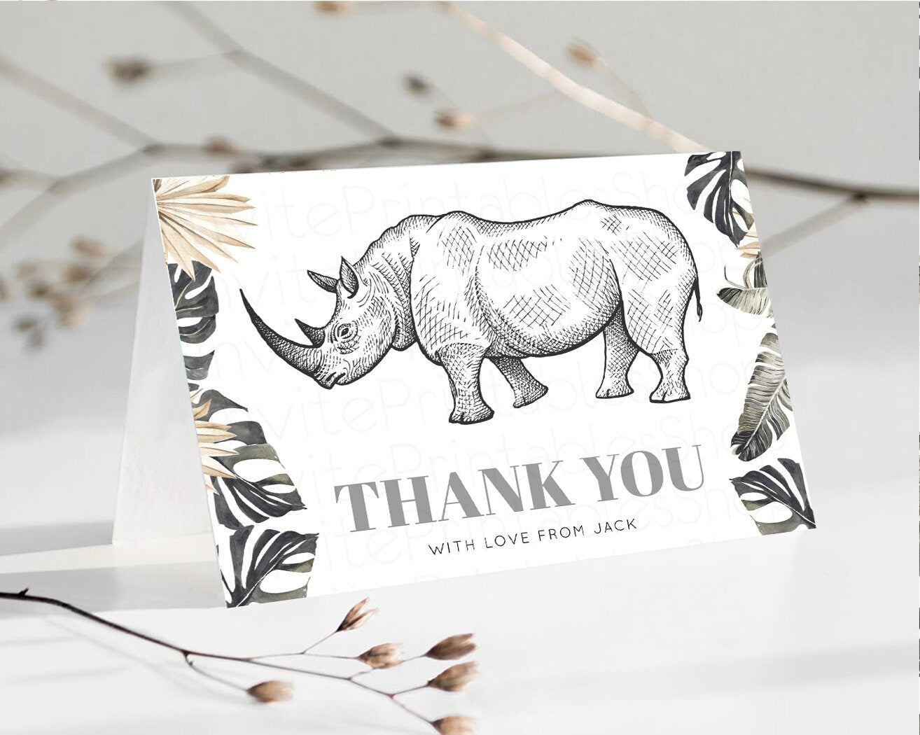 Rhinoceros Thank You Card Dried Palm Fern Wild One Safari Jungle Zoo Foldable Card Tent Flat Postcard Detail Insert Card Birthday p269