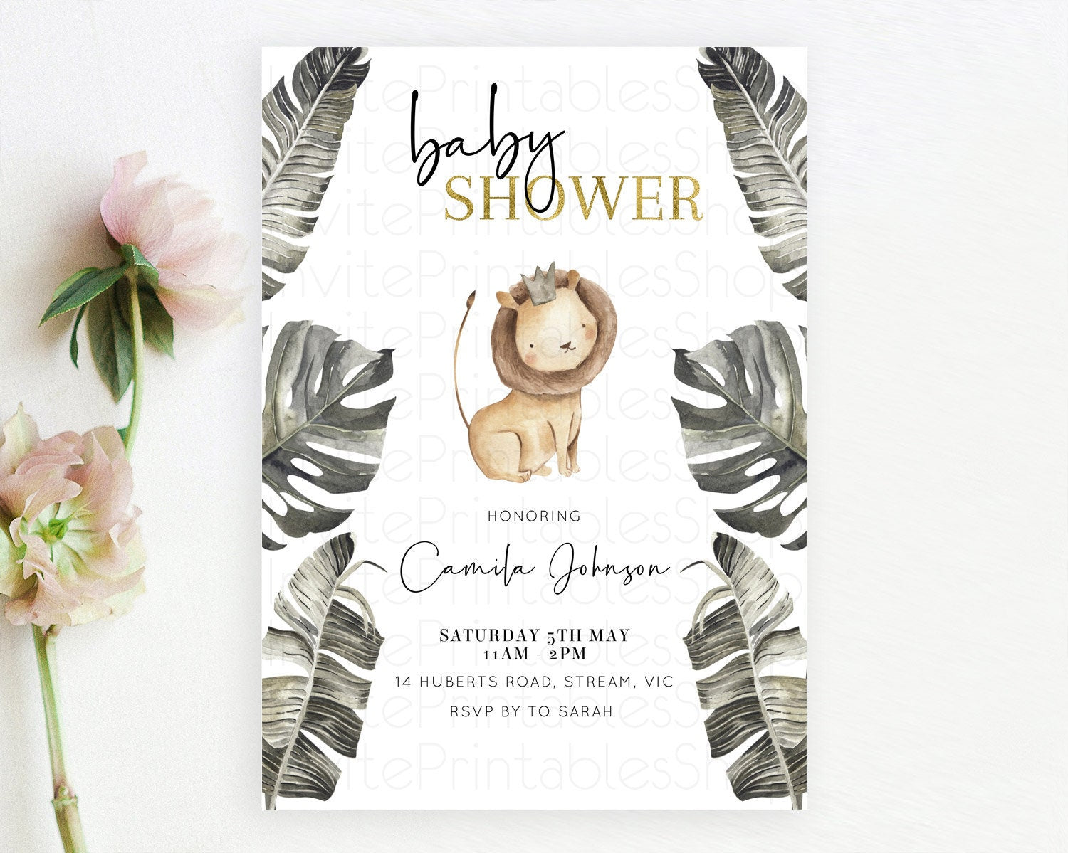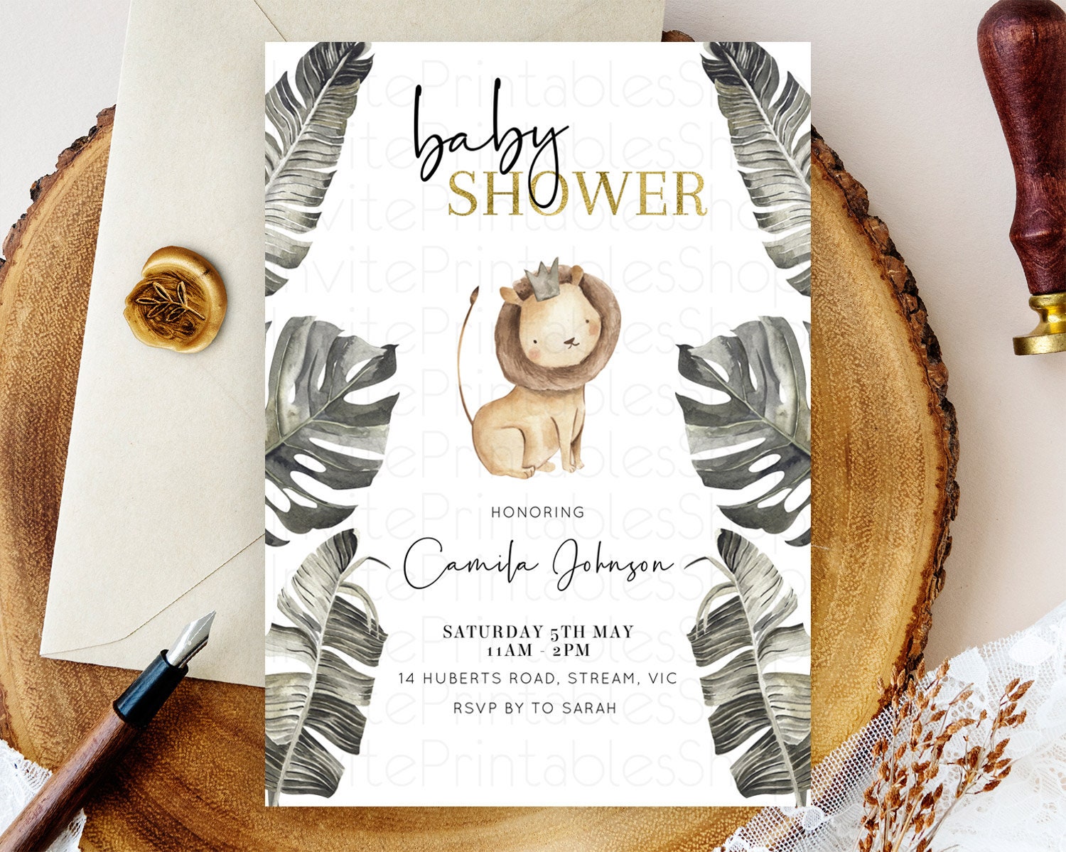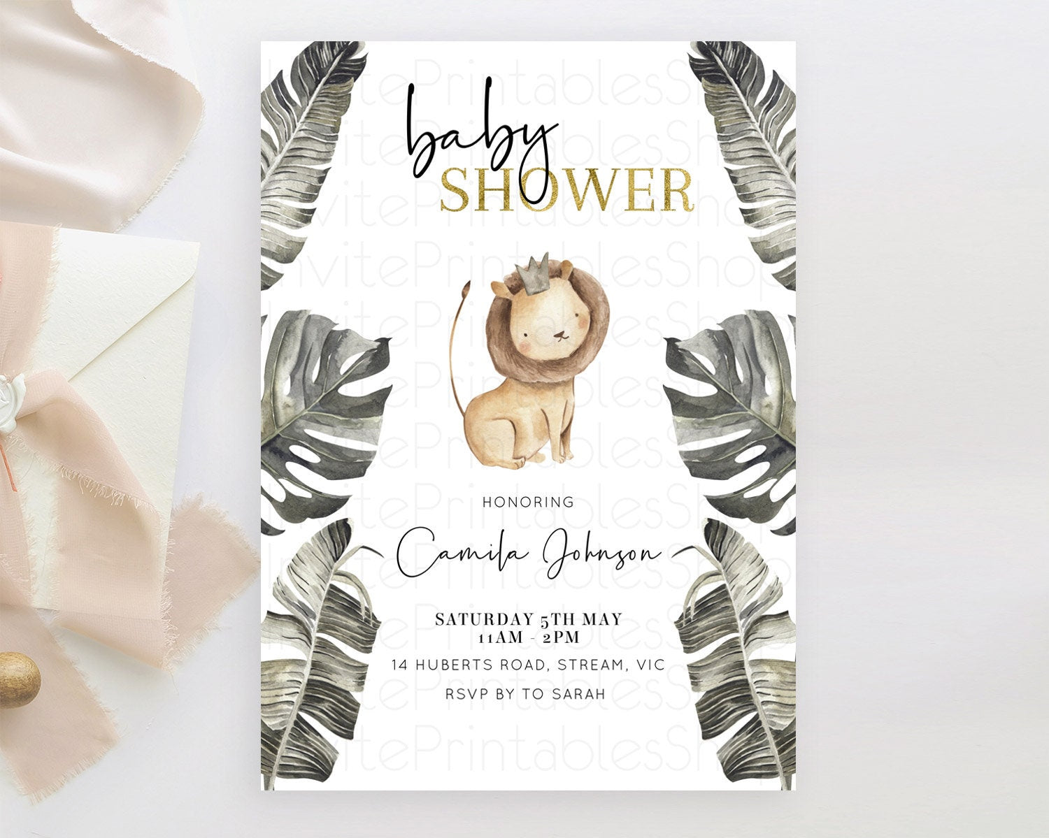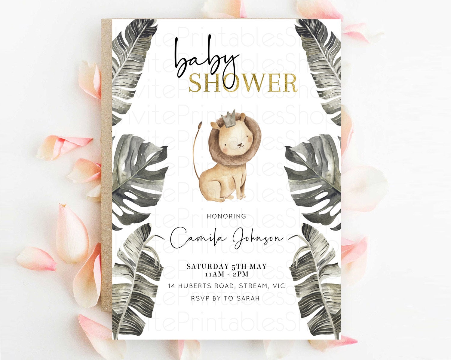 Safari Baby Shower Invitation Baby Lion Gorilla Elephant Rhino Invitation Tropical Palm Jungle Safari Adventure Baby Animals D10599