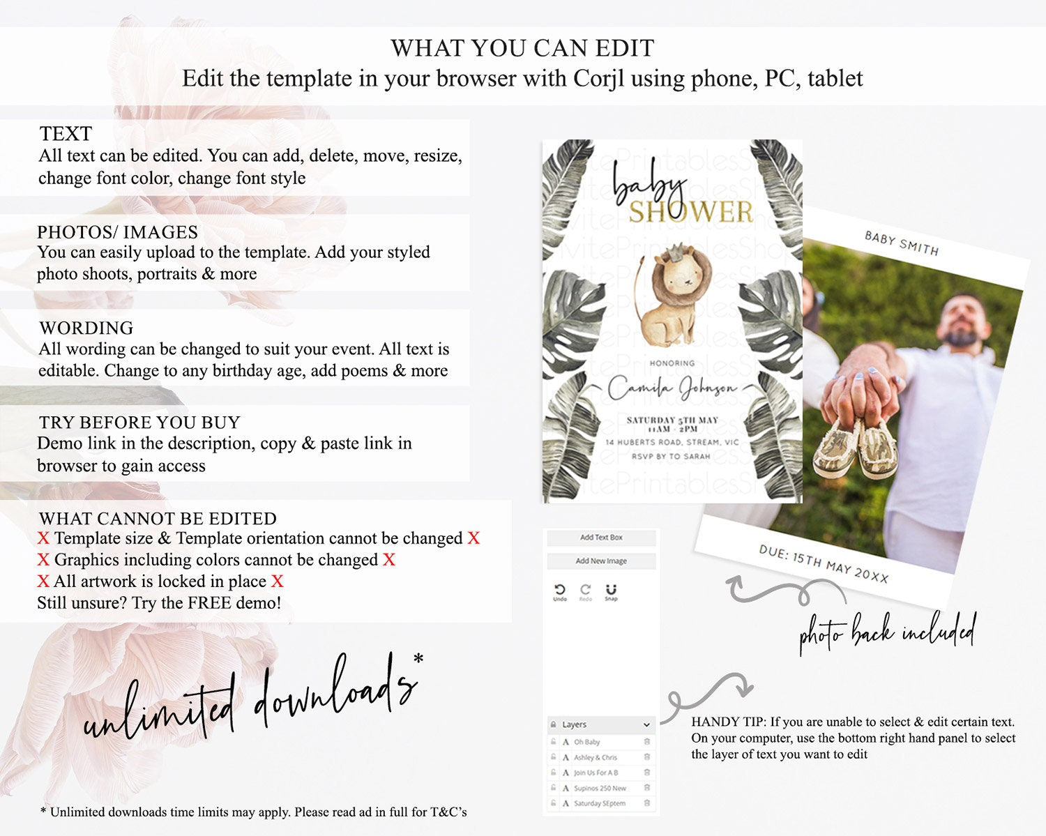 • After purchase, Corjl emails your editing link. Allow up to 15 minutes for delivery.