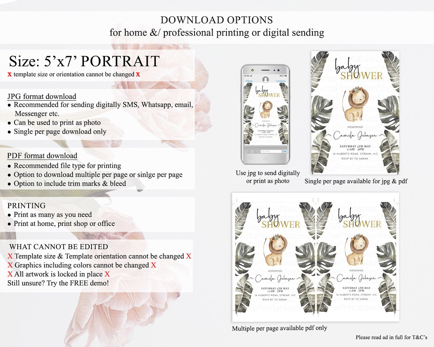 • Template size & orientation cannot be changed. Please use the demo link to confirm this product suits your needs.