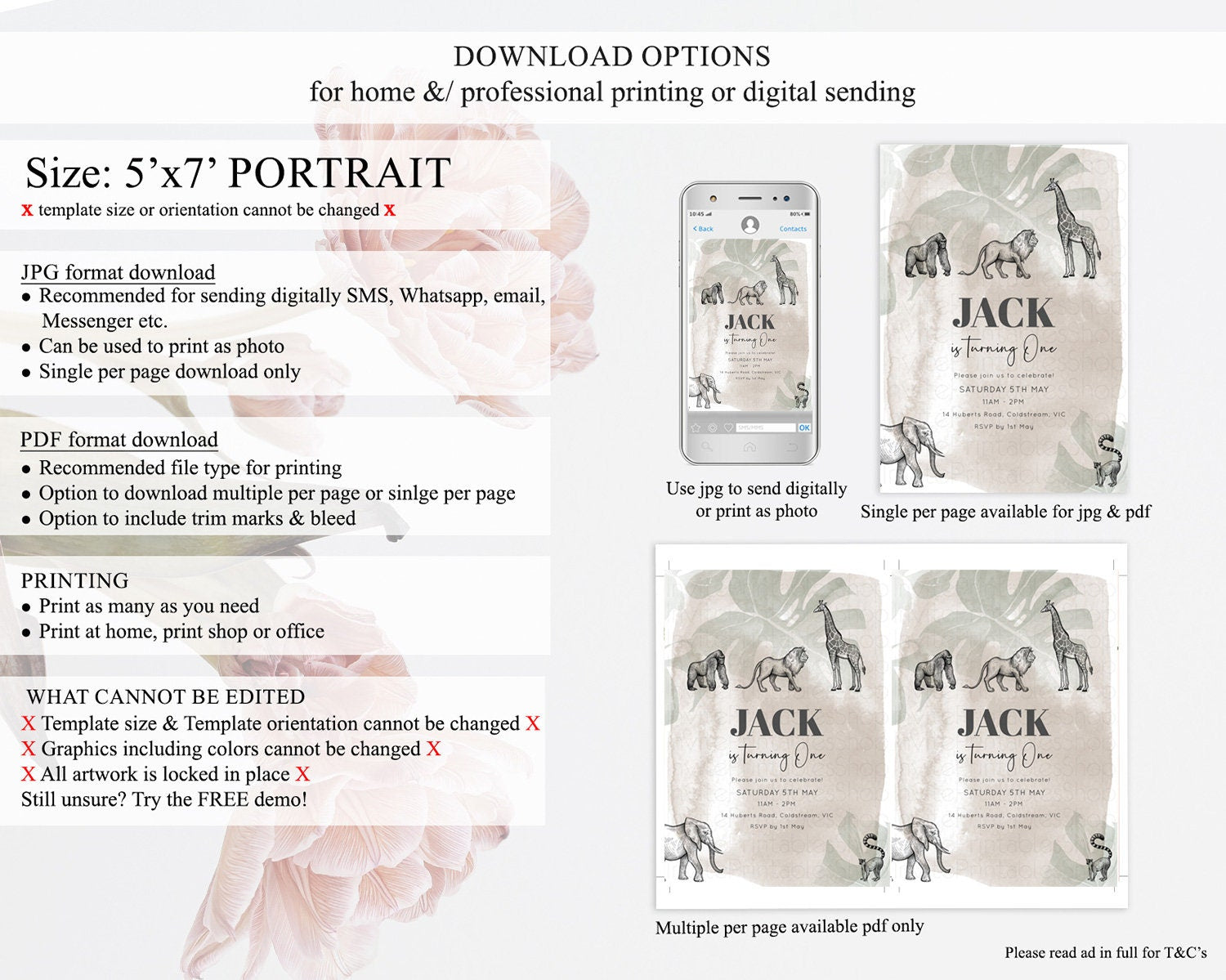 • Template size & orientation cannot be changed. Please use the demo link to confirm this product suits your needs.