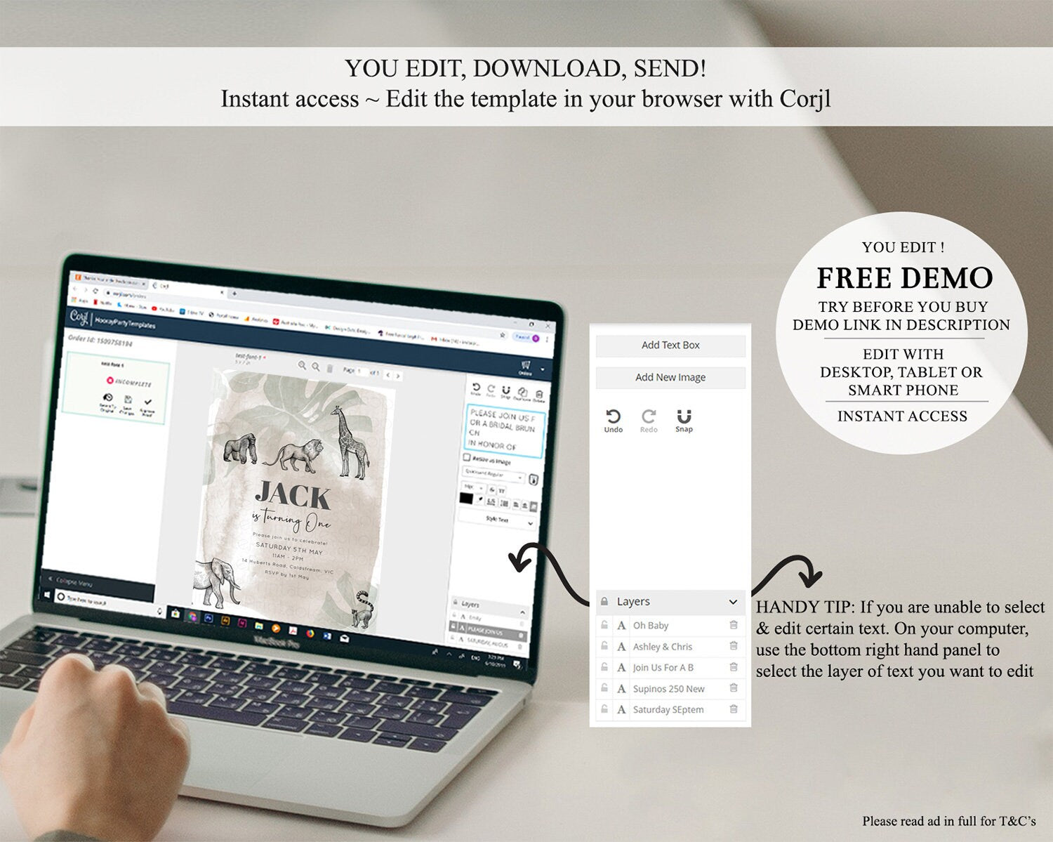 • After purchase, Corjl emails your editing link. Allow up to 15 minutes for delivery.