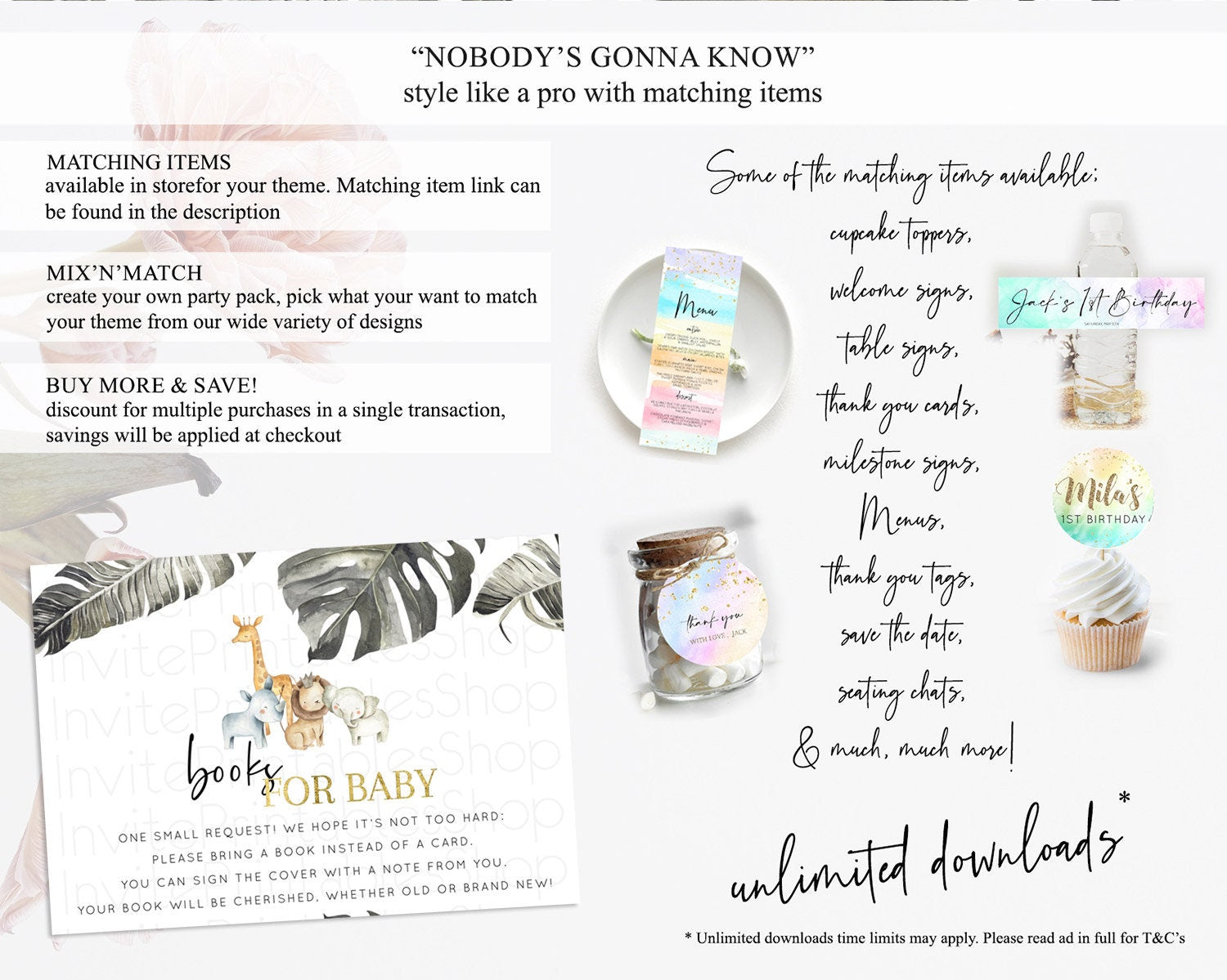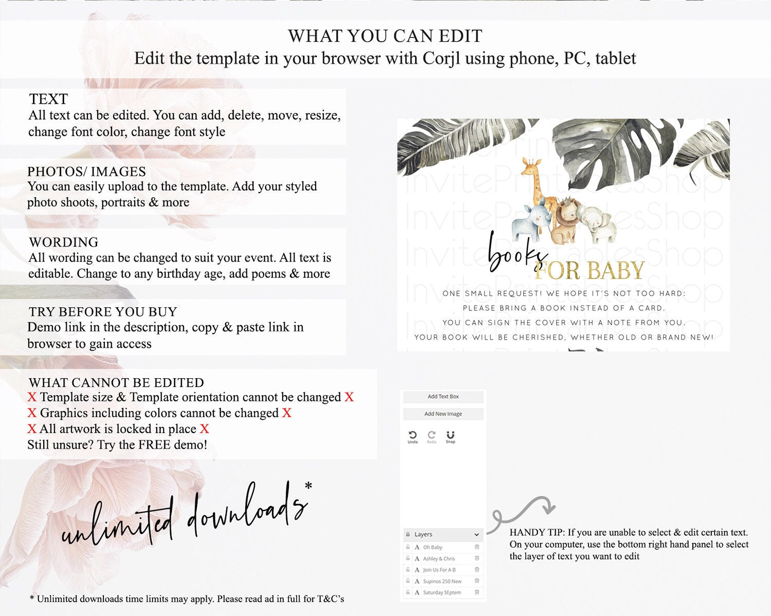Safari Books For Baby Card Safari Book Insert Lion Gorilla Elephant Rhino Book Card Tropical Palm Zoo Guests Book Poem Request D10599
