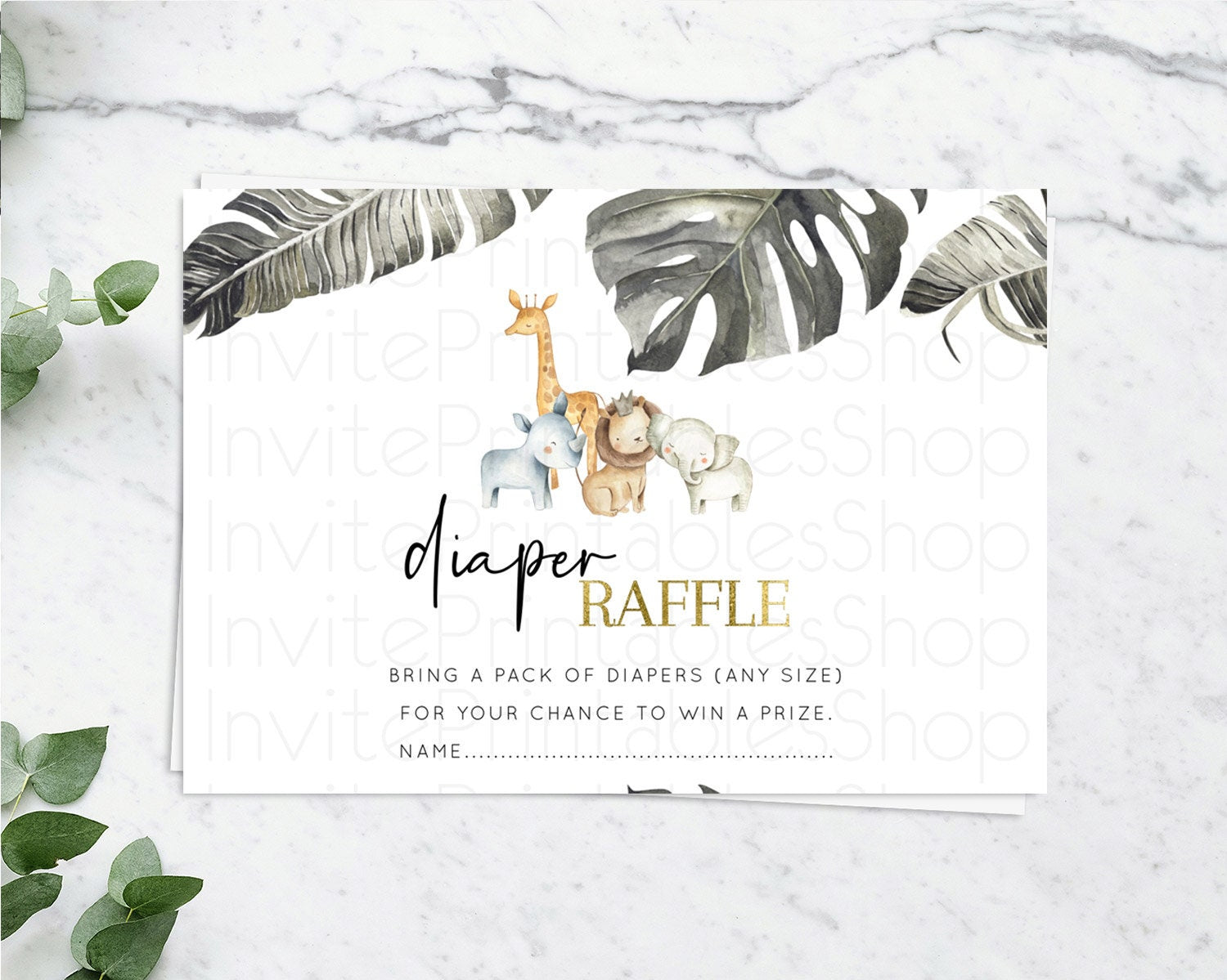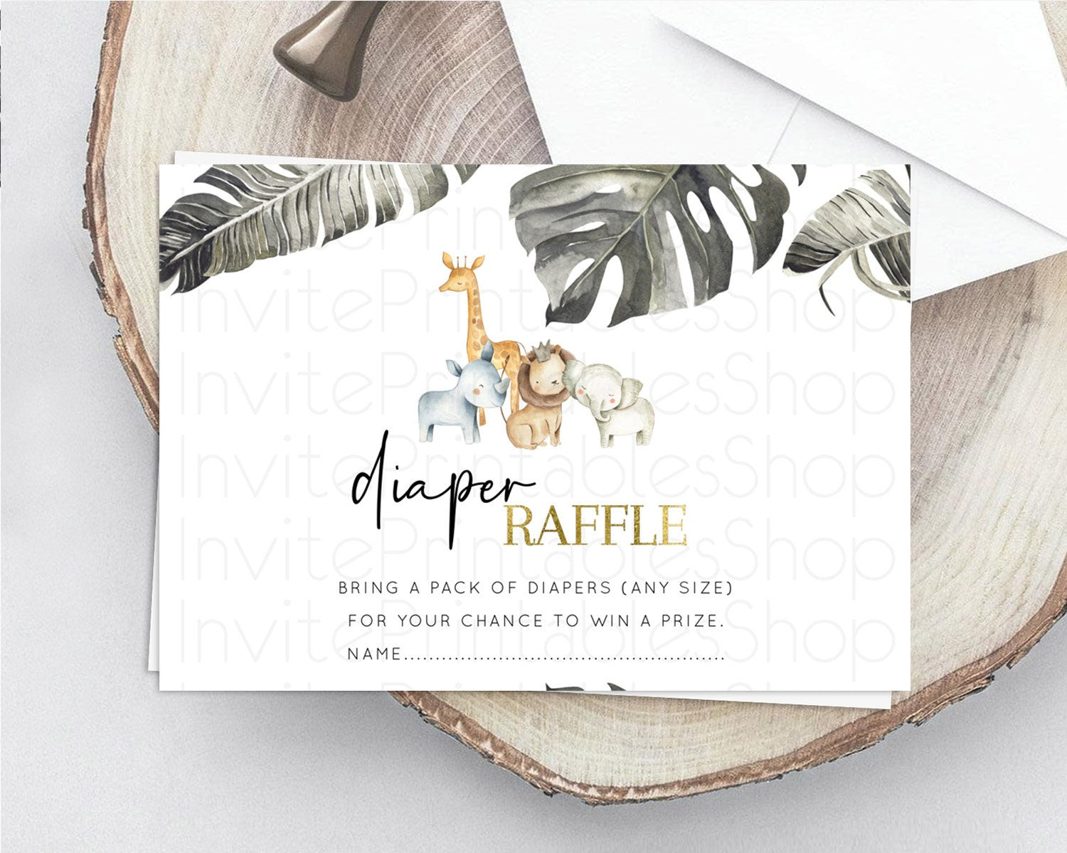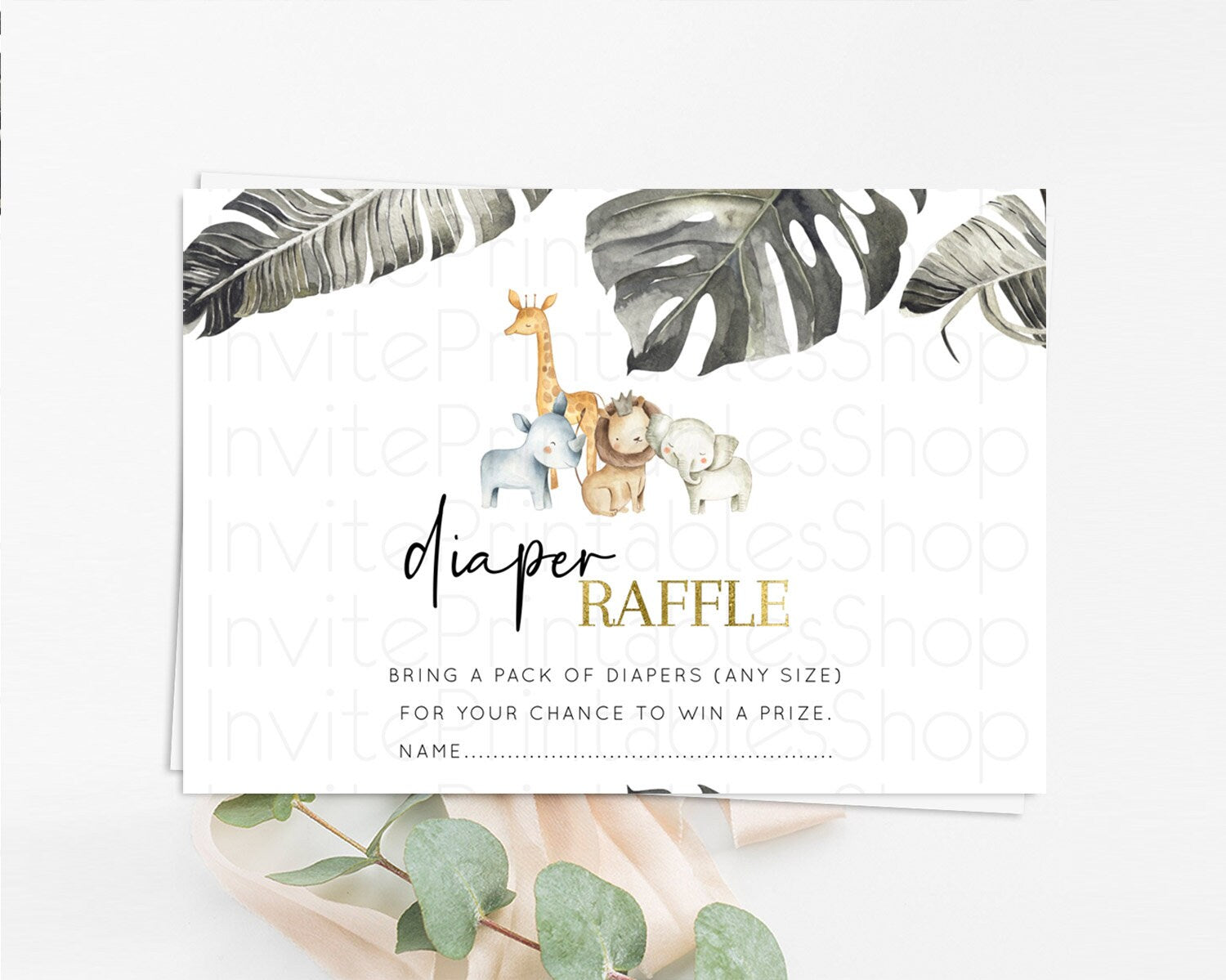 Safari Diaper Raffle Card Safari Diaper Raffle Insert Lion Gorilla Elephant Rhino Diaper Ticket Tropical Palm Zoo Raffle Game D10599