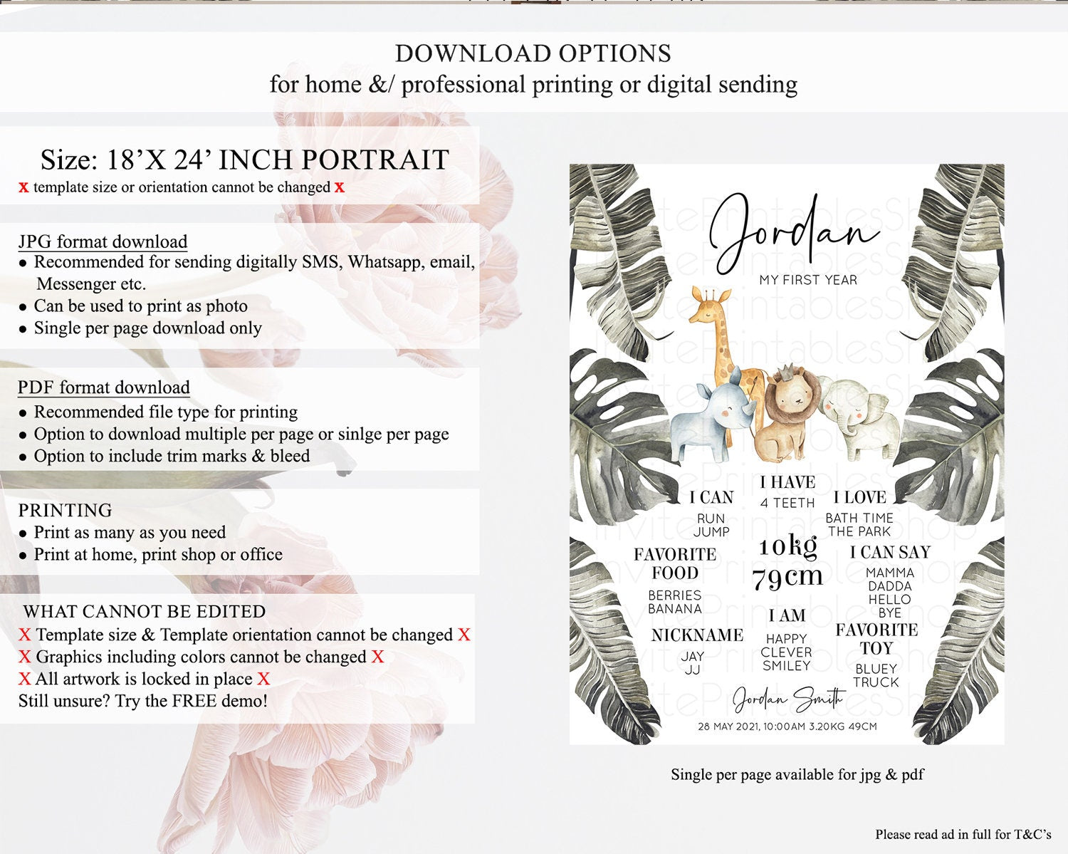 • Template size & orientation cannot be changed. Please use the demo link to confirm this product suits your needs.