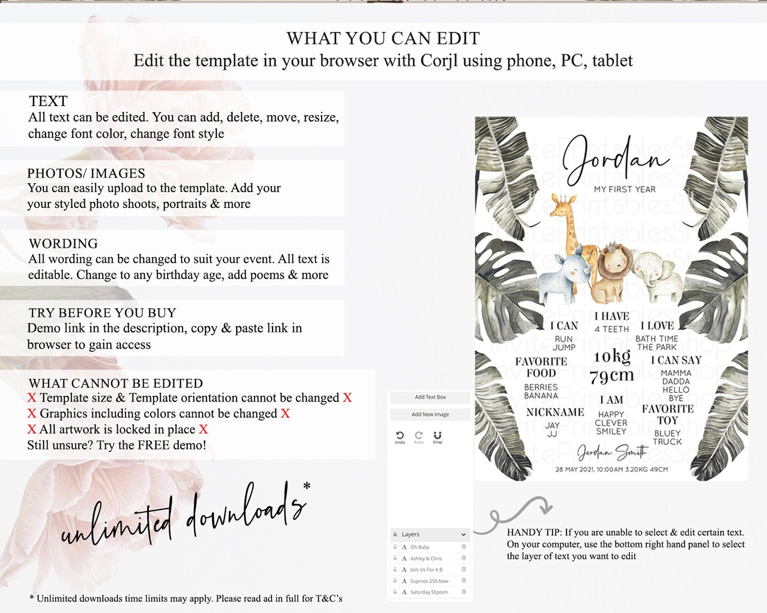 • After purchase, Corjl emails your editing link. Allow up to 15 minutes for delivery.