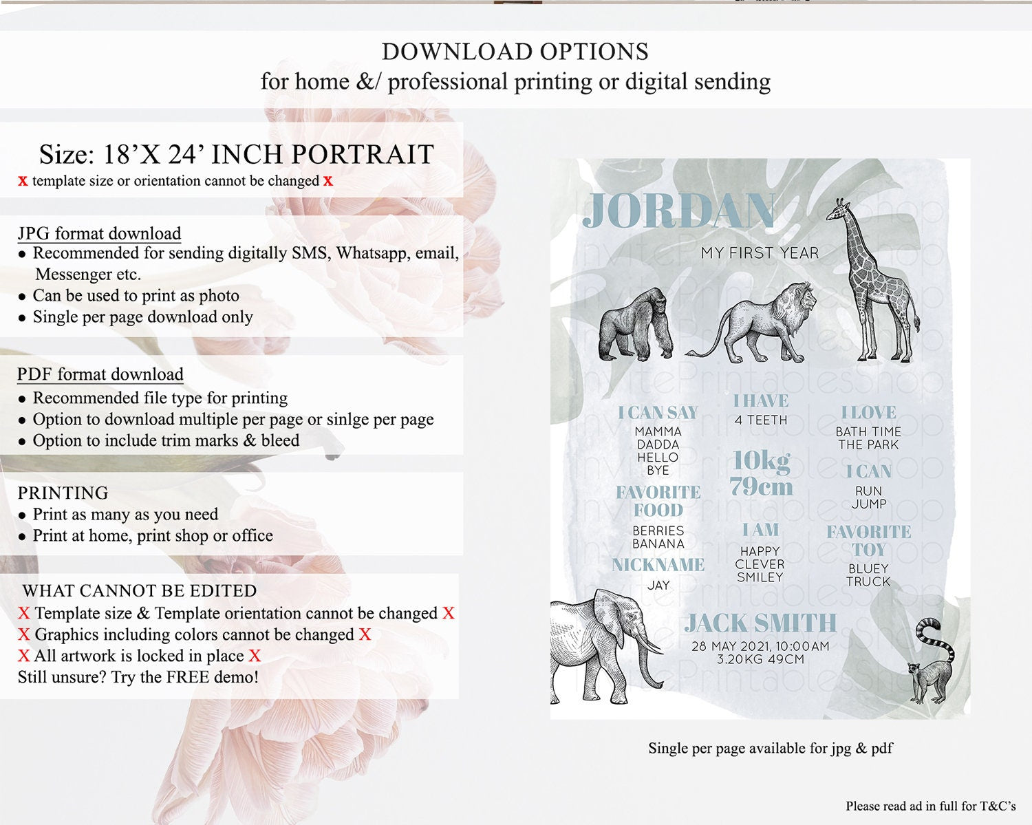 • Template size & orientation cannot be changed. Please use the demo link to confirm this product suits your needs.
