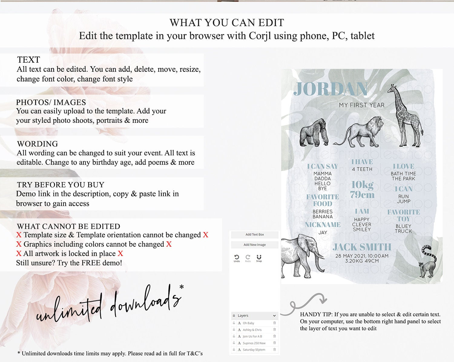 • After purchase, Corjl emails your editing link. Allow up to 15 minutes for delivery.