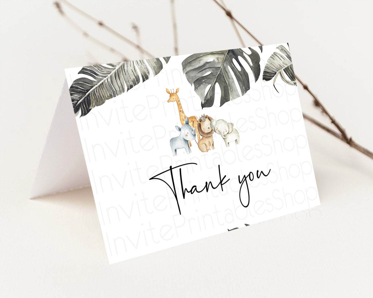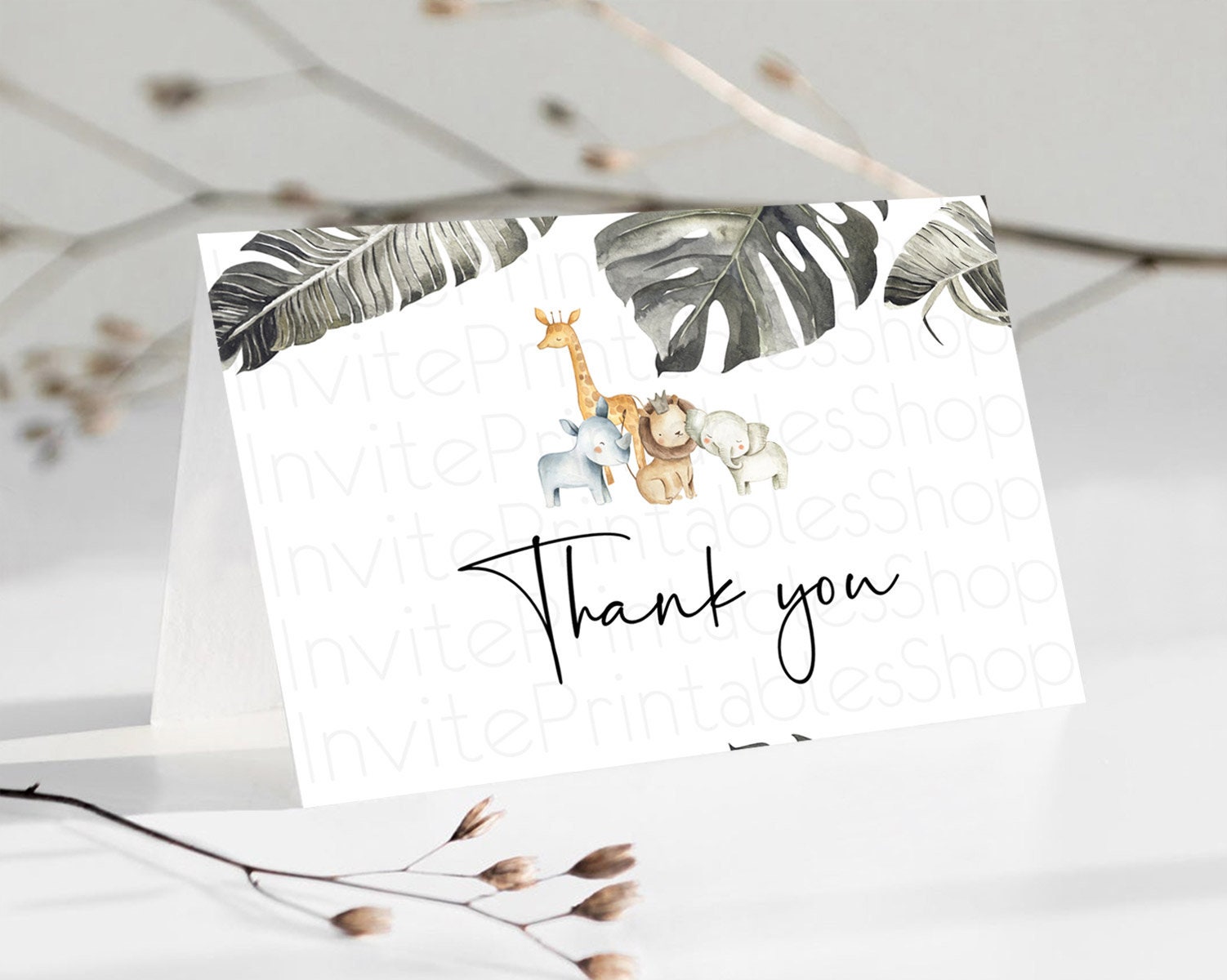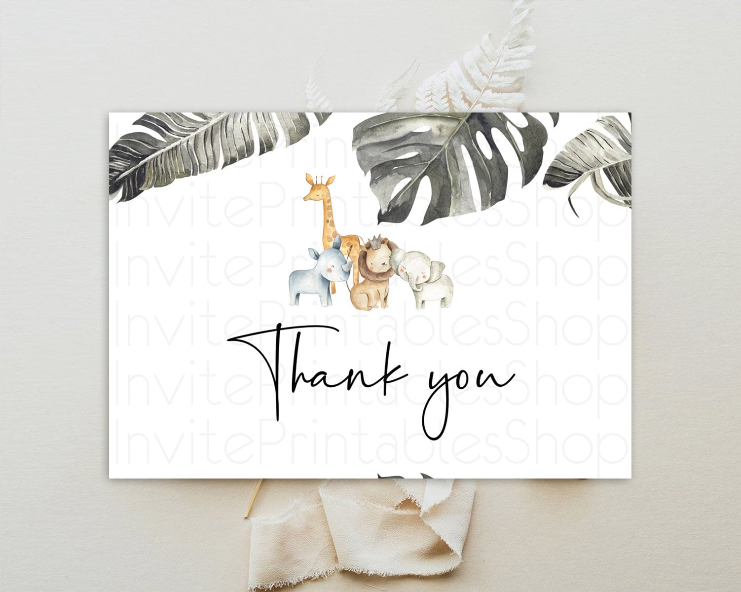 Safari Thank You Safari Thank You Cards Lion Gorilla Elephant Rhino Tropical Palm Zoo Birthday Thank You Safari Teacher Thank You D10599