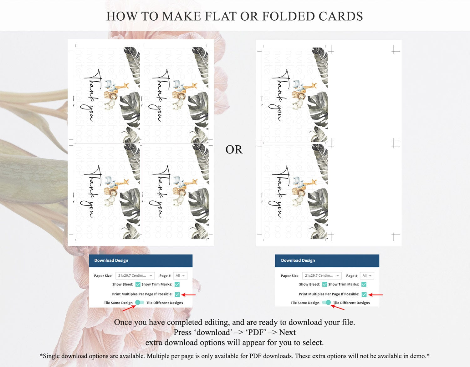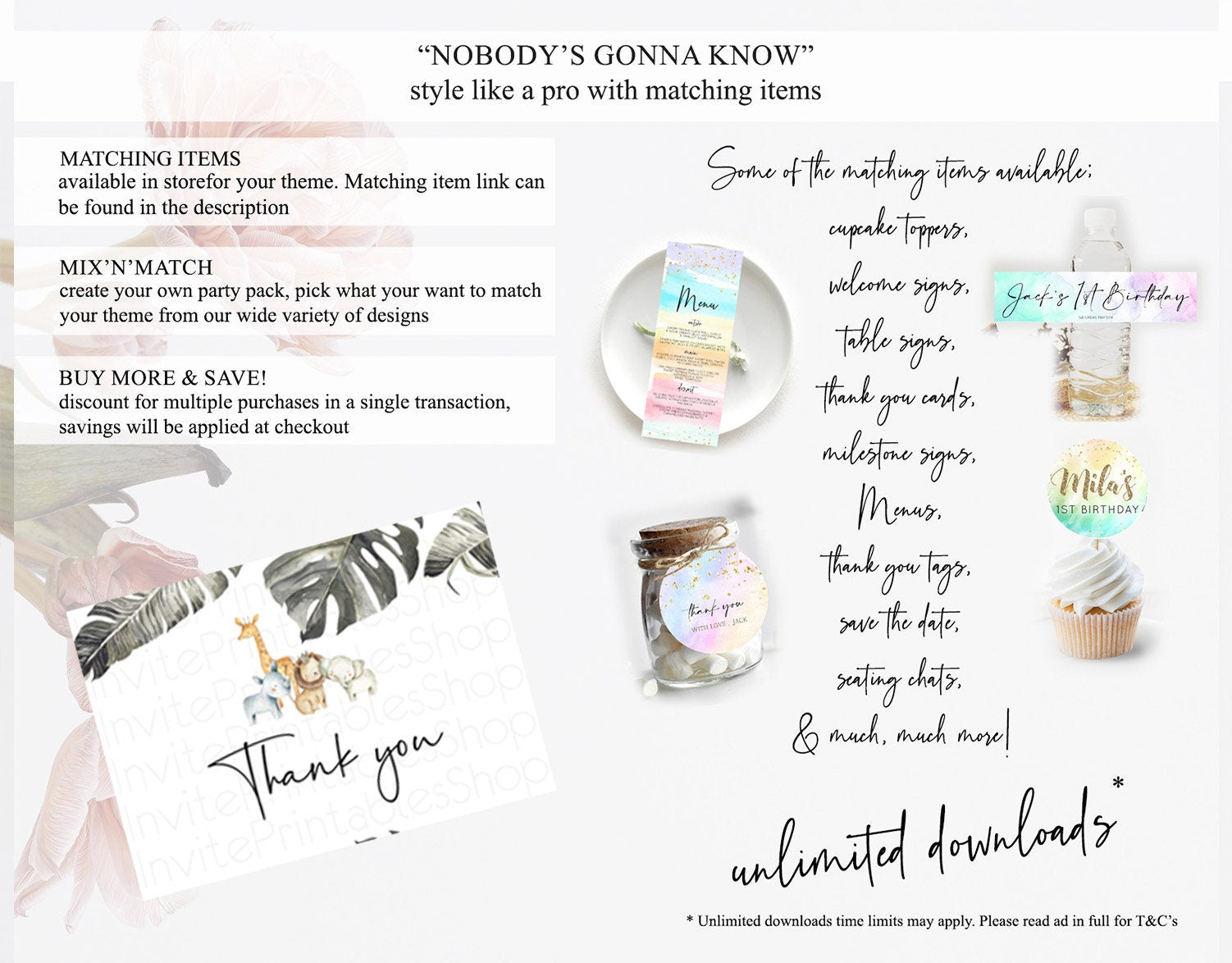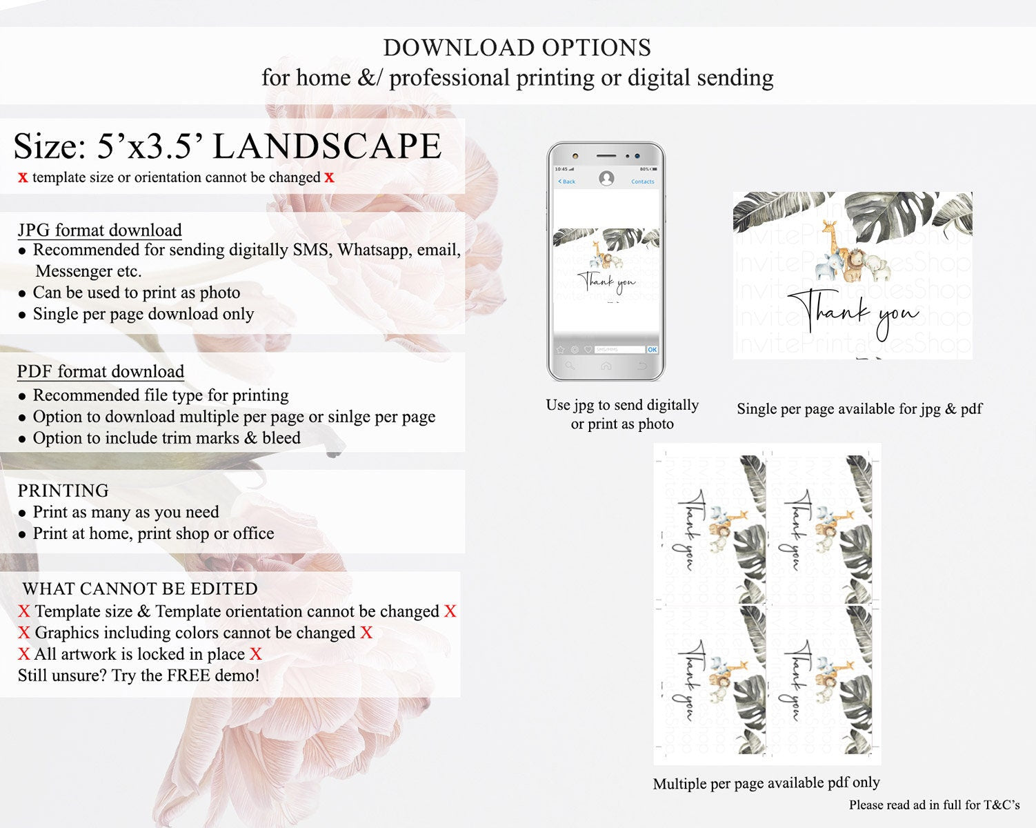 Safari Thank You Safari Thank You Cards Lion Gorilla Elephant Rhino Tropical Palm Zoo Birthday Thank You Safari Teacher Thank You D10599