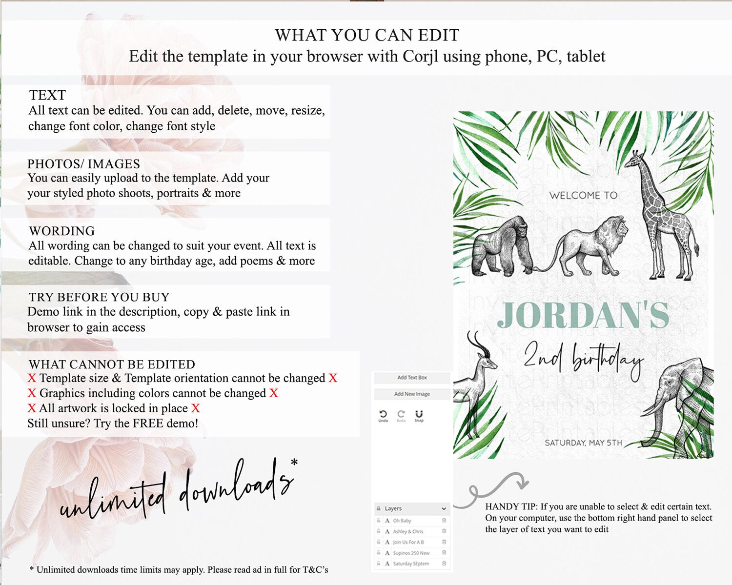 • After purchase, Corjl emails your editing link. Allow up to 15 minutes for delivery.