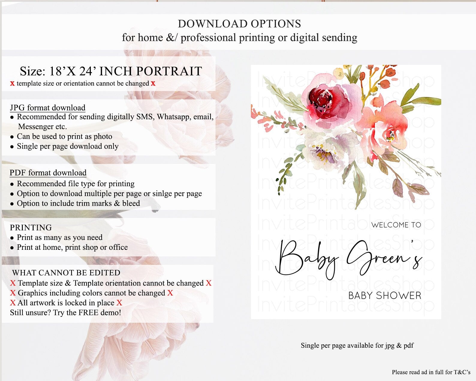• Template size & orientation cannot be changed. Please use the demo link to confirm this product suits your needs.