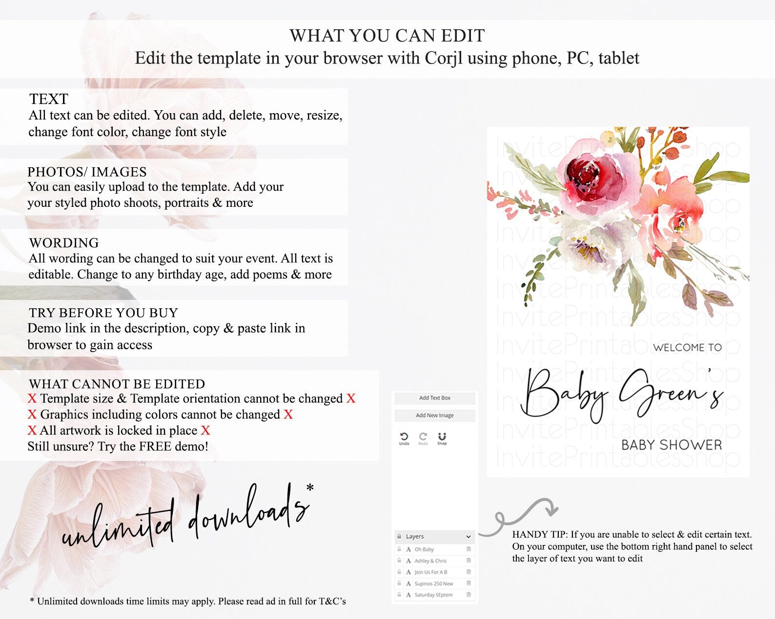 • After purchase, Corjl emails your editing link. Allow up to 15 minutes for delivery.