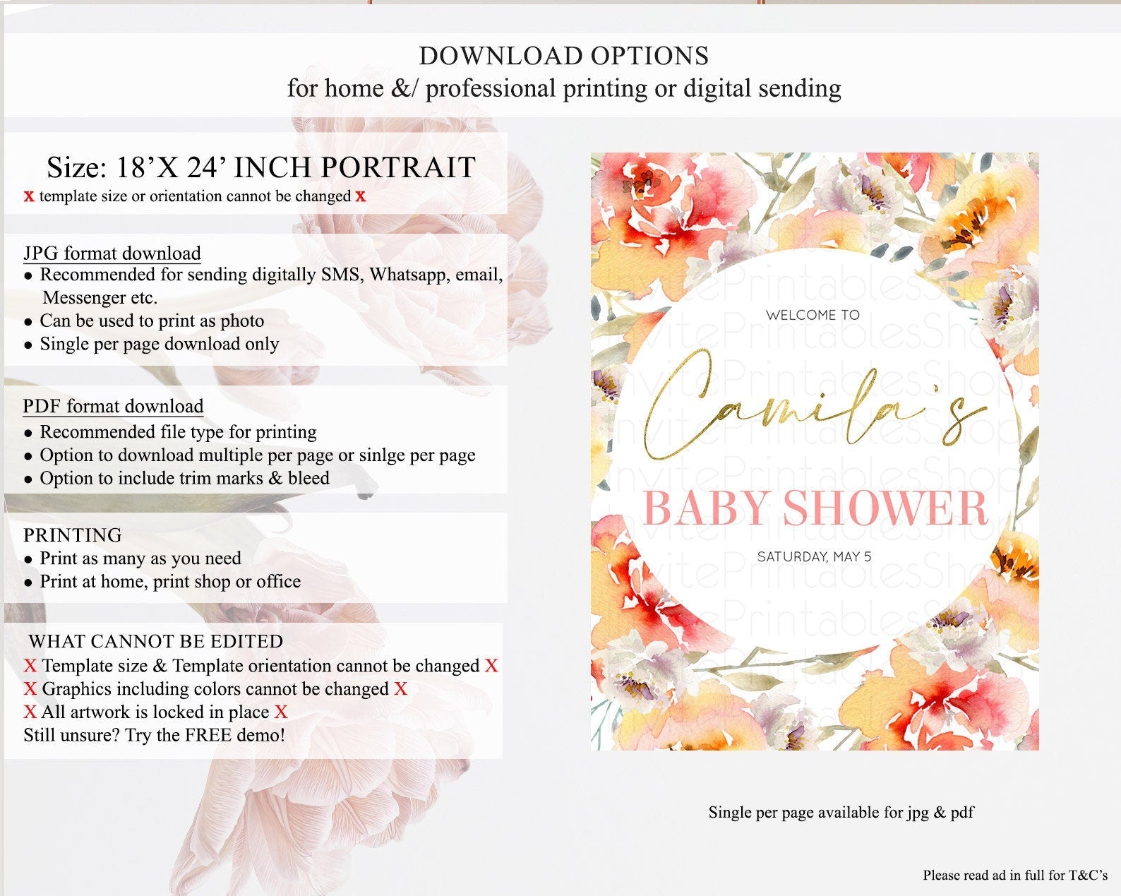 • Template size & orientation cannot be changed. Please use the demo link to confirm this product suits your needs.