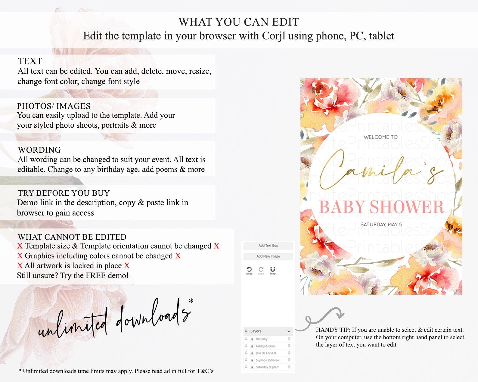 • After purchase, Corjl emails your editing link. Allow up to 15 minutes for delivery.