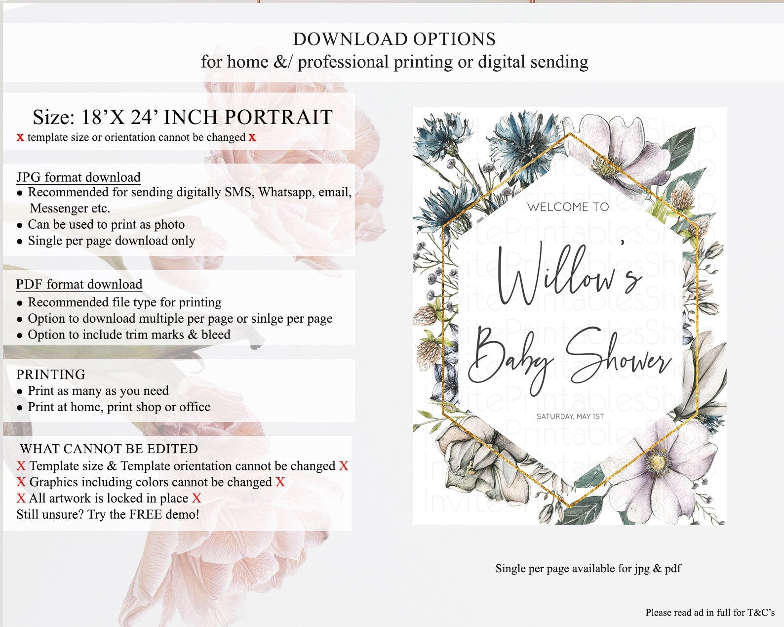 • Template size & orientation cannot be changed. Please use the demo link to confirm this product suits your needs.