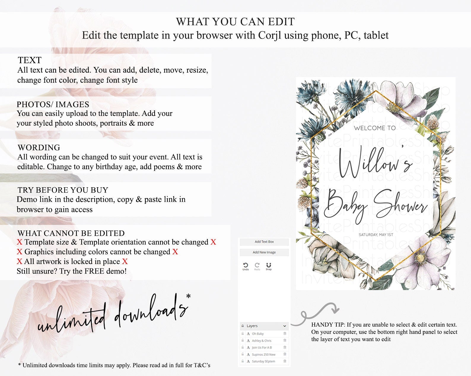 • After purchase, Corjl emails your editing link. Allow up to 15 minutes for delivery.