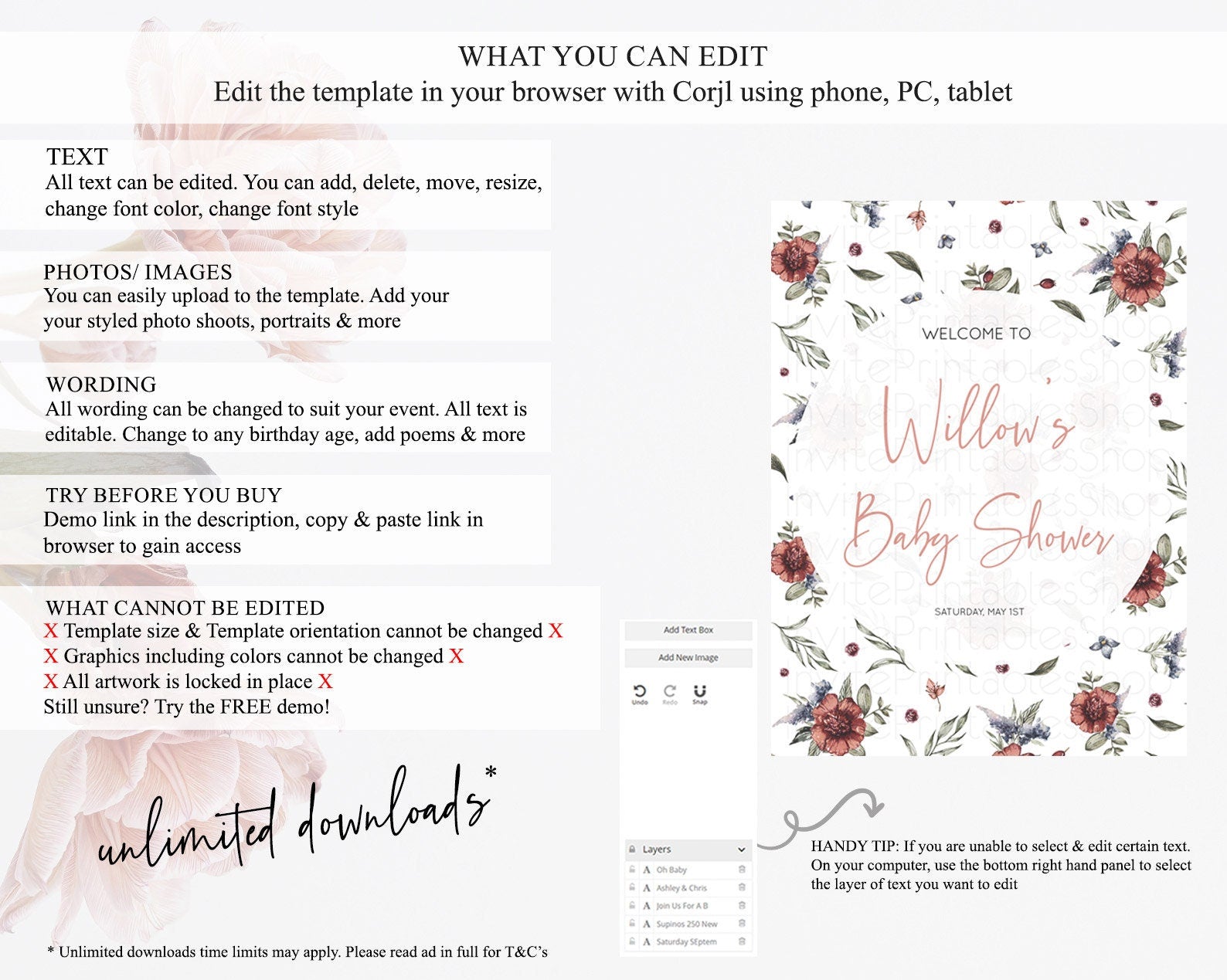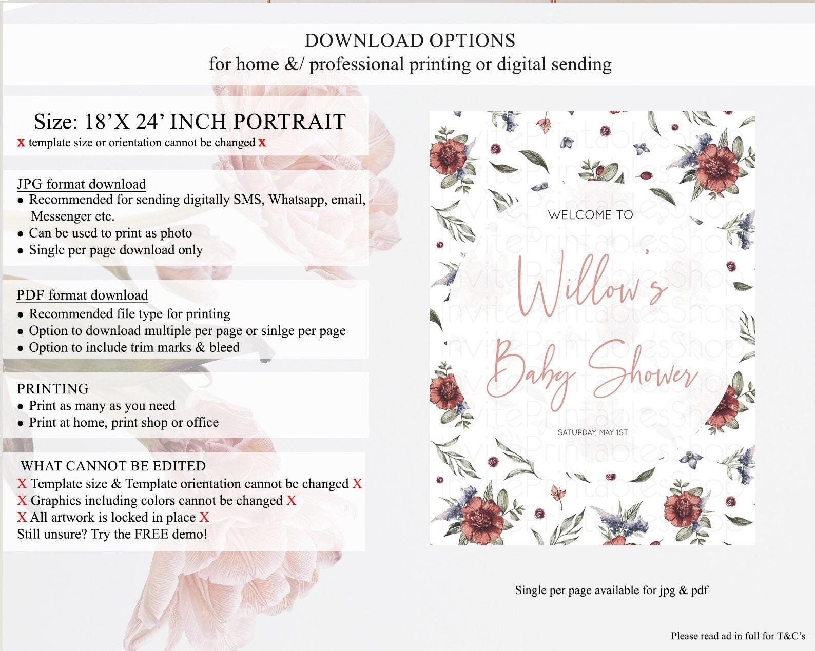 Secret Garden Baby Shower Welcome Sign Wildflower Welcome Board Pastel Flower Garden Welcome Poster Boho Wildflower Welcome Sign D10503