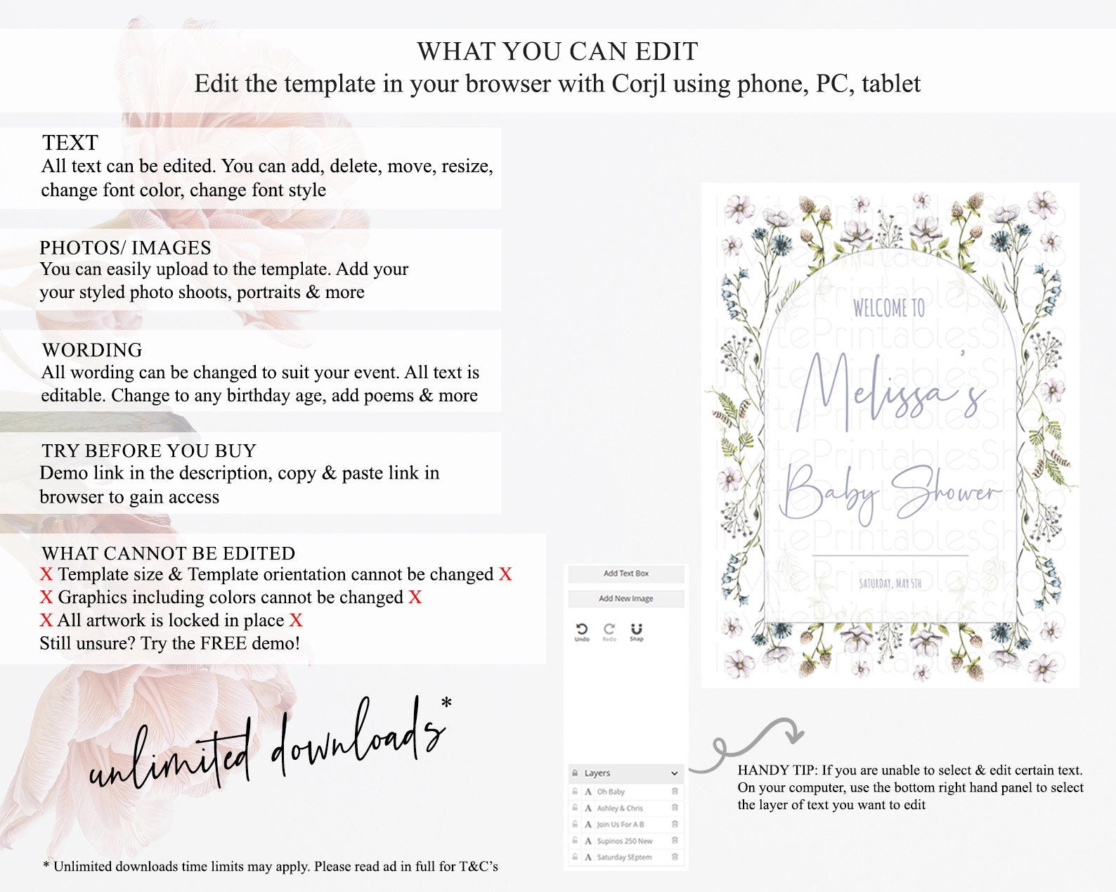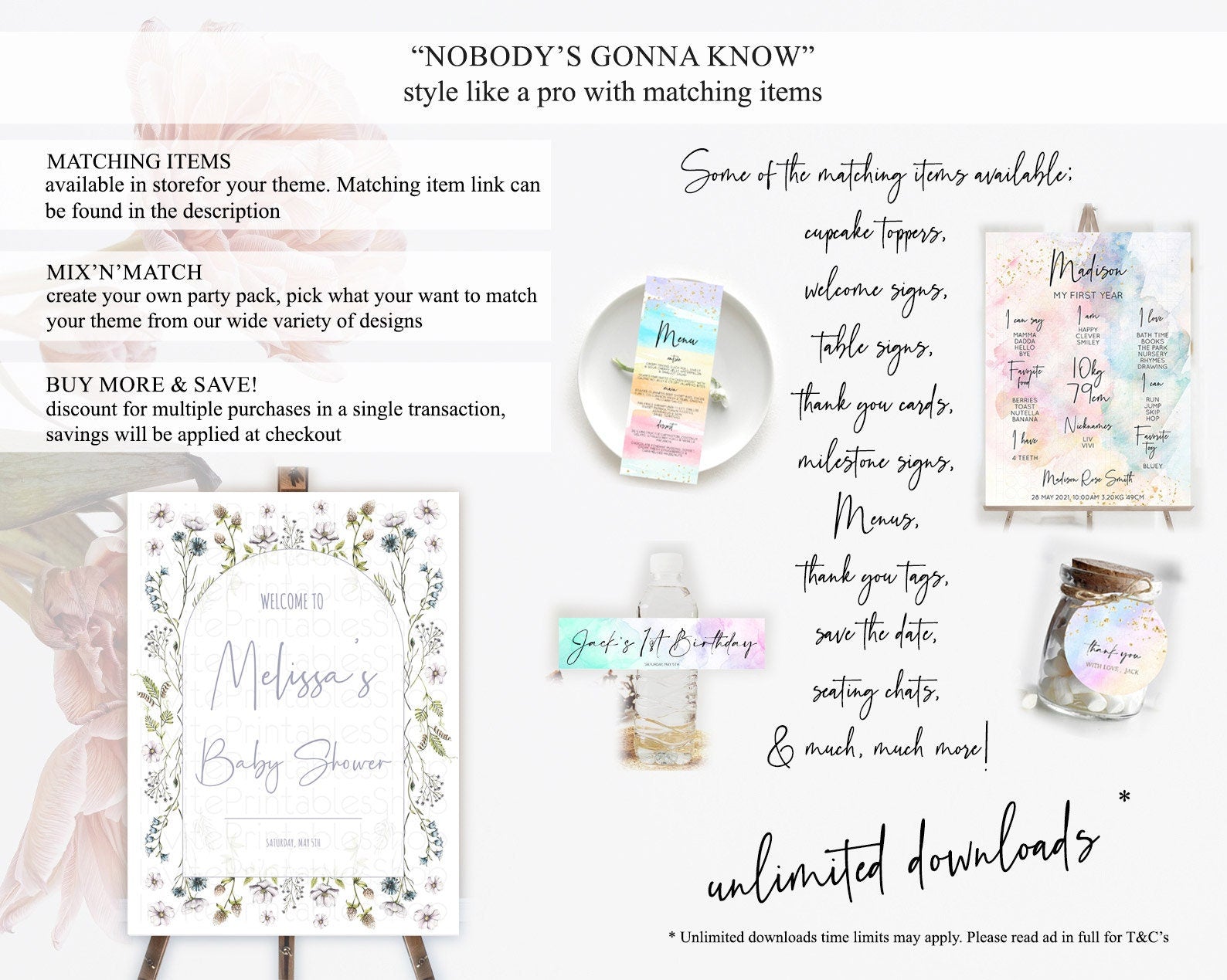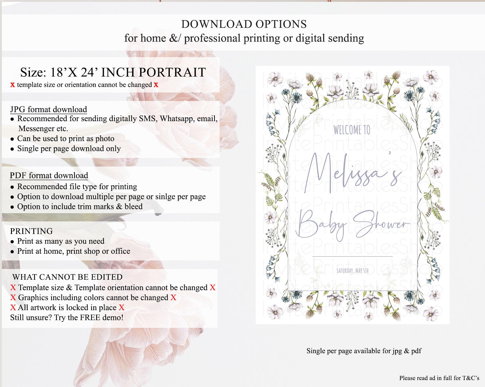 Secret Garden Baby Shower Welcome Sign Wildflower Welcome Board Pastel Flower Garden Welcome Poster Boho Wildflower Welcome Sign D10603
